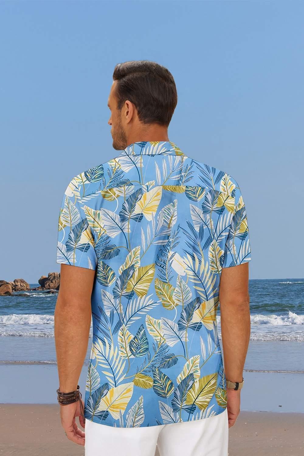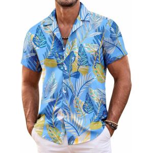 COOFANDY Mens Hawaiian Shirt Short Sleeve Floral Button Down Shirts Tropical Summer Beach Shirts Camp Collar Shirt(Sky Blue- Palm Leaf)