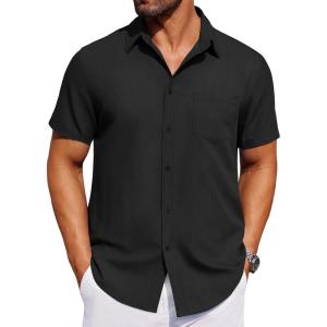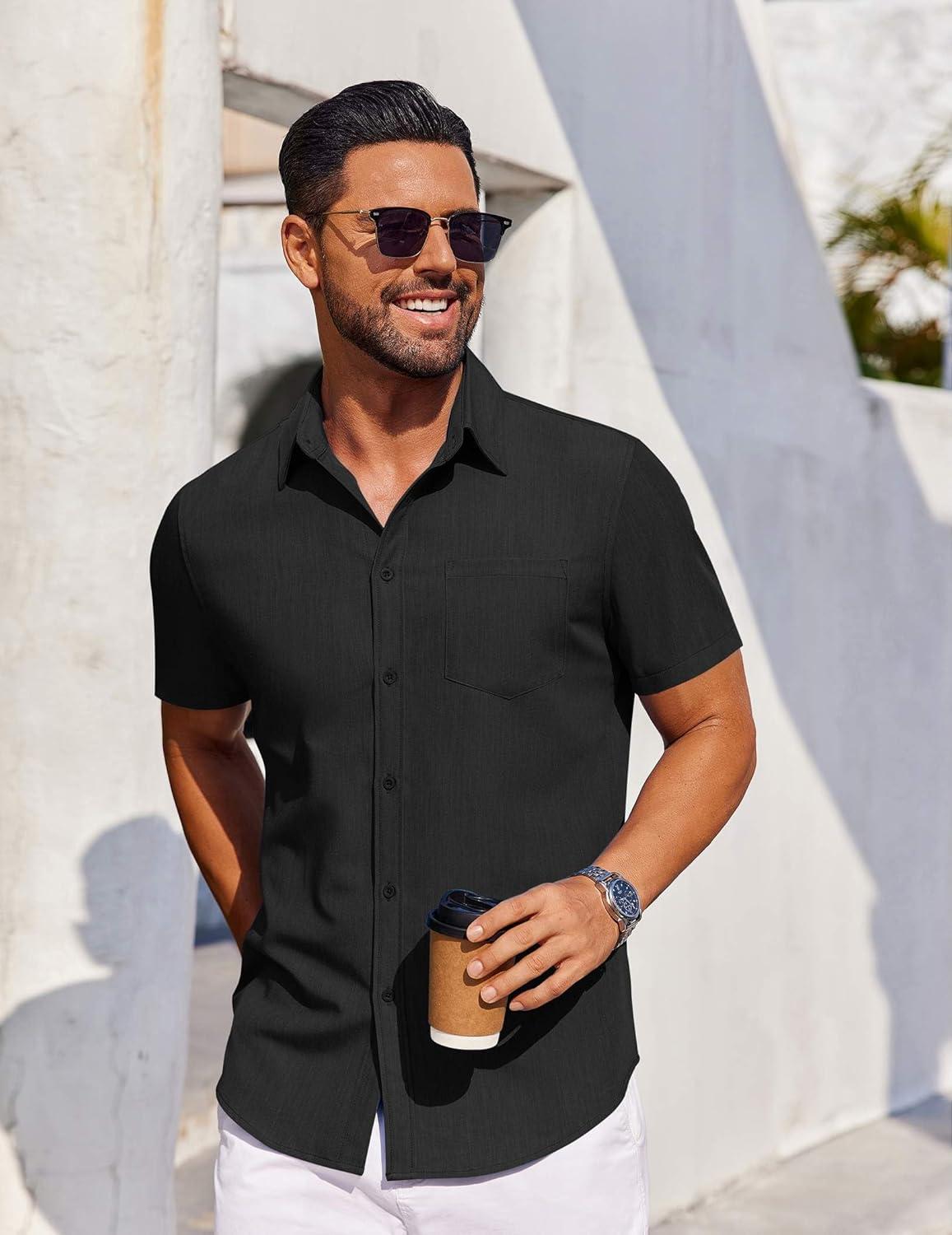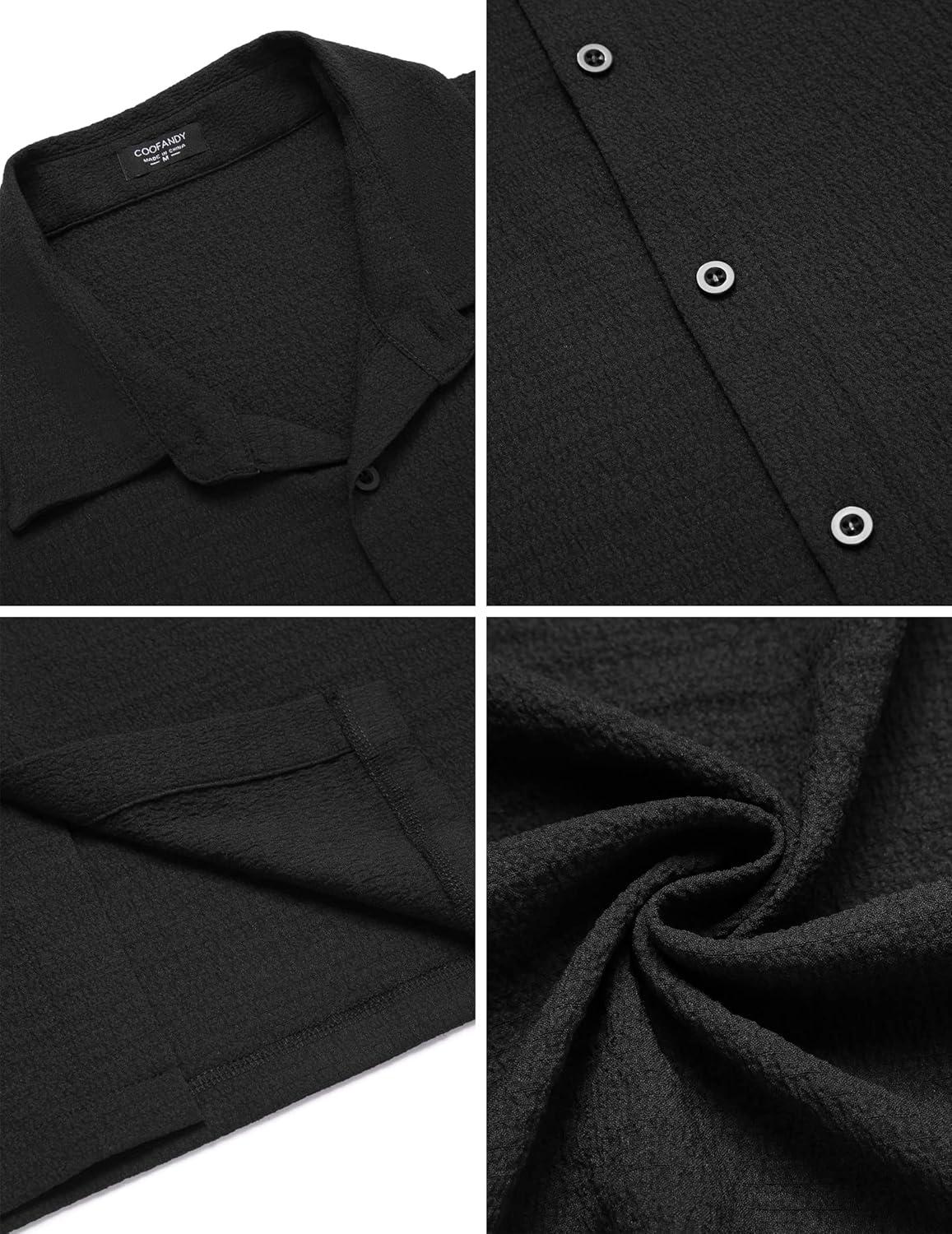 COOFANDY Mens Button Down Short Sleeve Shirt Casual Shirts Summer Beach Textured Shirts with Pocket(Black)
