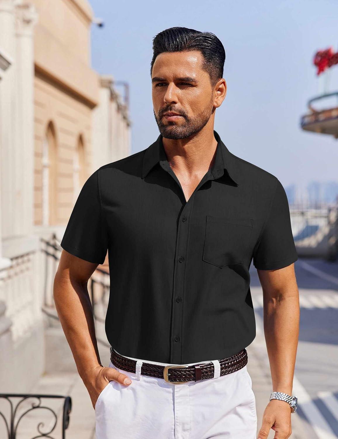 COOFANDY Mens Short Sleeve Button Down Shirts Casual Dress Shirt Untucked Shirts with Pocket(Black)
