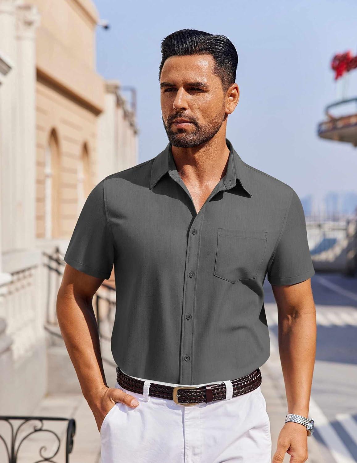 COOFANDY Mens Short Sleeve Button Down Shirts Casual Dress Shirt Untucked Shirts with Pocket(Dark Grey)