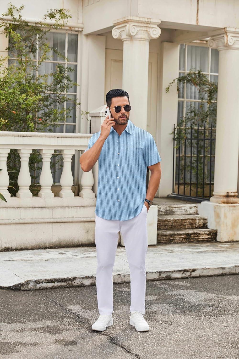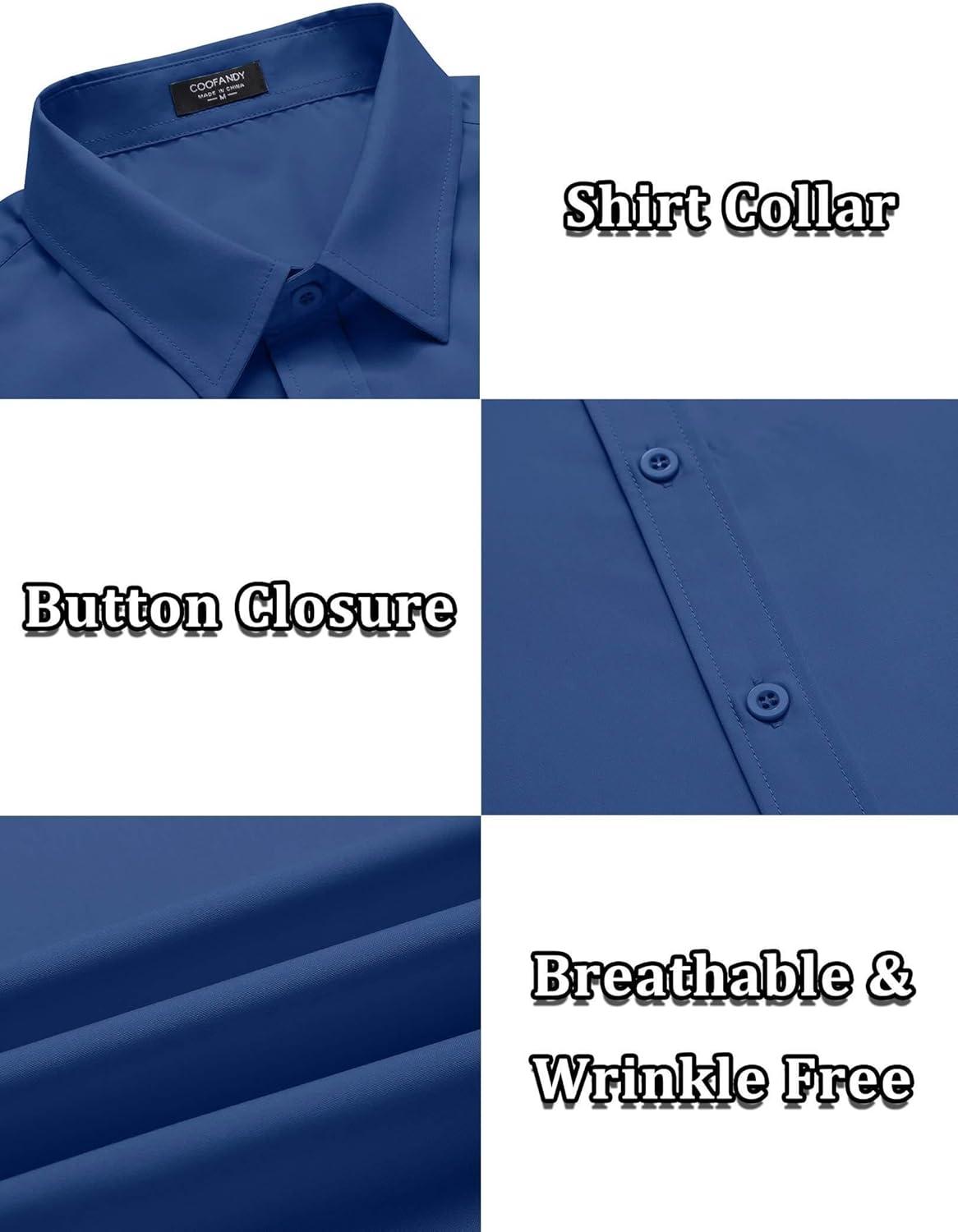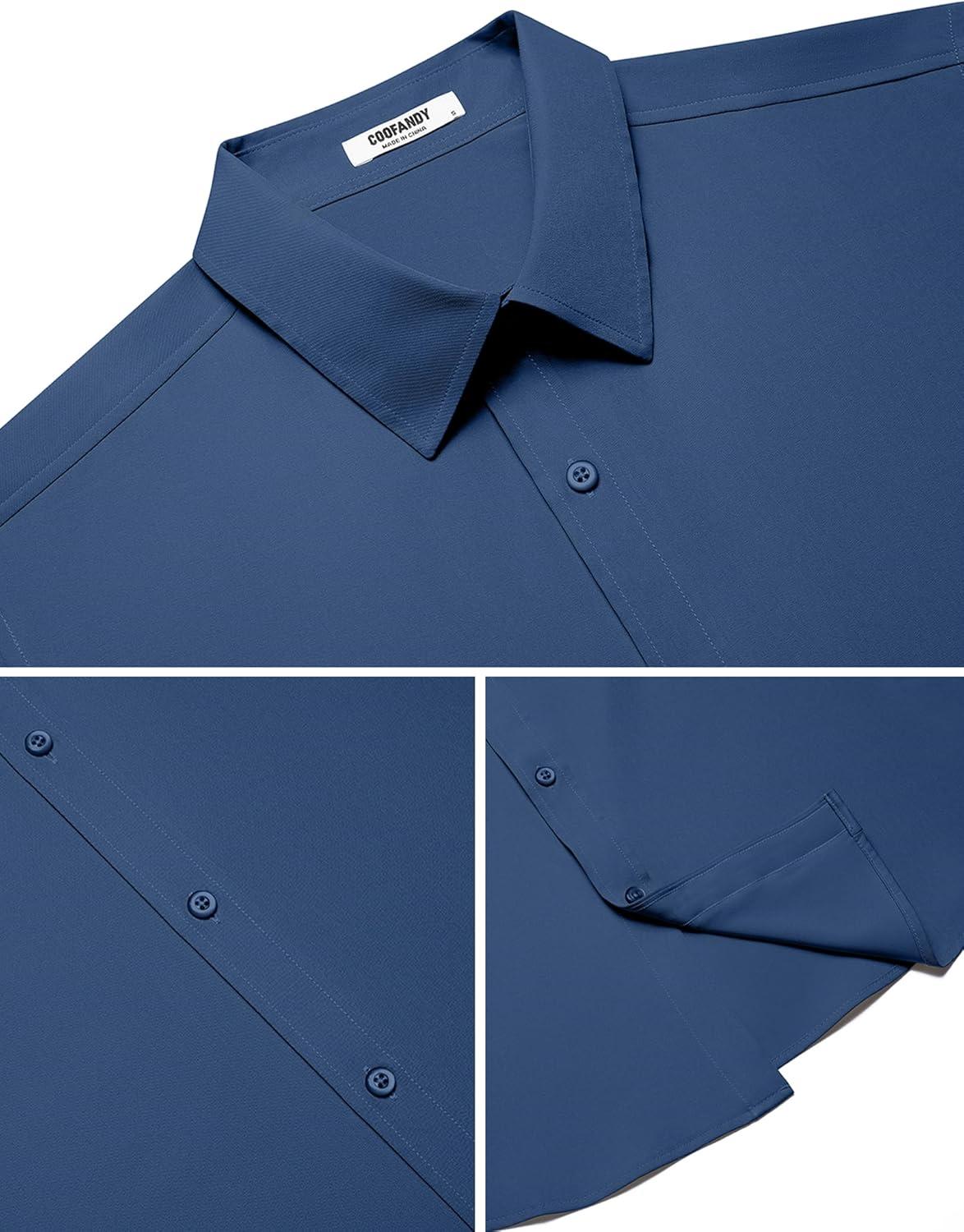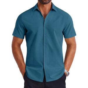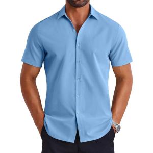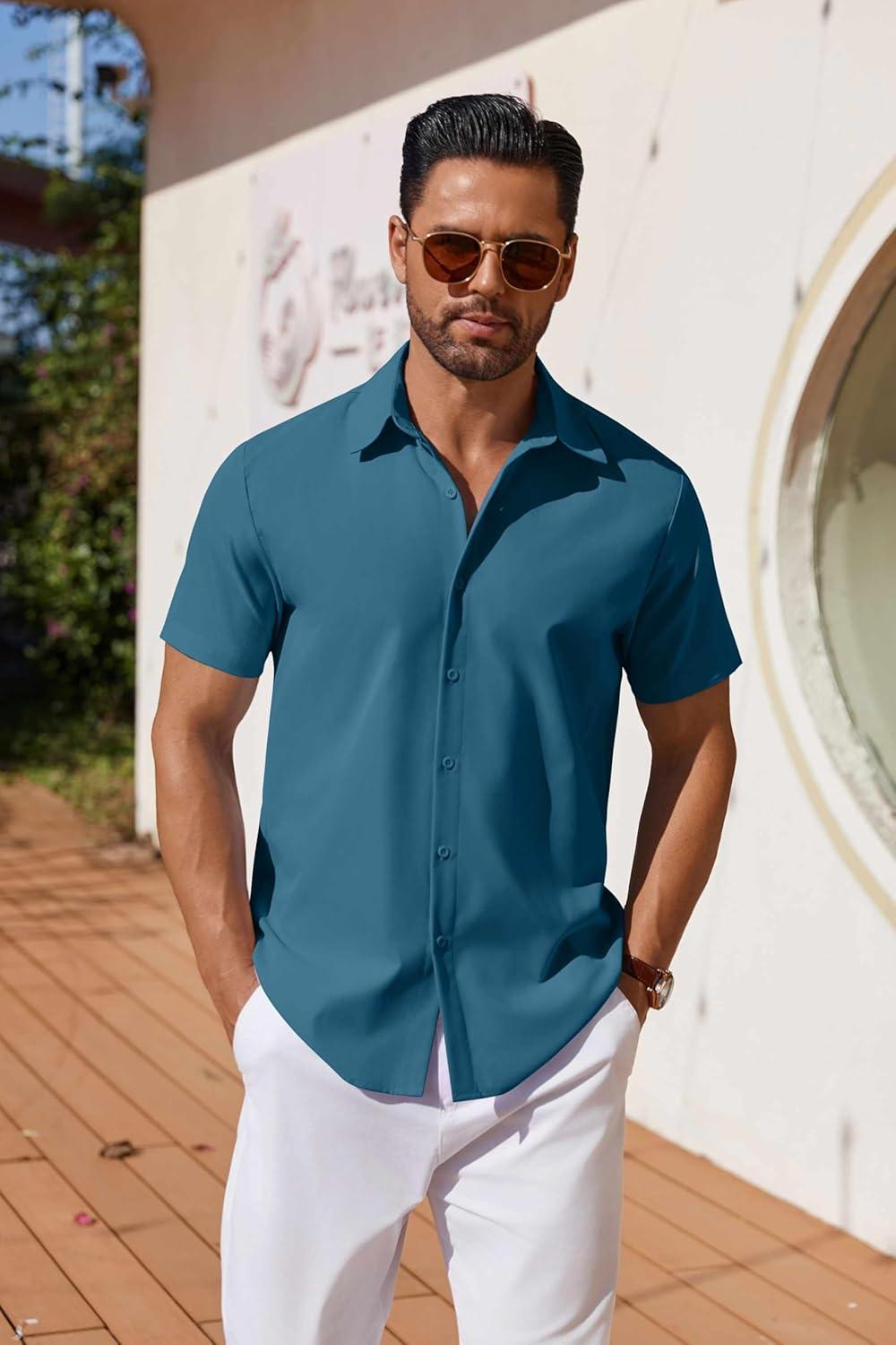 COOFANDY Mens Short Sleeve Dress Shirts Stretch Wrinkle Free Button Down Shirt Casual Summer Top(Blue)