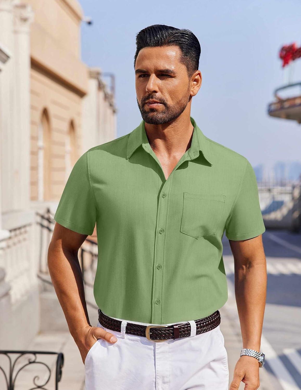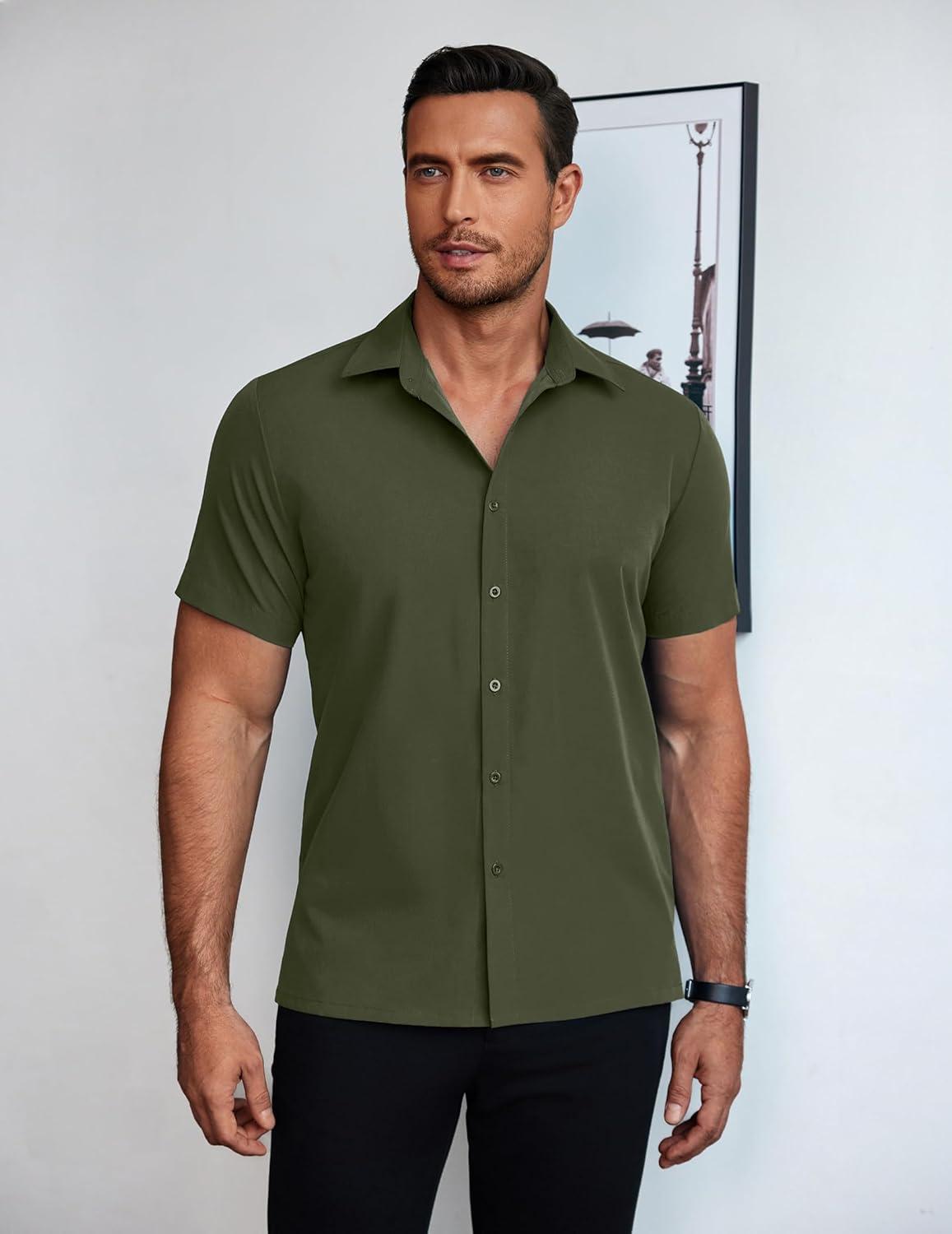 COOFANDY Mens Short Sleeve Dress Shirts Stretch Wrinkle Free Button Down Shirt Casual Summer Top(Army Green)