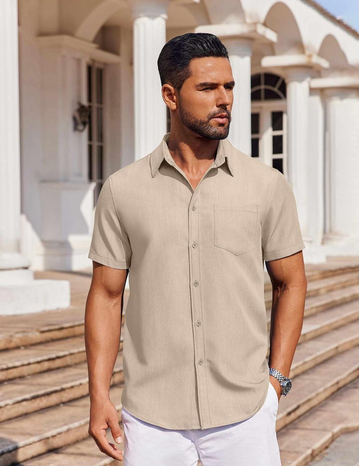 COOFANDY Men’s Casual Short Sleeve Button Down Shirts Untucked Dress Shirts Wrinkle Free Summer Wedding Shirts Solid(Kahki)