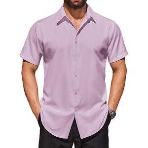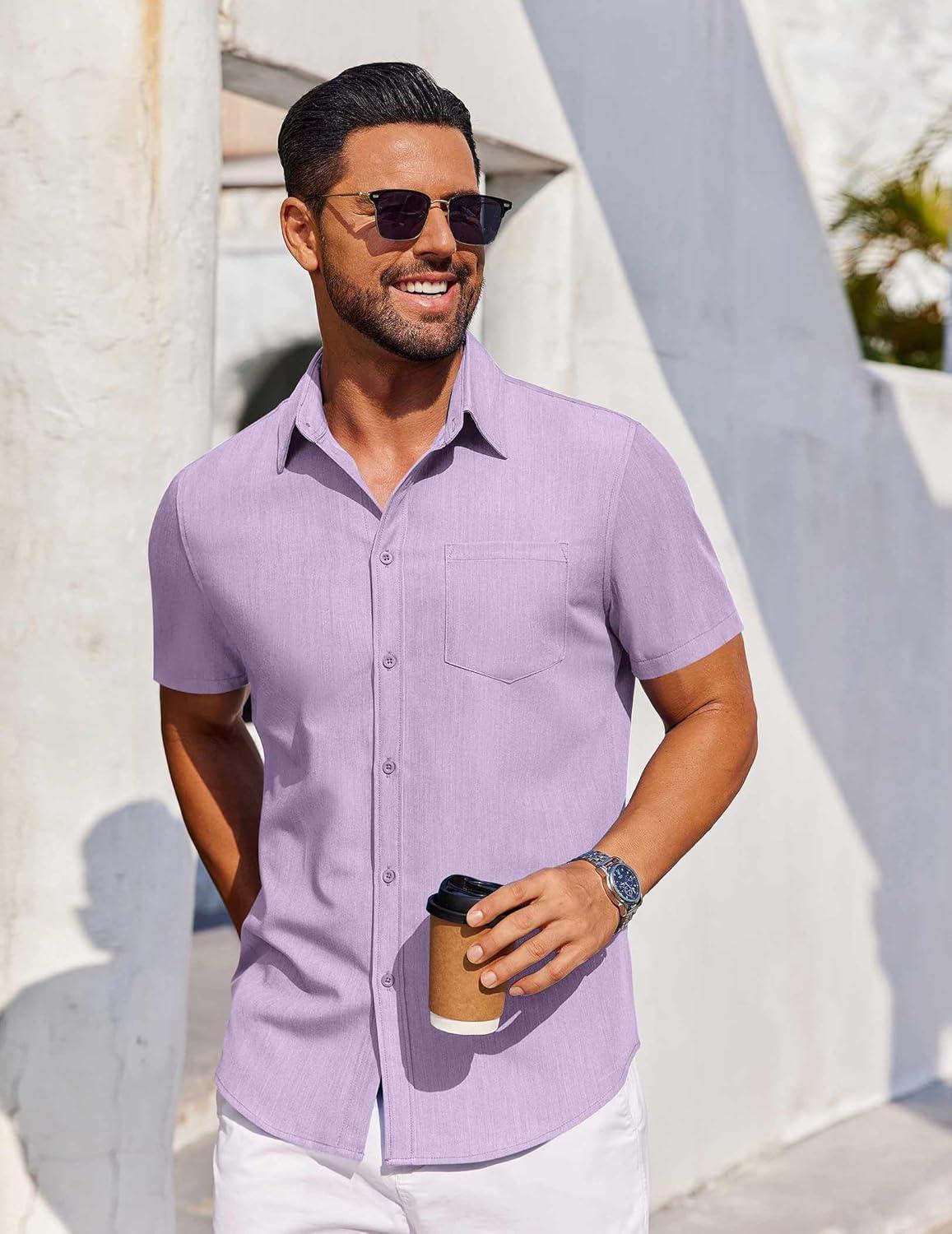 COOFANDY Mens Short Sleeve Button Down Shirts Casual Dress Shirt Untucked Shirts with Pocket(Lavender)
