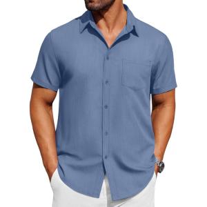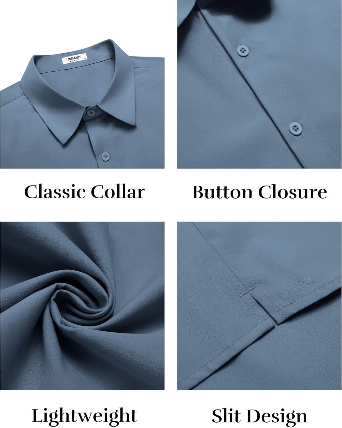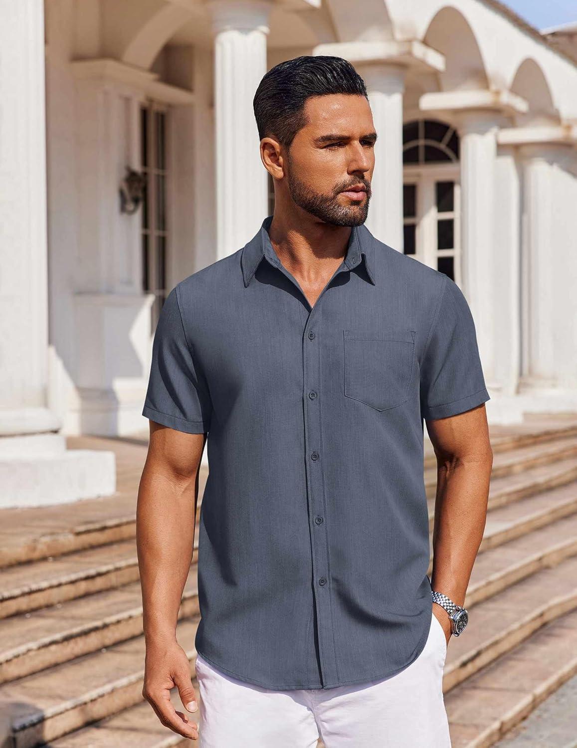 COOFANDY Men’s Casual Short Sleeve Button Down Shirts Untucked Dress Shirts Wrinkle Free Summer Wedding Shirts Solid(Gray Blue)