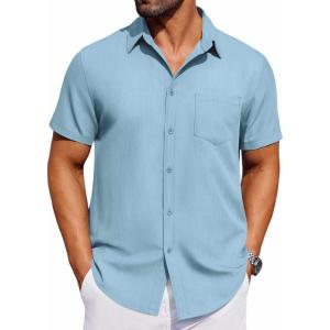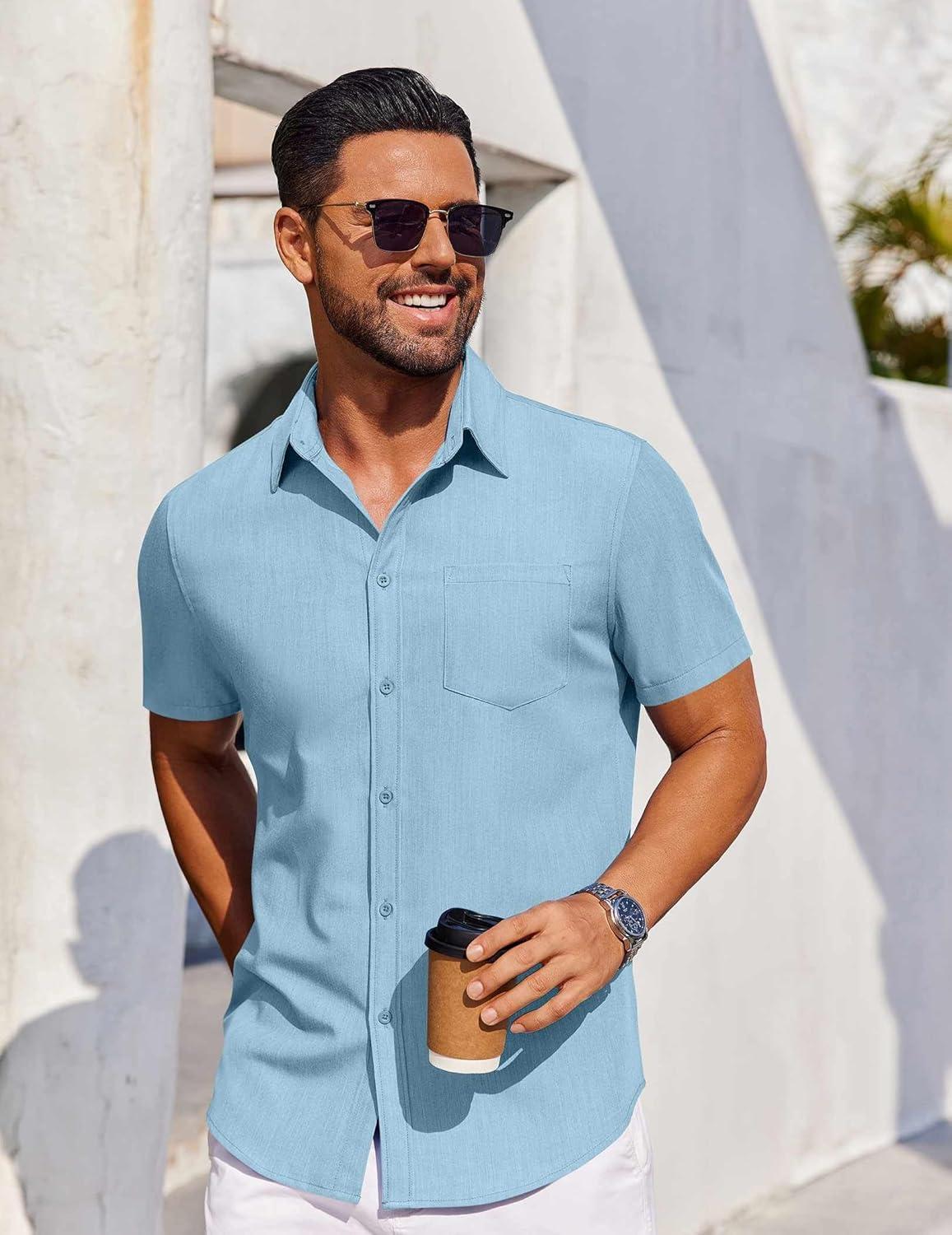 COOFANDY Mens Button Down Shirts Short Sleeve Casual Shirt Summer Untucked Dress Shirts(Sky Blue)