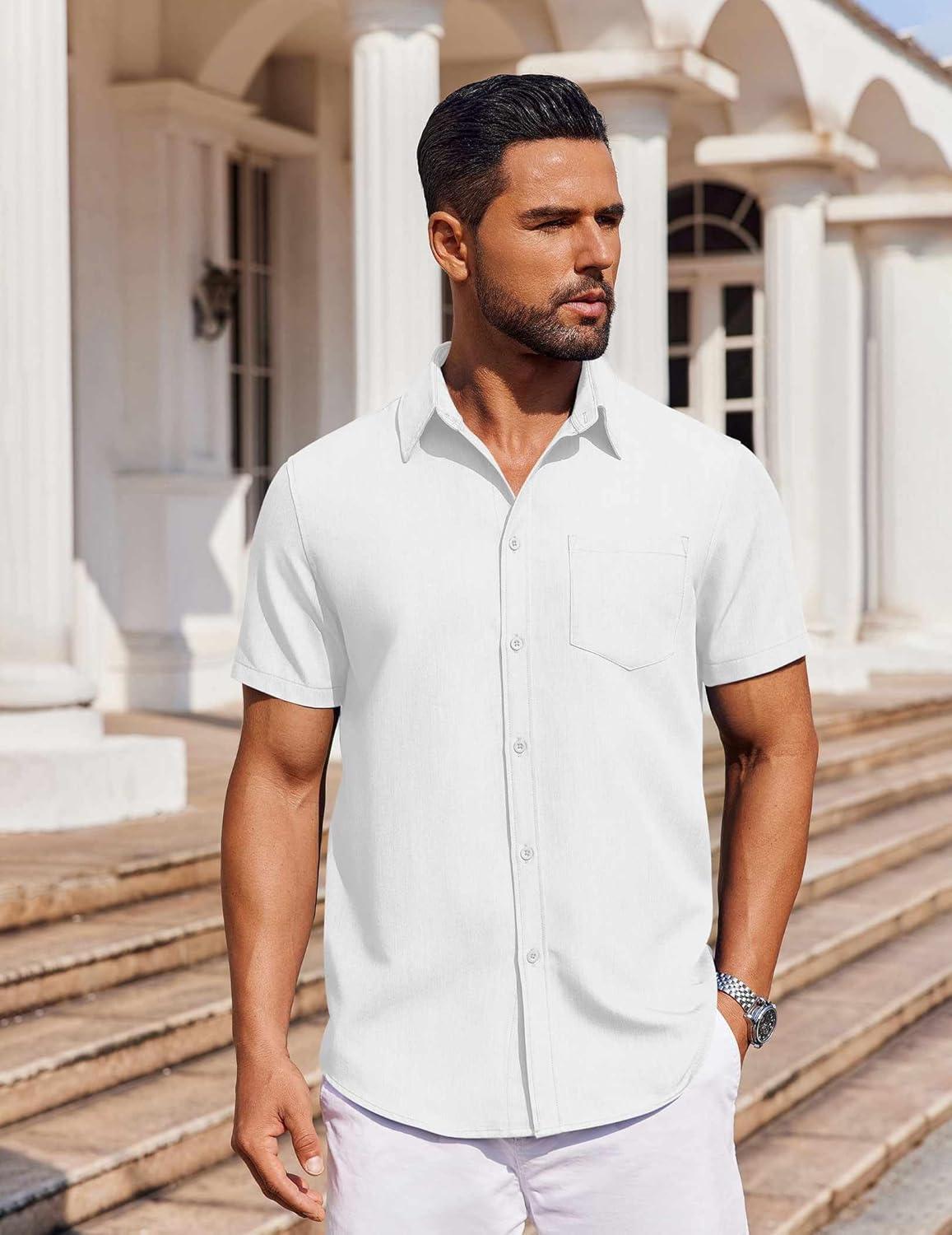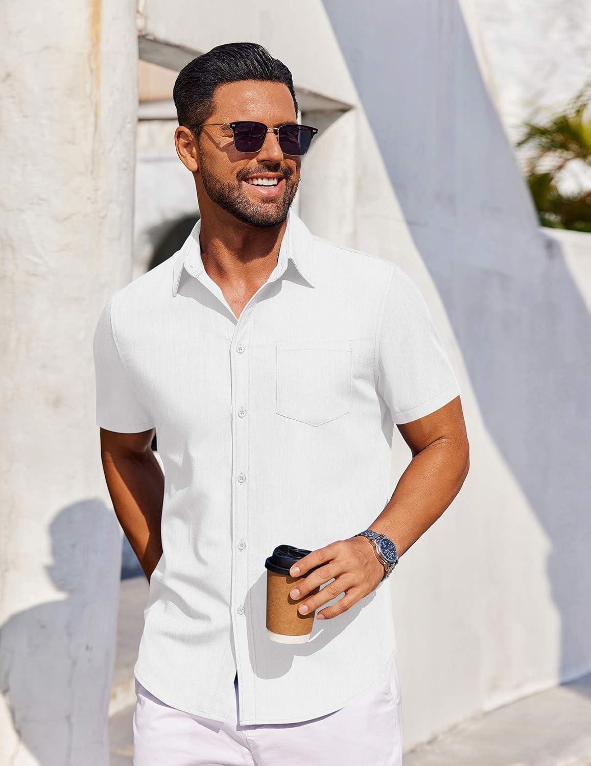 COOFANDY Mens Short Sleeve Button Down Shirts Casual Dress Shirt Untucked Shirts with Pocket(White)