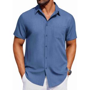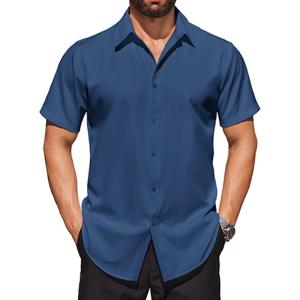 COOFANDY Mens Button Down Shirts Short Sleeve Casual Shirt Summer Untucked Dress Shirts(Captain Blue)