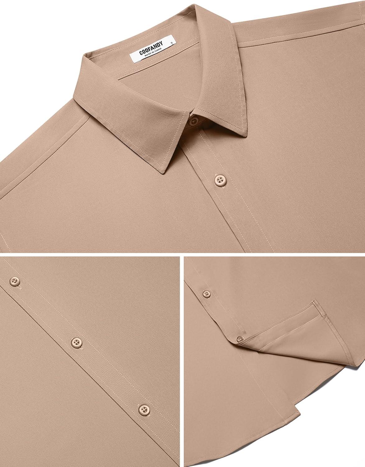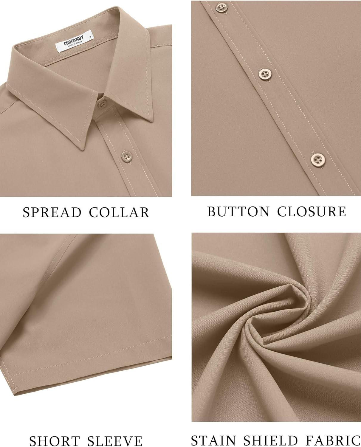 COOFANDY Men’s Button Down Shirts Stain Shield Dress Shirts Short Sleeve Summer Business Casual Shirts(Khaki)