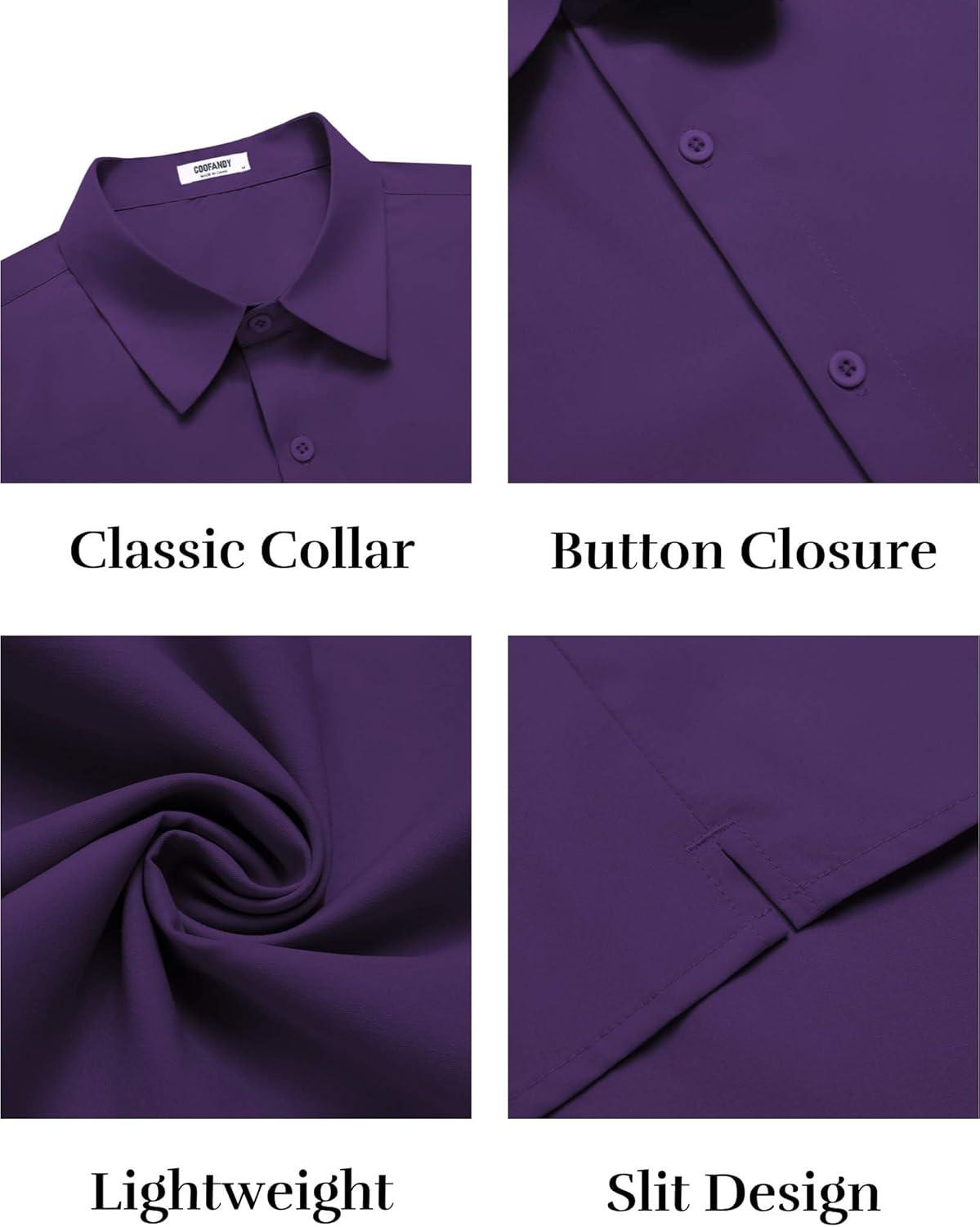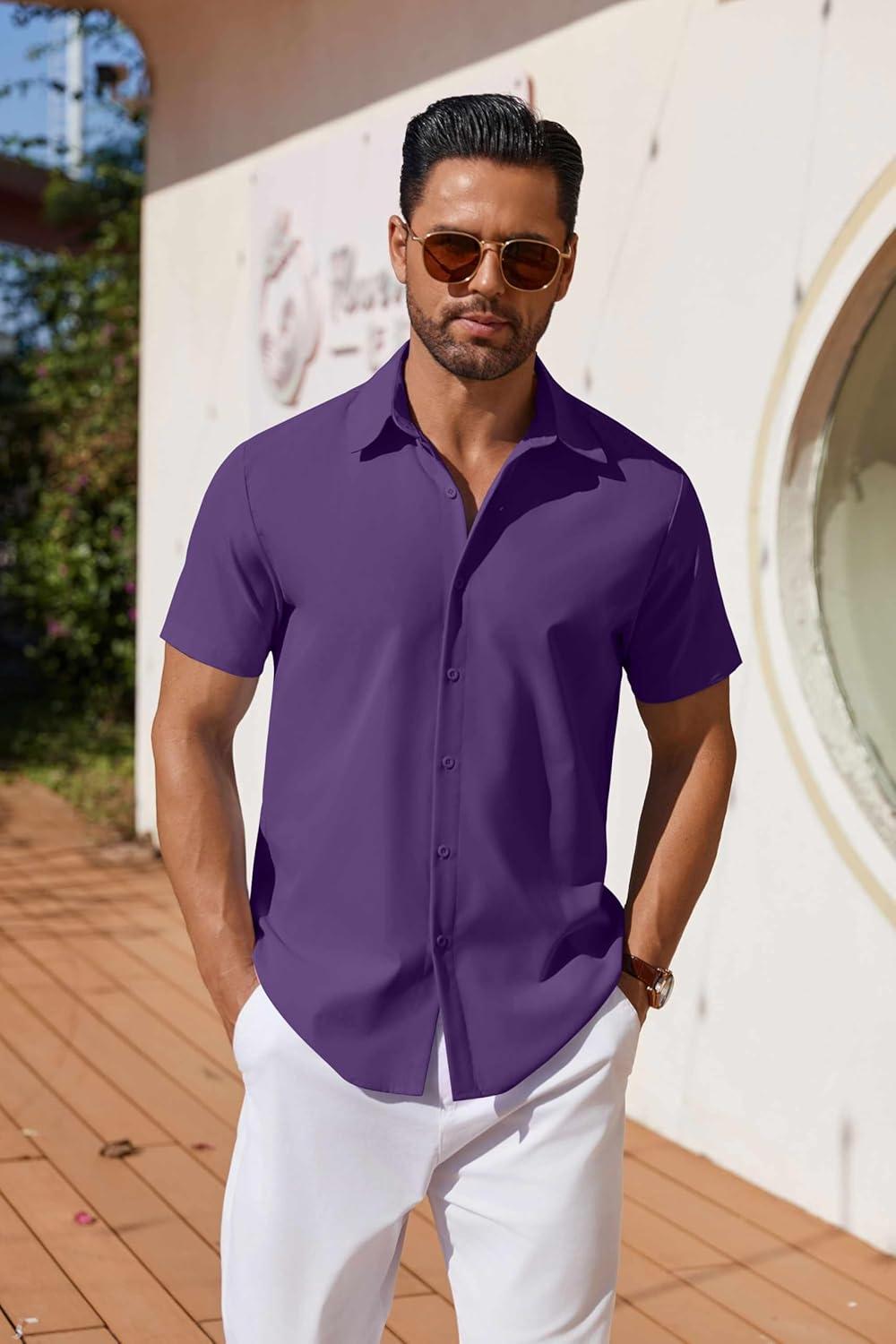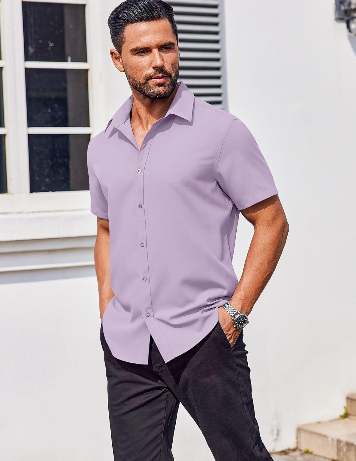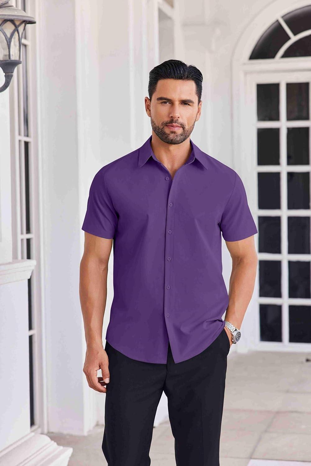 COOFANDY Mens Short Sleeve Dress Shirts Stretch Wrinkle Free Button Down Shirt Casual Summer Top(Purple)
