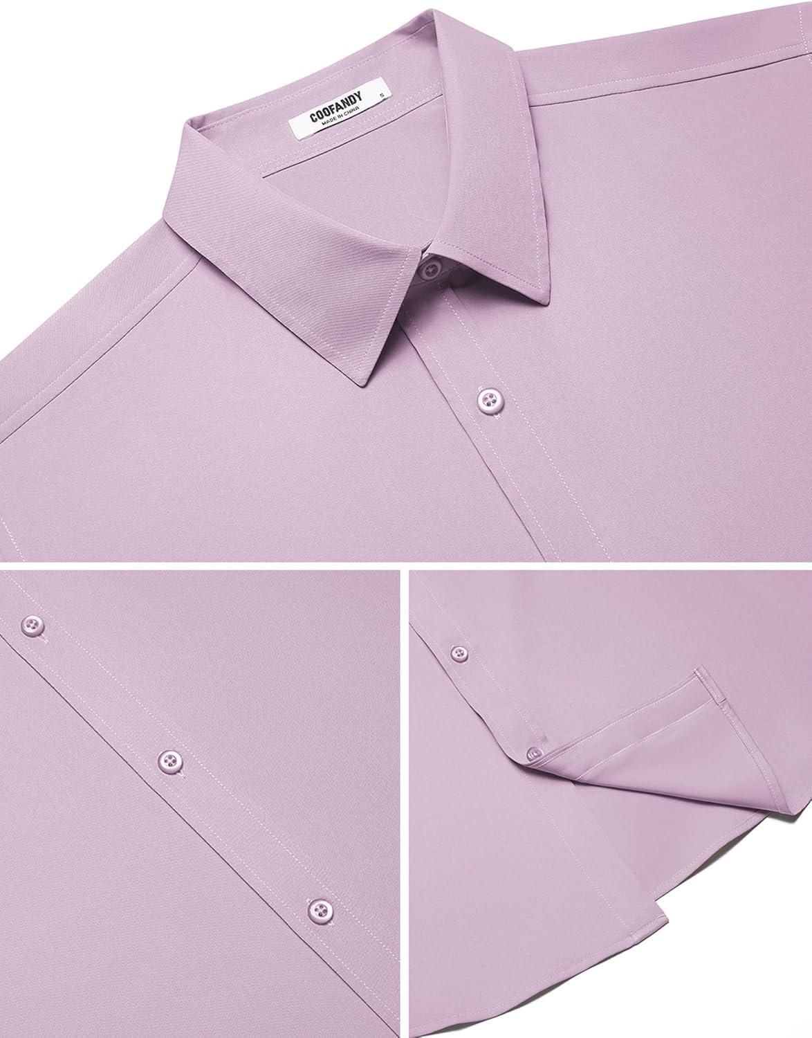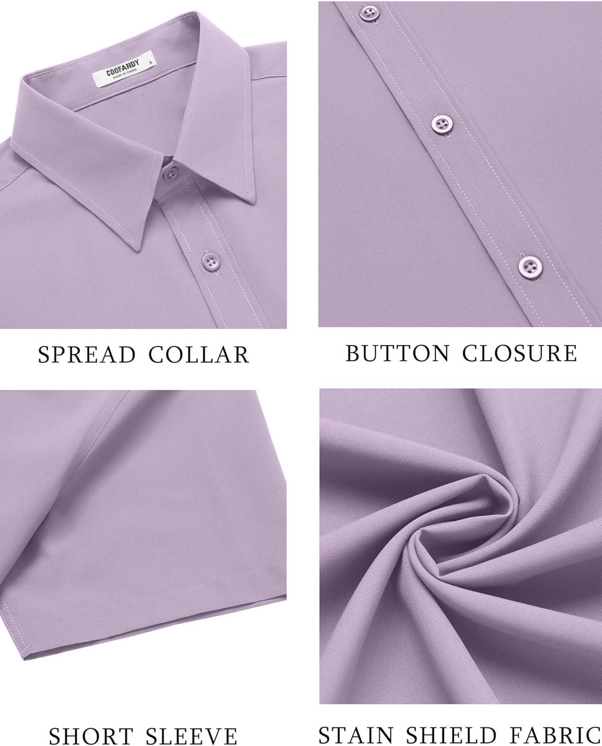 COOFANDY Men’s Button Down Shirts Stain Shield Dress Shirts Short Sleeve Summer Business Casual Shirts(Lavender)