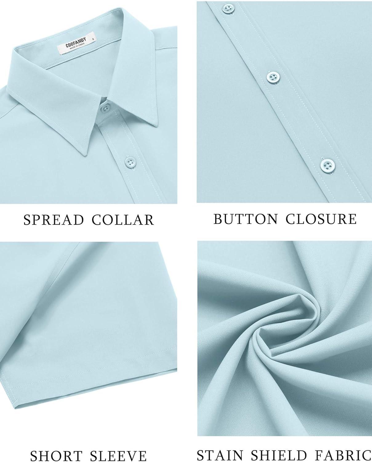 COOFANDY Men’s Button Down Shirts Stain Shield Dress Shirts Short Sleeve Summer Business Casual Shirts(Light Blue)