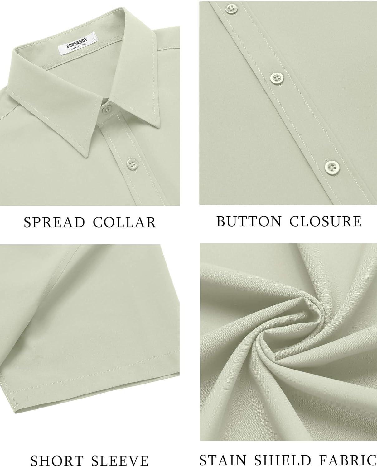 COOFANDY Men’s Button Down Shirts Stain Shield Dress Shirts Short Sleeve Summer Business Casual Shirts(Light Green)