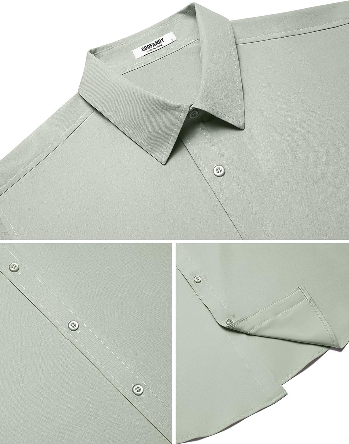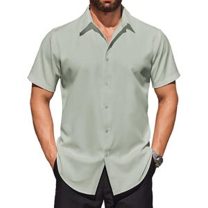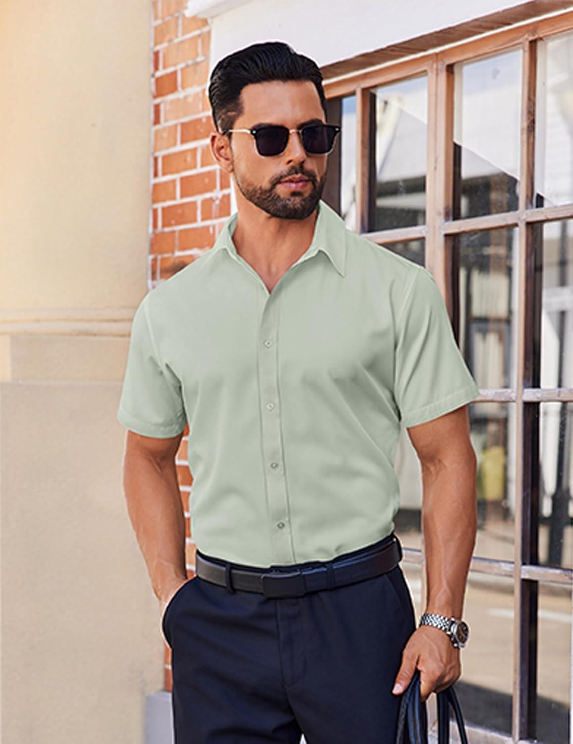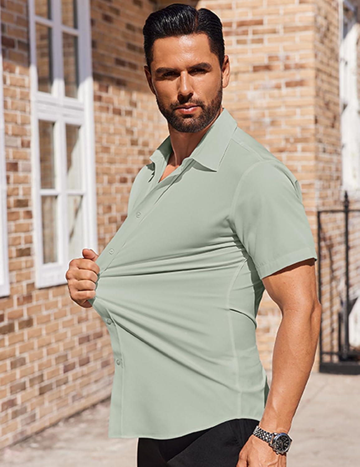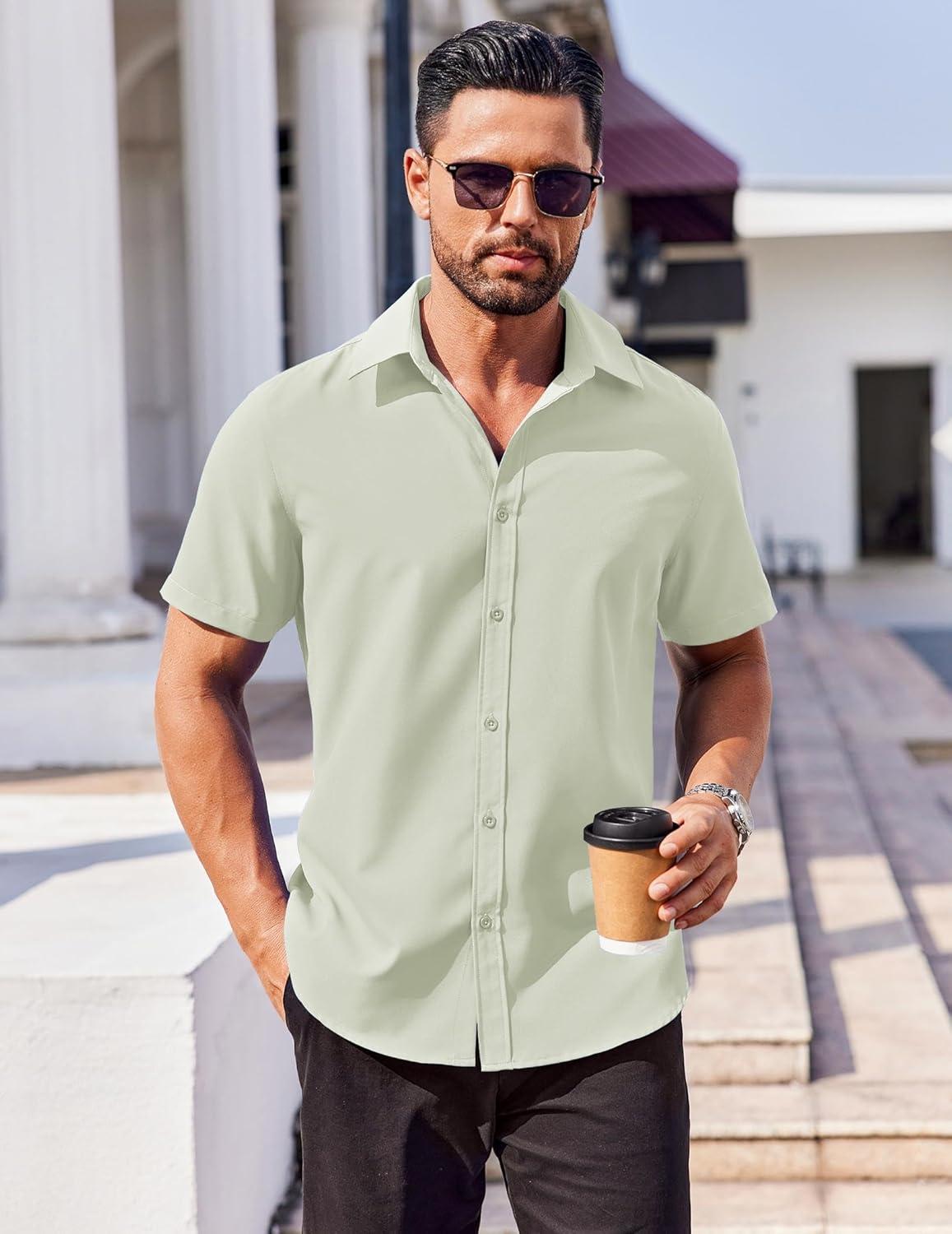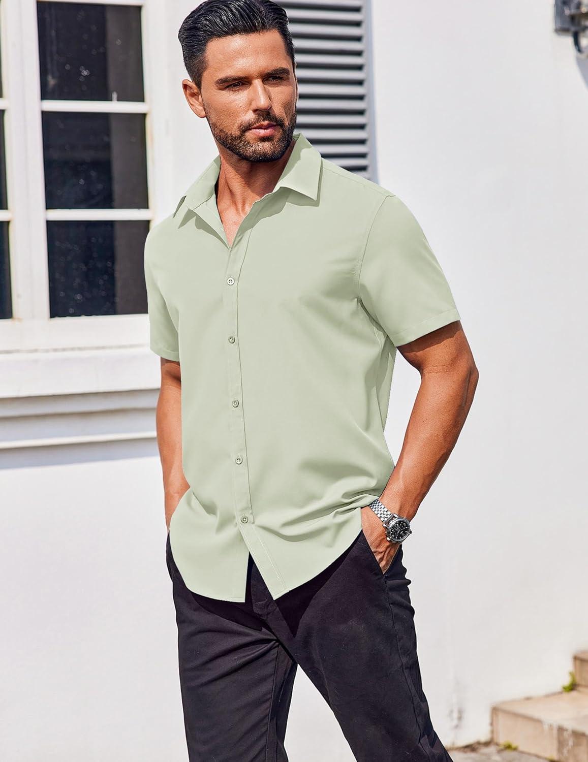 COOFANDY Mens Short Sleeve Dress Shirts Stretch Wrinkle Free Button Down Shirt Casual Summer Top(Light Green)