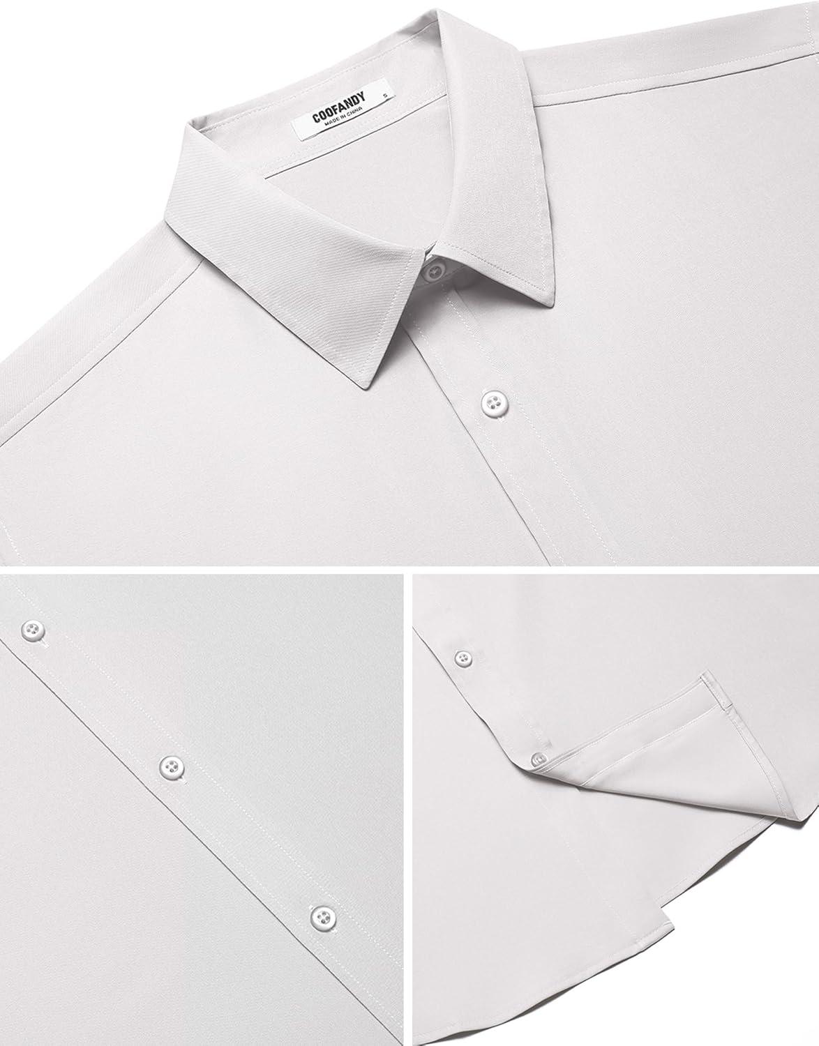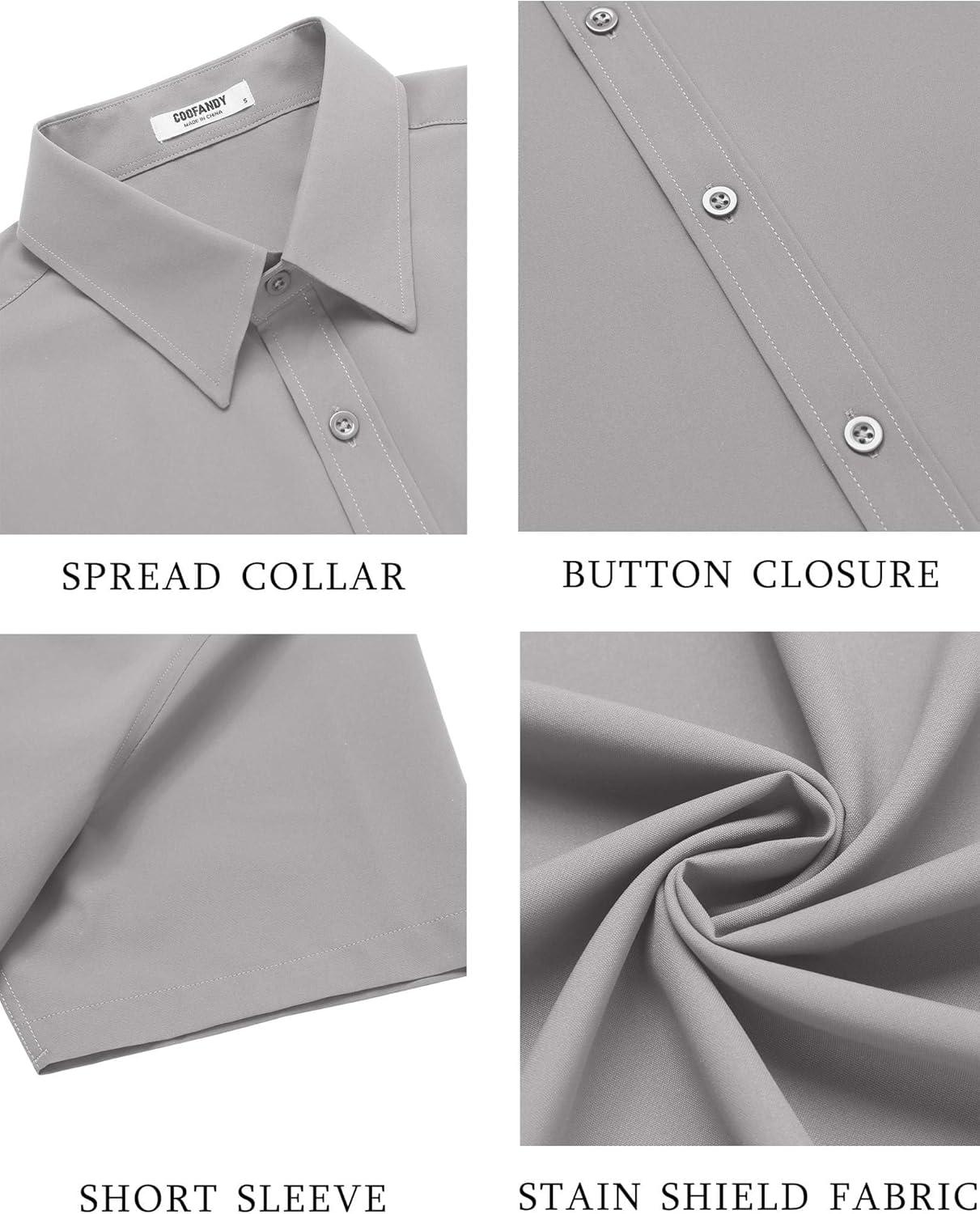 COOFANDY Men’s Button Down Shirts Stain Shield Dress Shirts Short Sleeve Summer Business Casual Shirts(Light Grey)