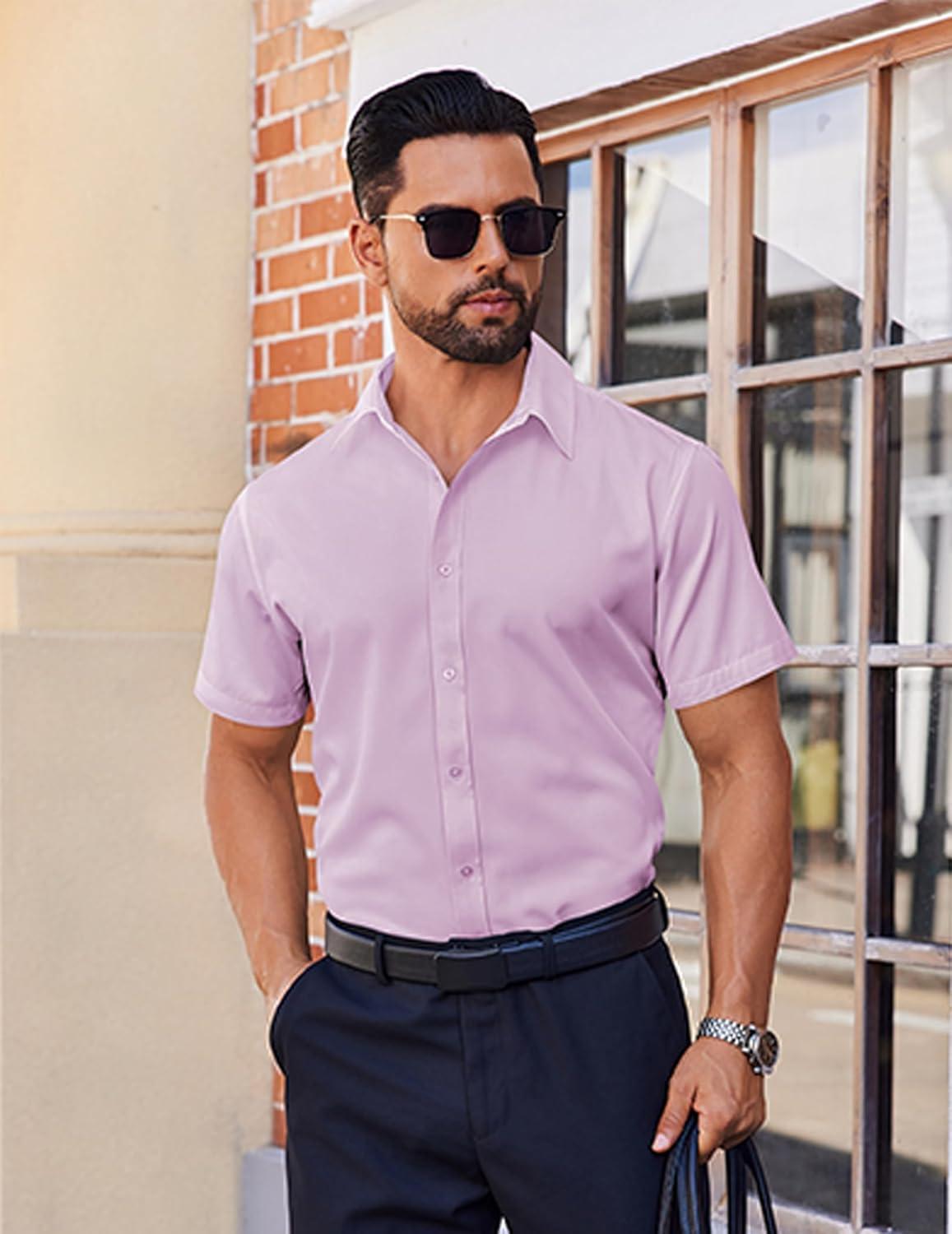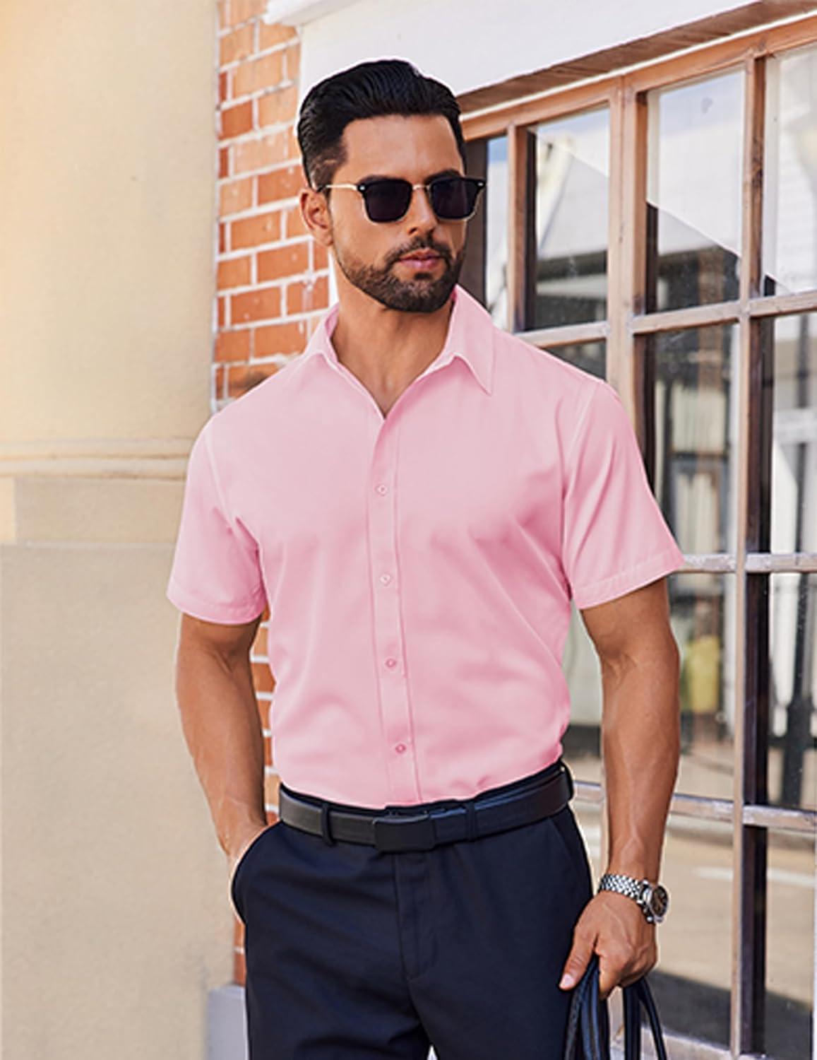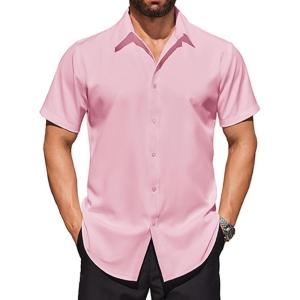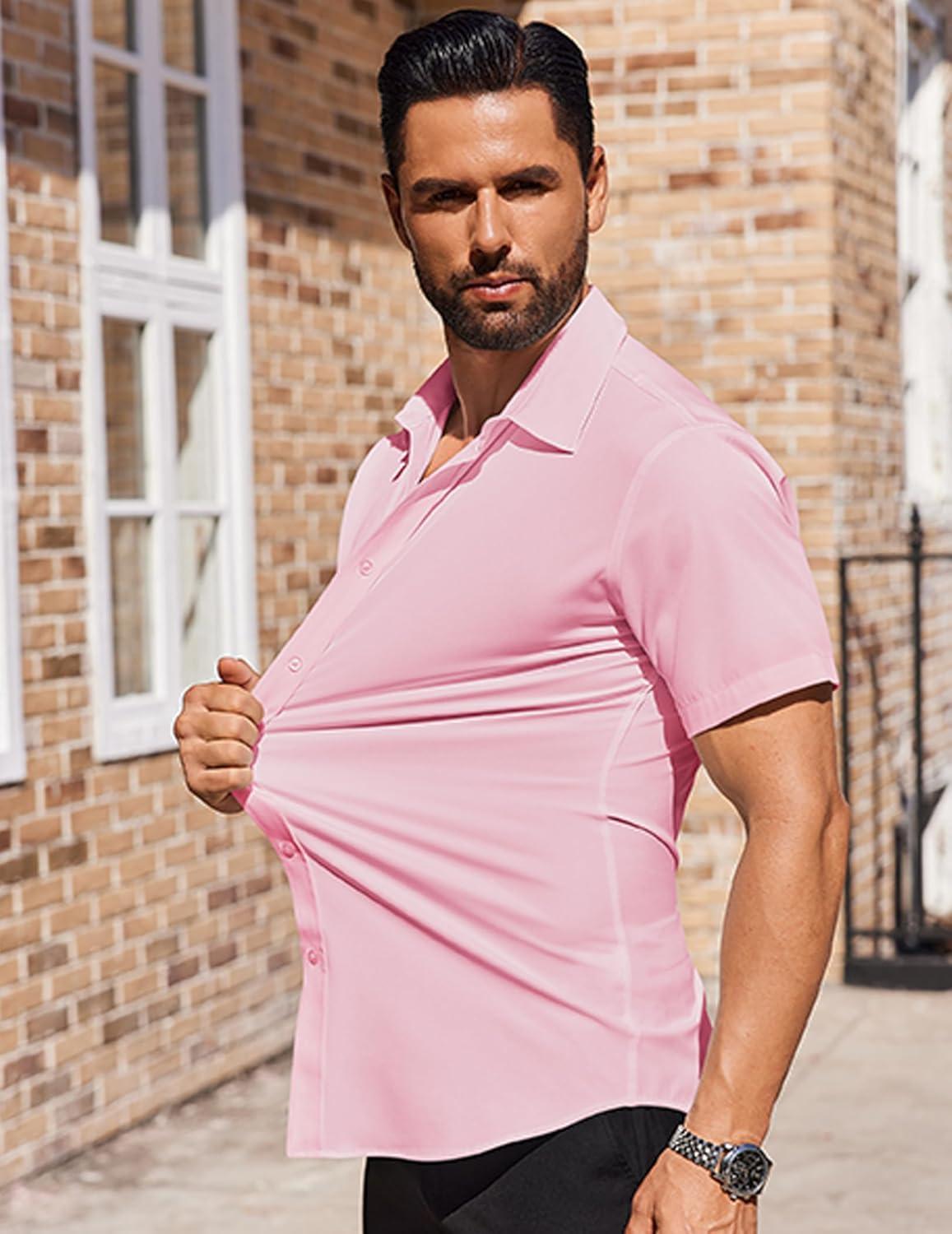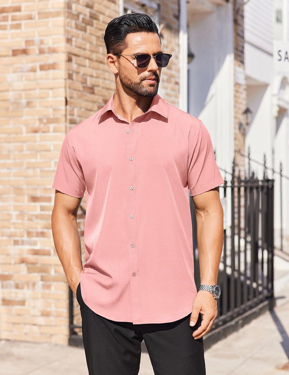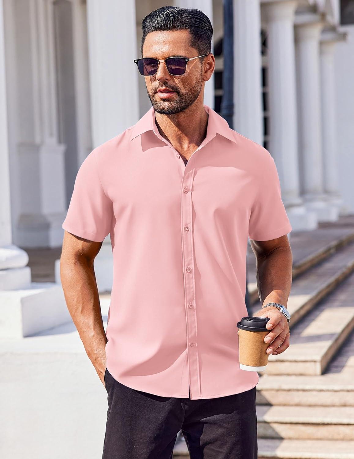 COOFANDY Mens Short Sleeve Dress Shirts Stretch Wrinkle Free Button Down Shirt Casual Summer Top(Pink)