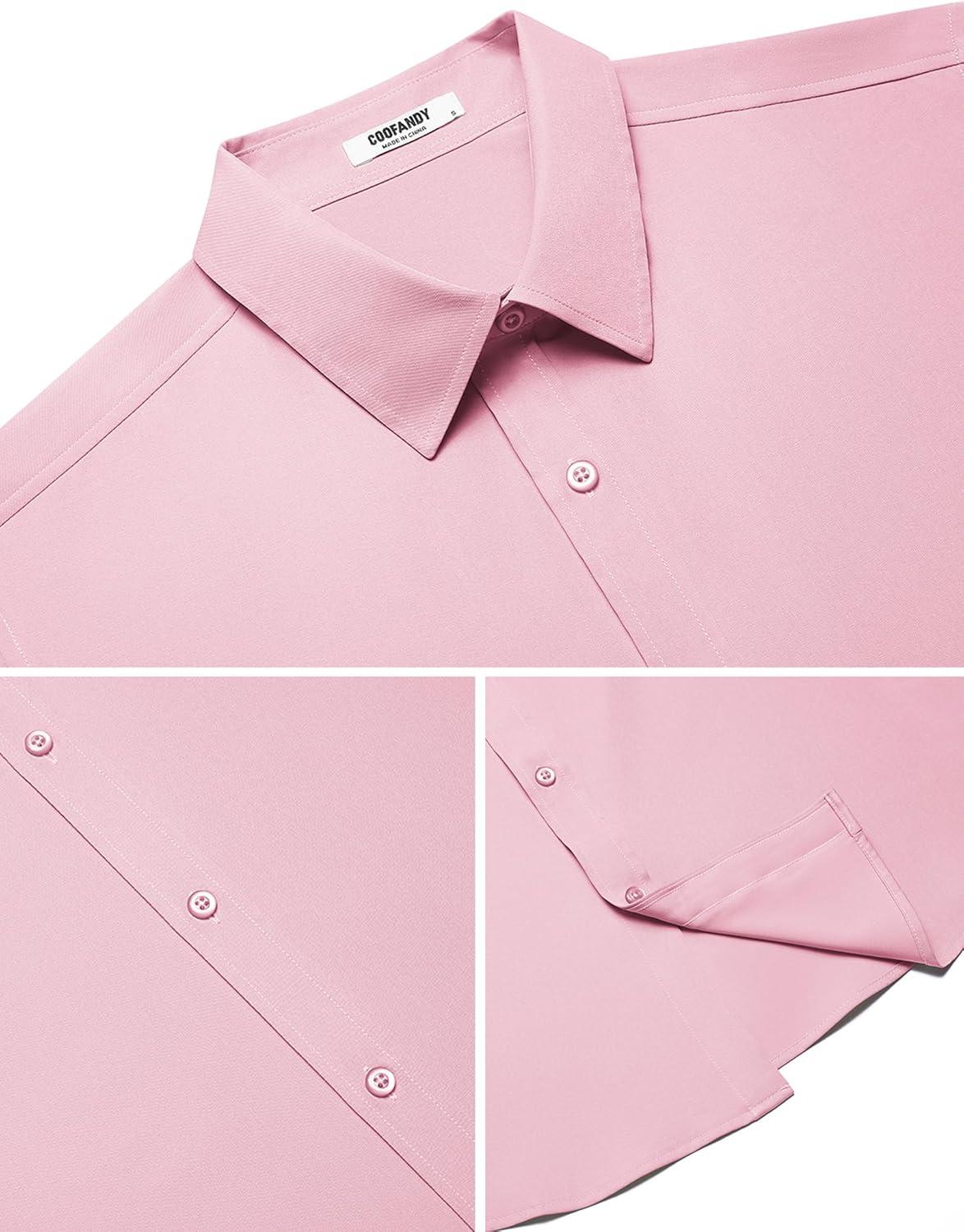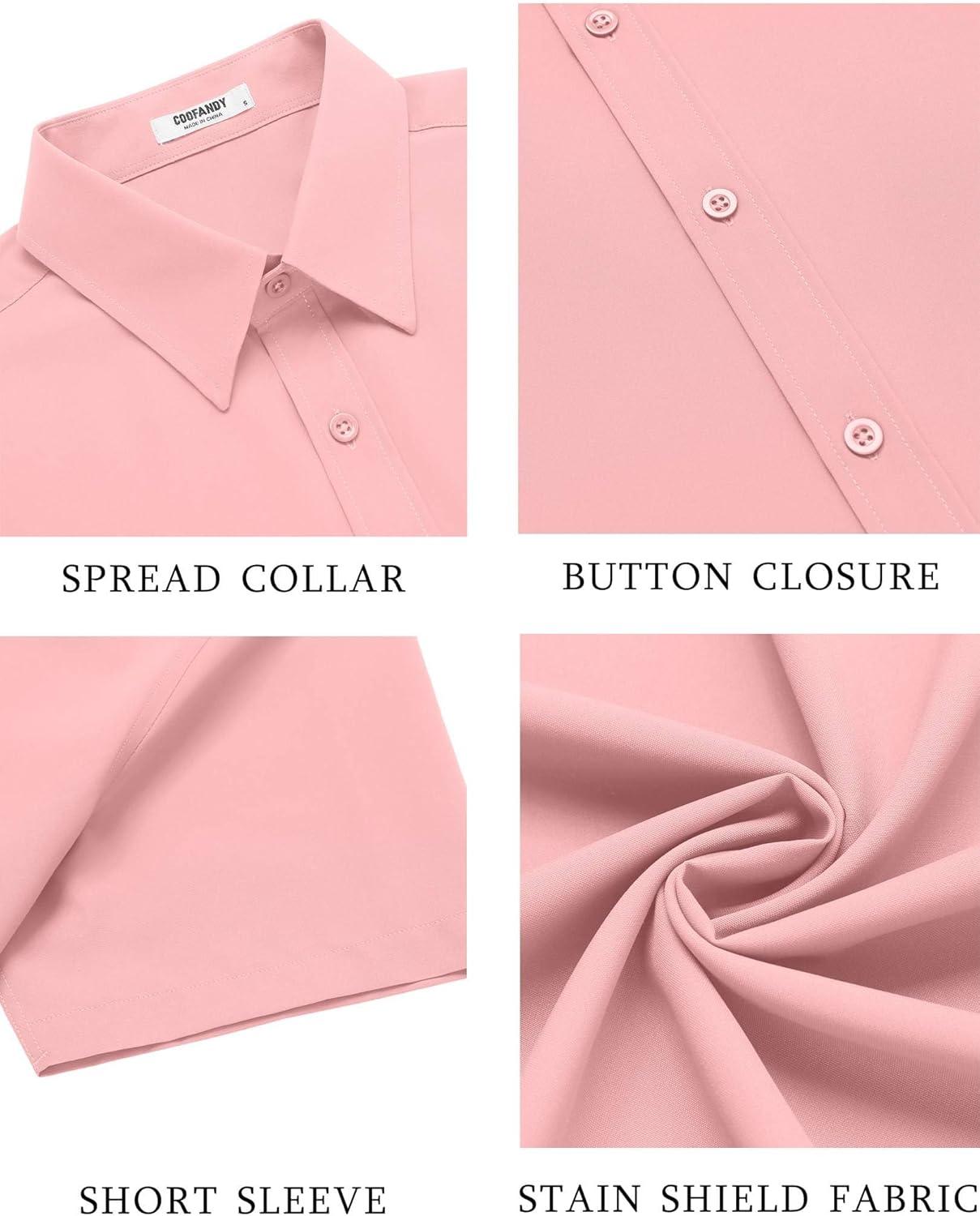 COOFANDY Men’s Button Down Shirts Stain Shield Dress Shirts Short Sleeve Summer Business Casual Shirts(Pink)