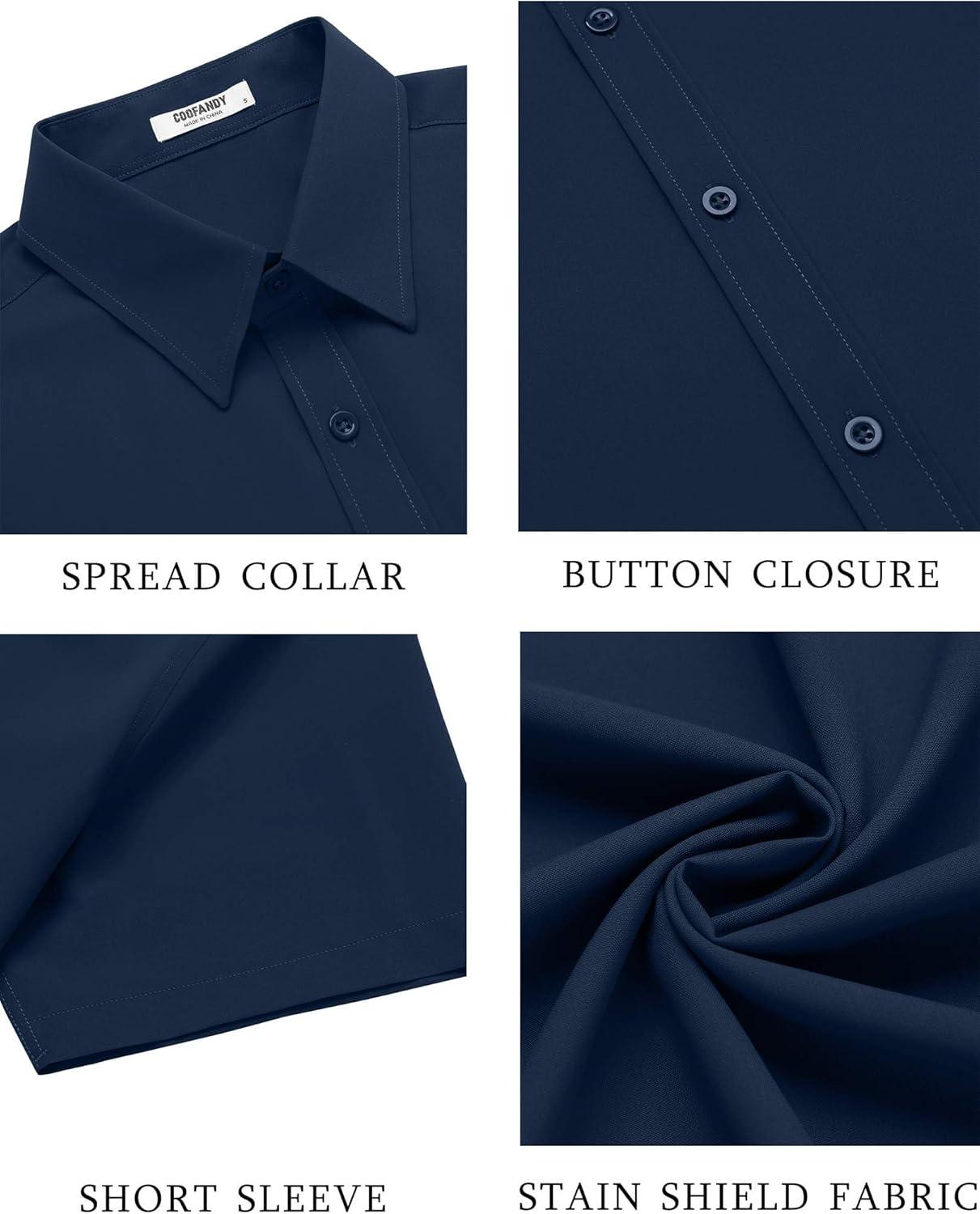 COOFANDY Men’s Button Down Shirts Stain Shield Dress Shirts Short Sleeve Summer Business Casual Shirts(Navy)