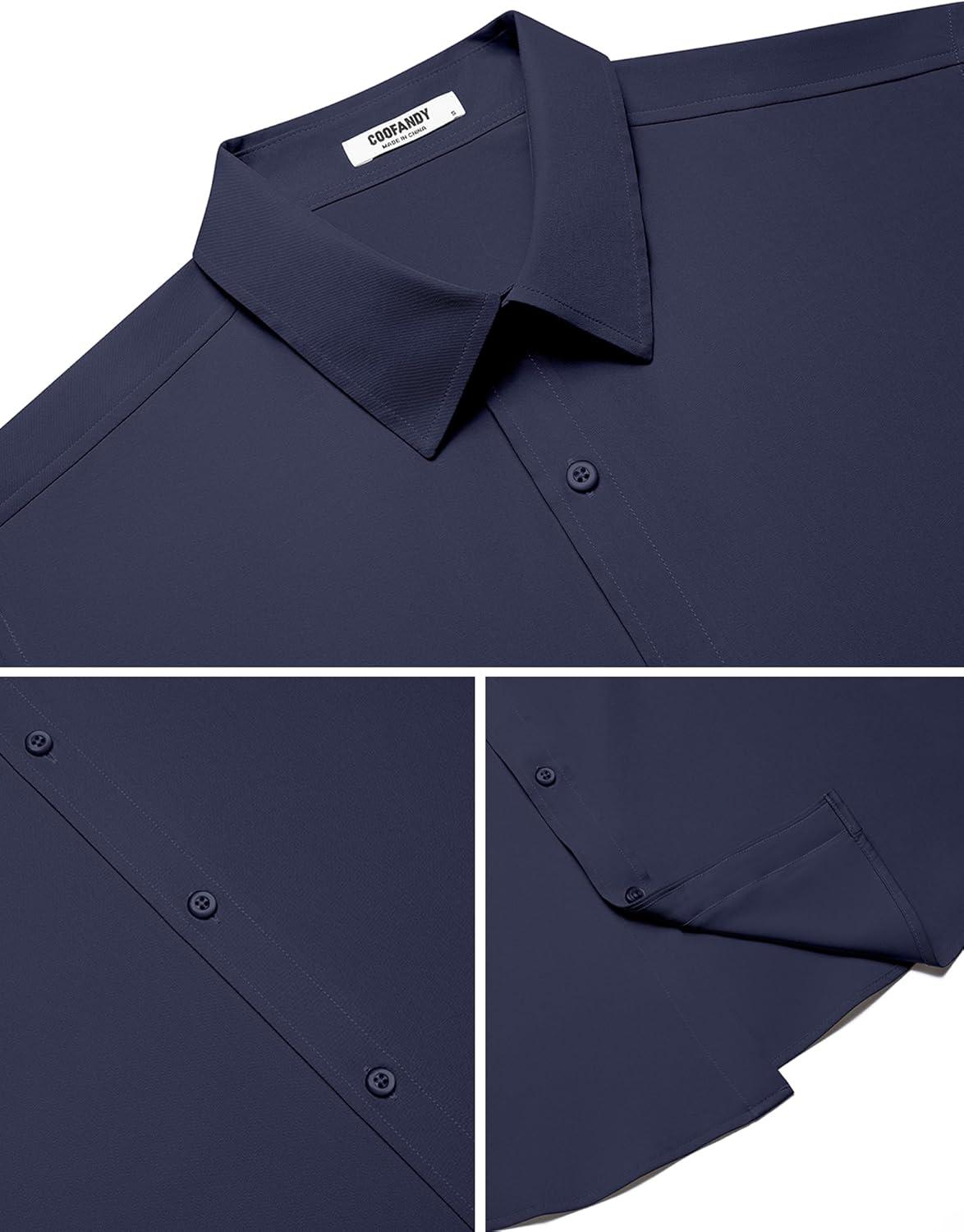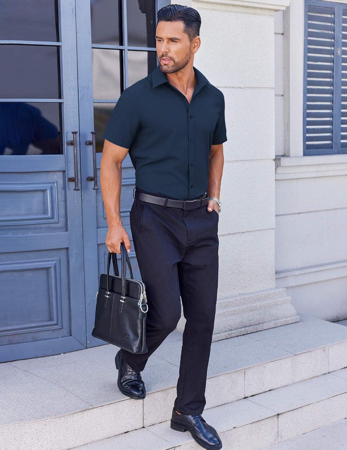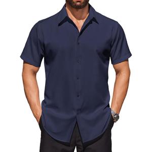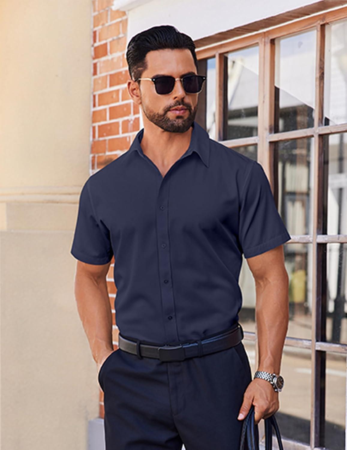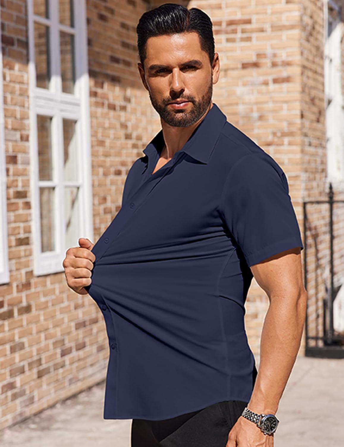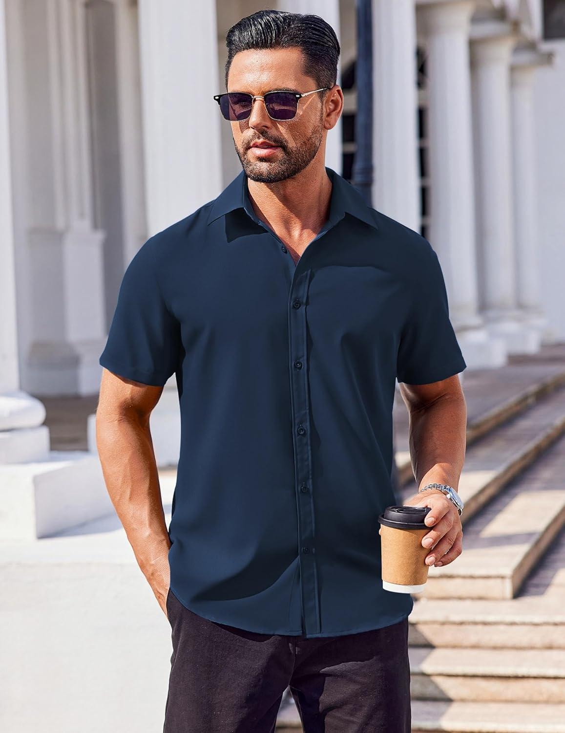 COOFANDY Mens Short Sleeve Dress Shirts Stretch Wrinkle Free Button Down Shirt Casual Summer Top(Navy Blue)