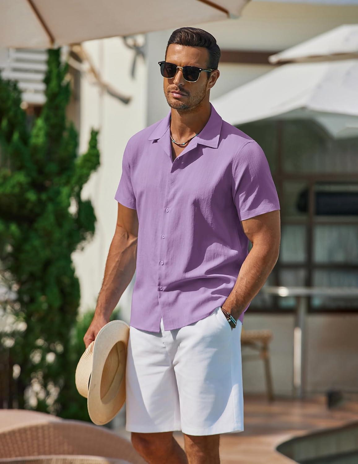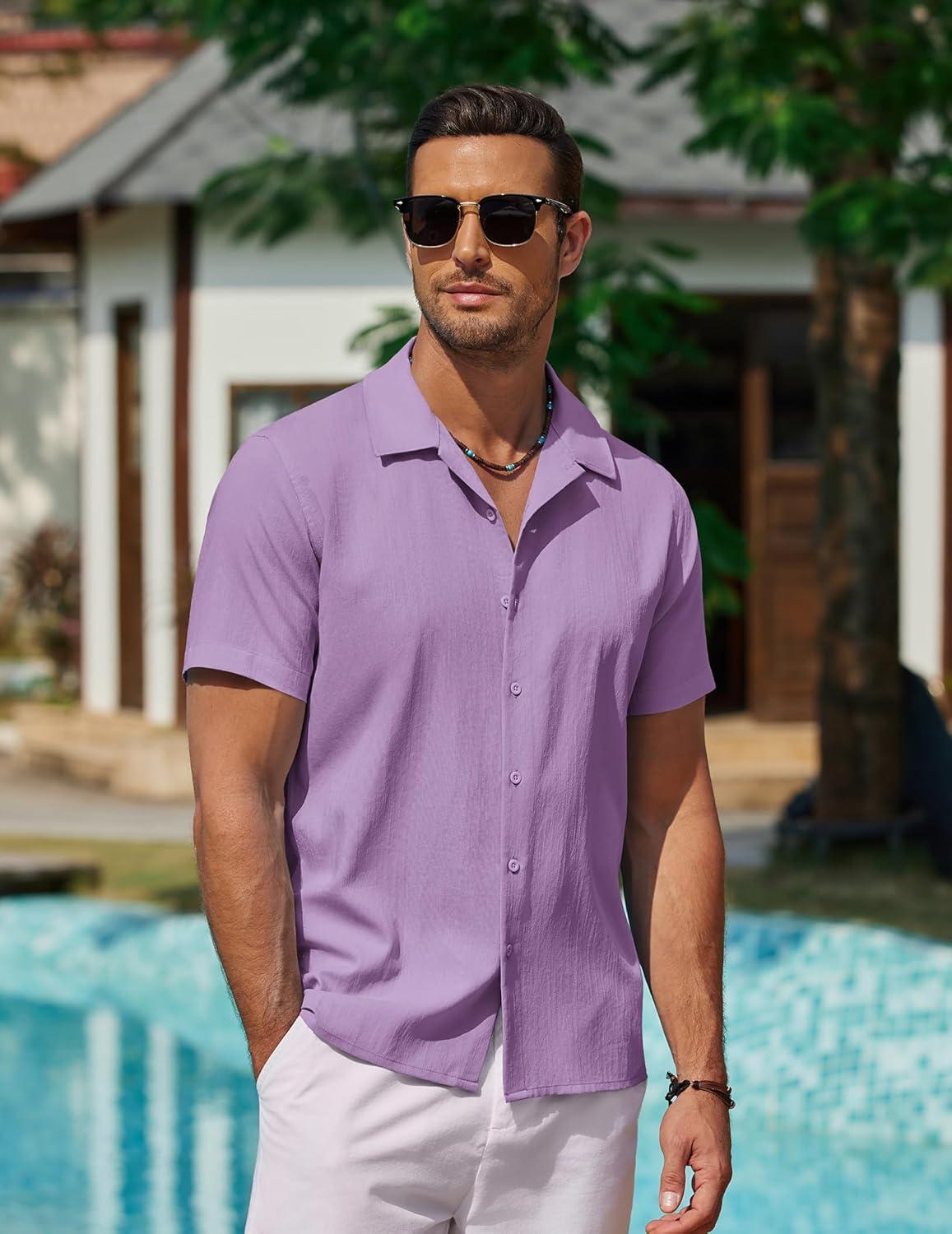 COOFANDY Mens Button Down Shirts Short Sleeve Casual Shirt Summer Untucked Dress Shirts(Purple)