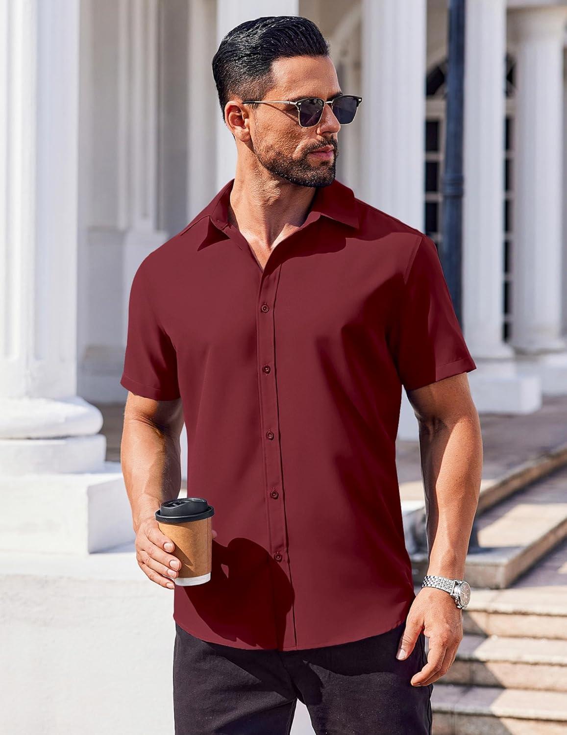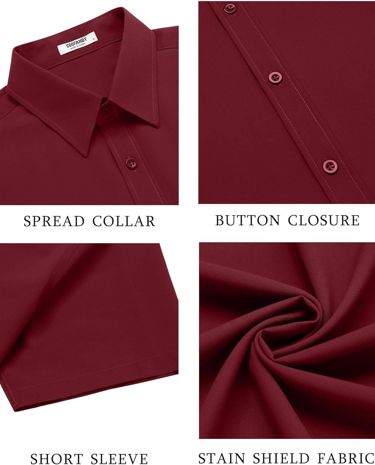 COOFANDY Men’s Button Down Shirts Stain Shield Dress Shirts Short Sleeve Summer Business Casual Shirts(Wine Red)