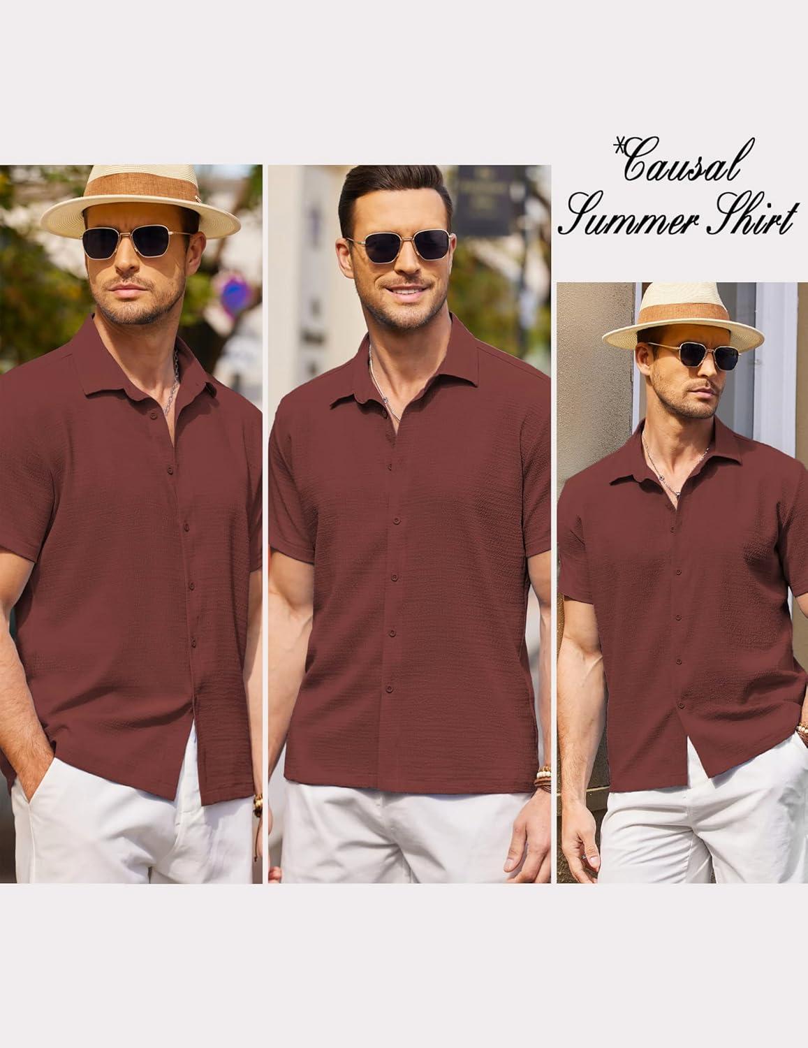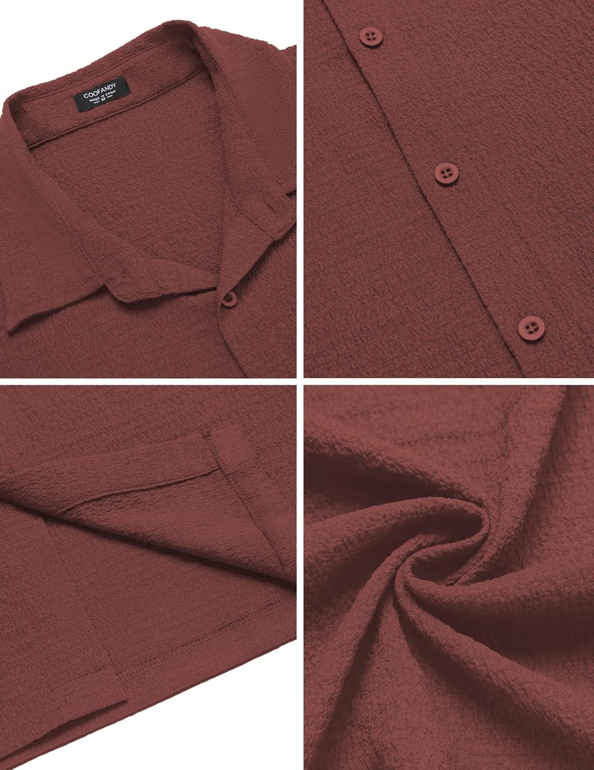 COOFANDY Mens Button Down Short Sleeve Shirt Casual Shirts Summer Beach Textured Shirts with Pocket(Burgundy)
