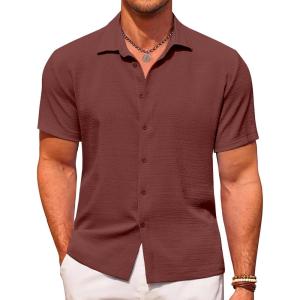 COOFANDY Men’s Knit Shirts Vintage Short Sleeve Button Down Shirt Casual Summer Beach Shirt(Brown)