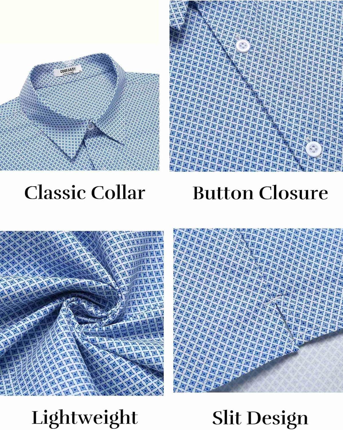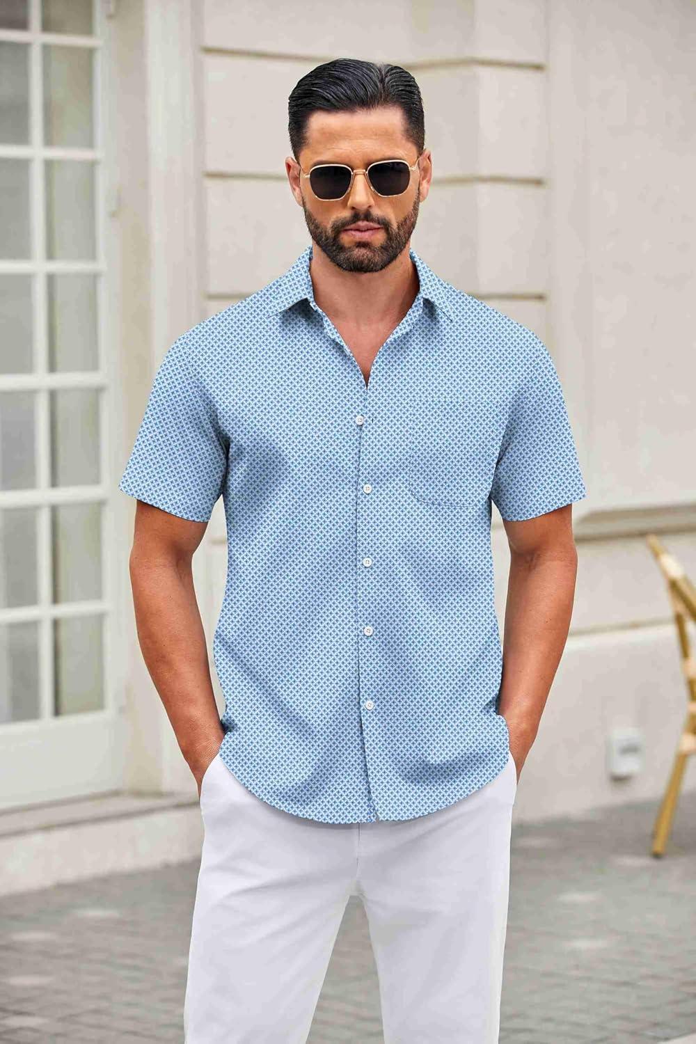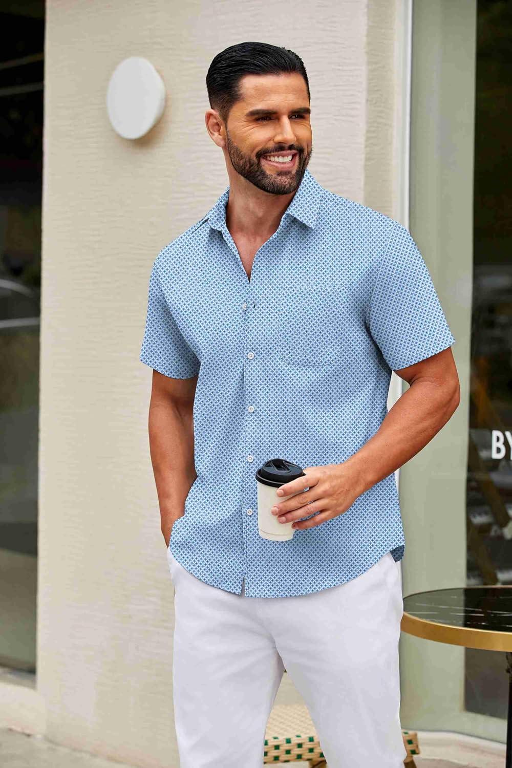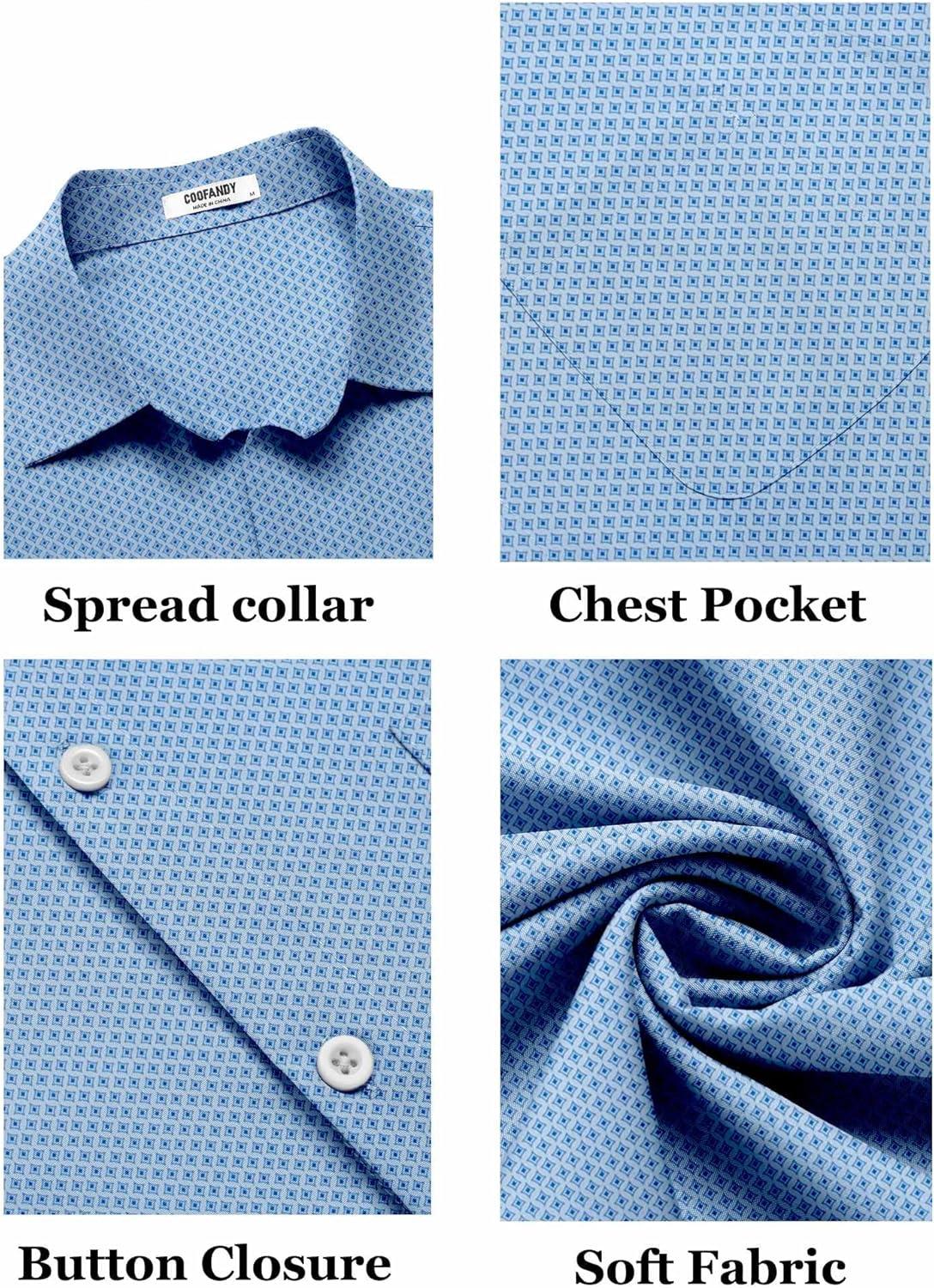 COOFANDY Mens Short Sleeve Button Down Shirts Casual Dress Shirt Untucked Shirts with Pocket(Blue Patterned)
