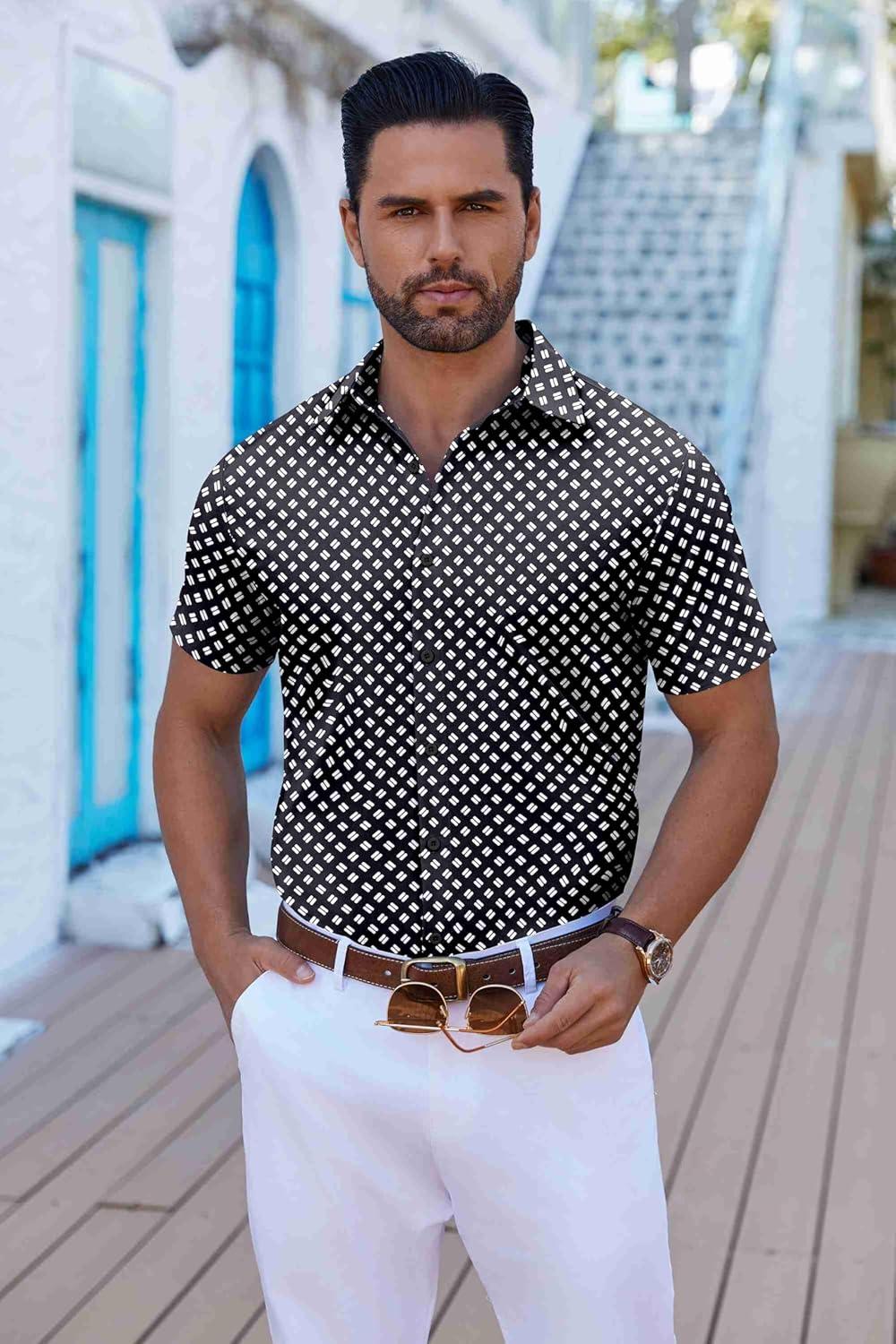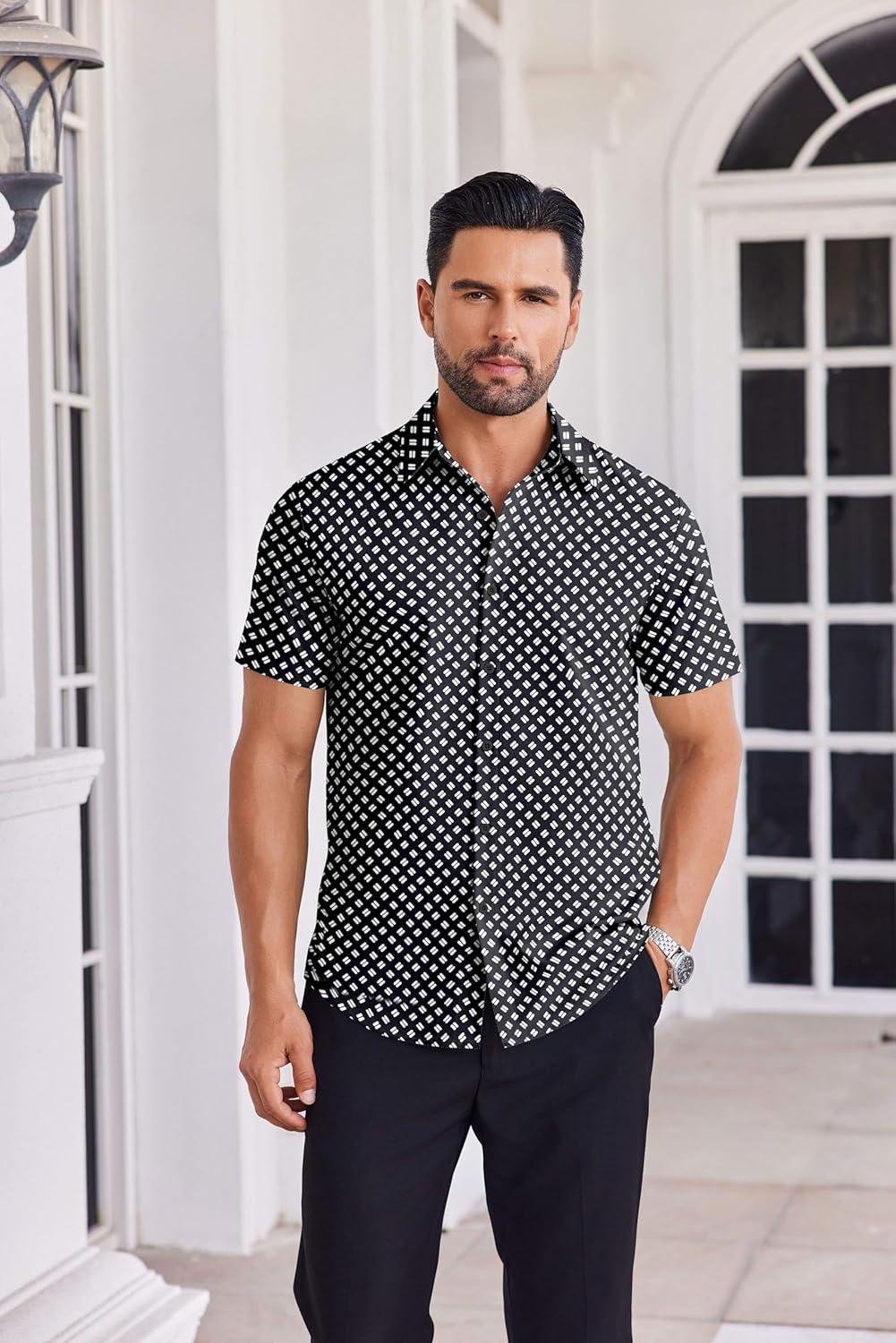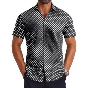COOFANDY Mens Button Down Shirts Short Sleeve Casual Shirt Summer Untucked Dress Shirts(Geometric Black)