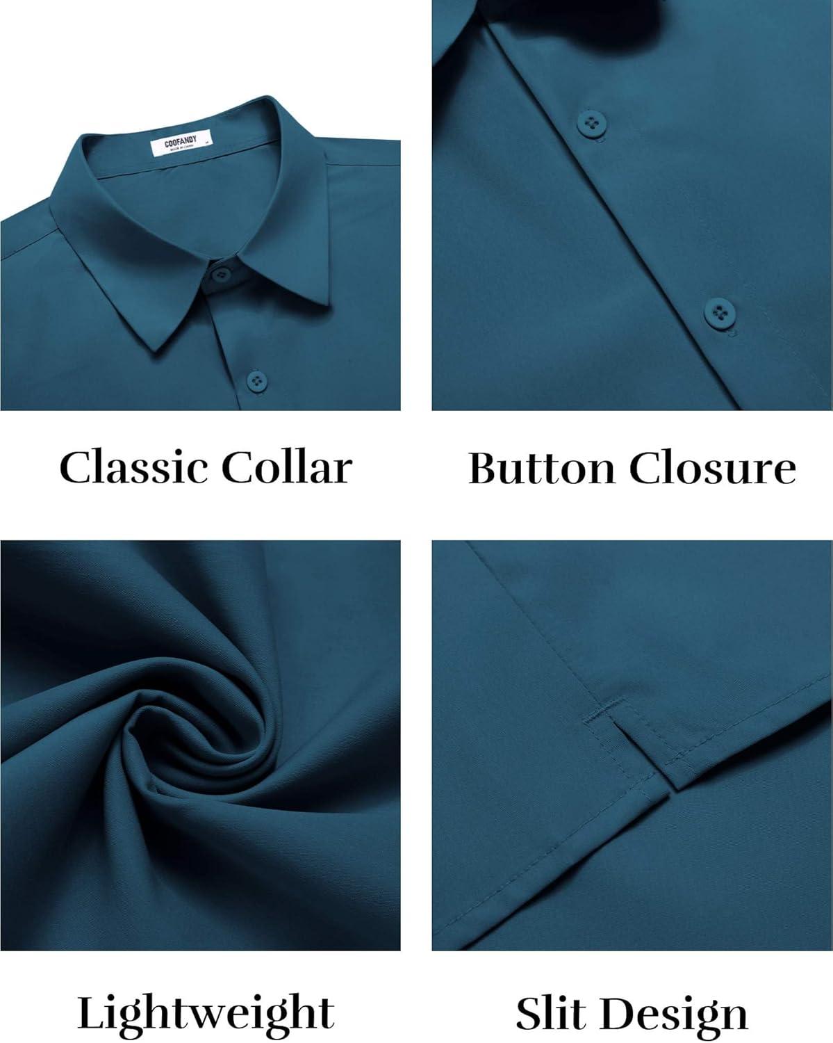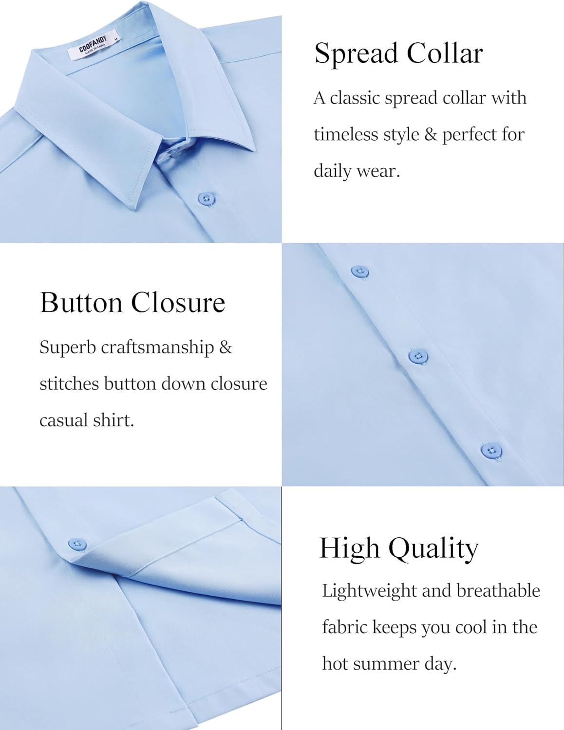 COOFANDY Men’s Button Down Shirts Stain Shield Dress Shirts Short Sleeve Summer Business Casual Shirts(Blue)