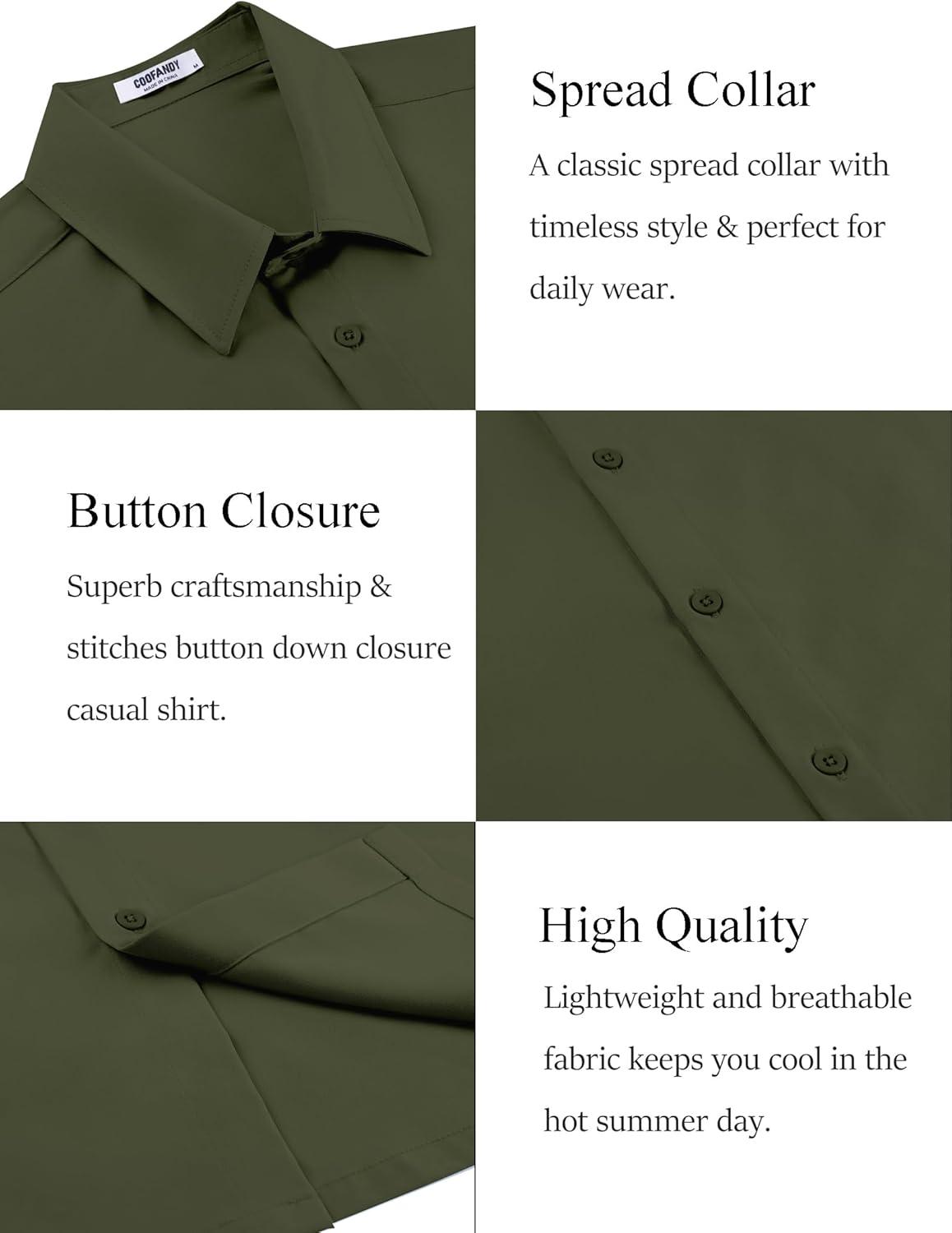 COOFANDY Men’s Button Down Shirts Stain Shield Dress Shirts Short Sleeve Summer Business Casual Shirts(Army Green)