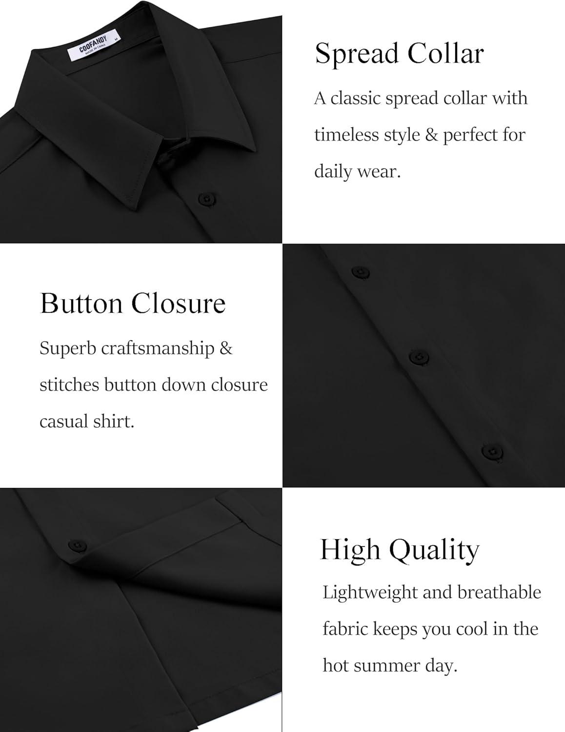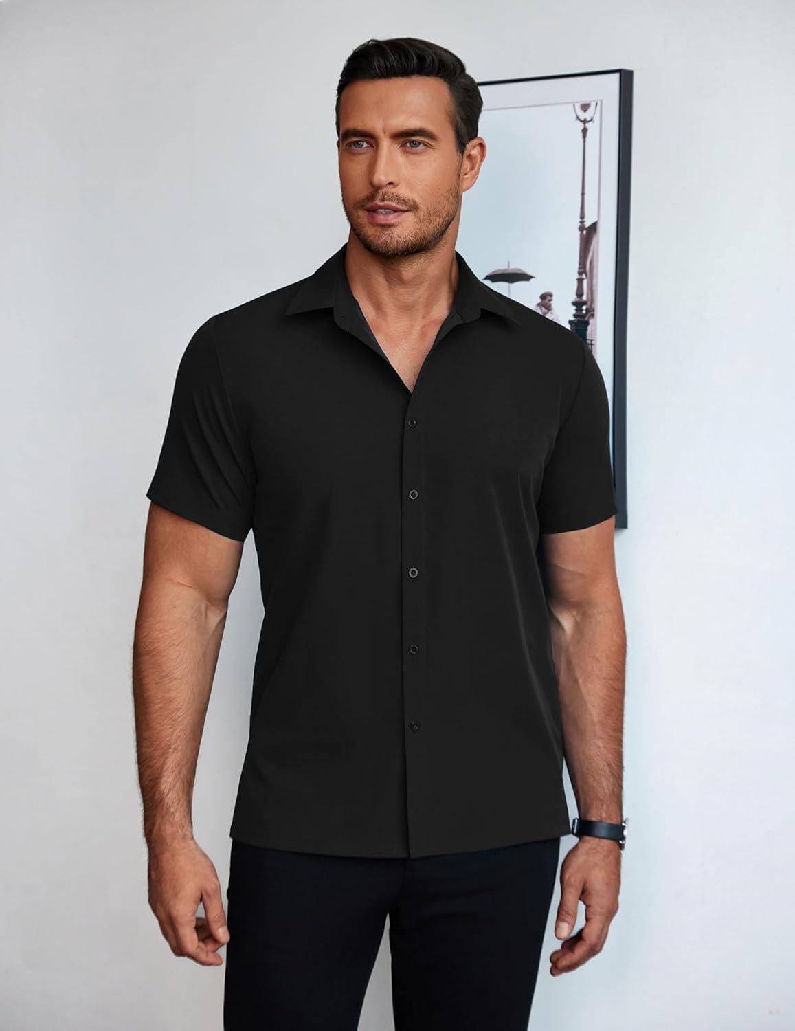 COOFANDY Men’s Button Down Shirts Stain Shield Dress Shirts Short Sleeve Summer Business Casual Shirts(Black)