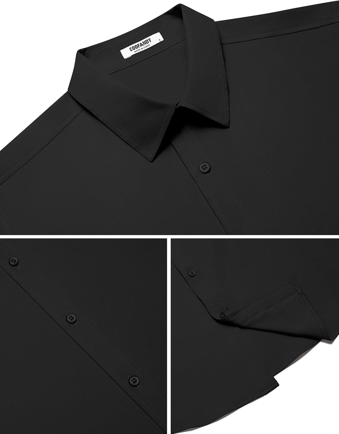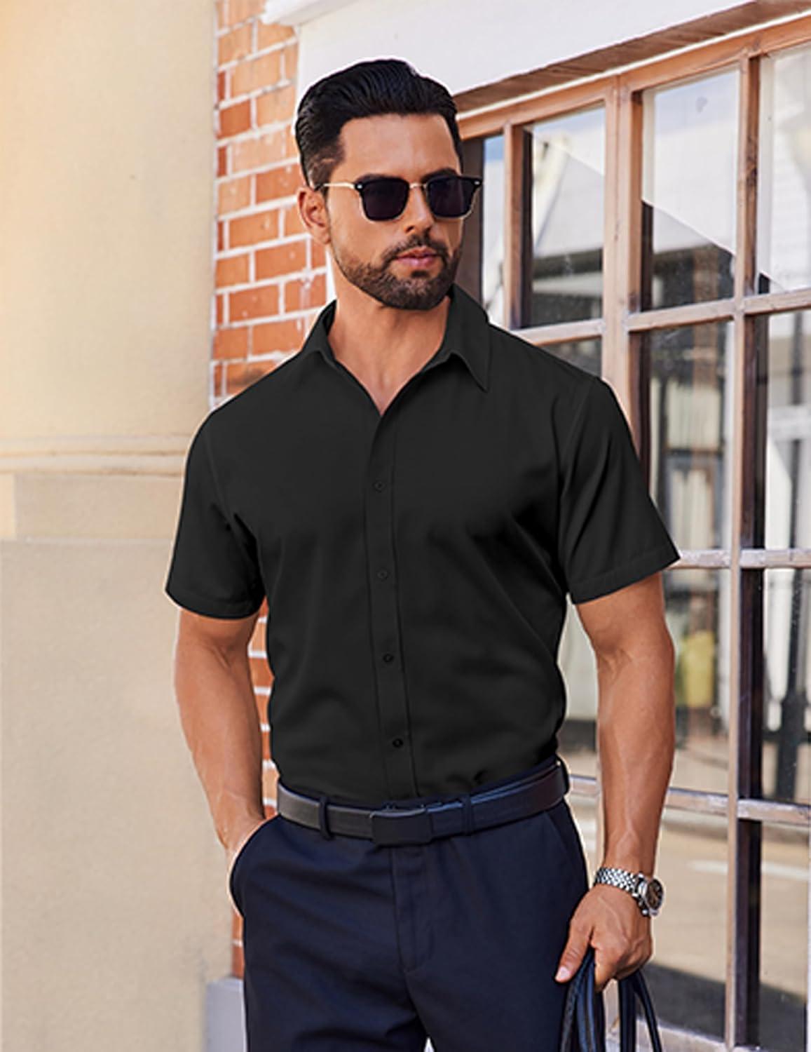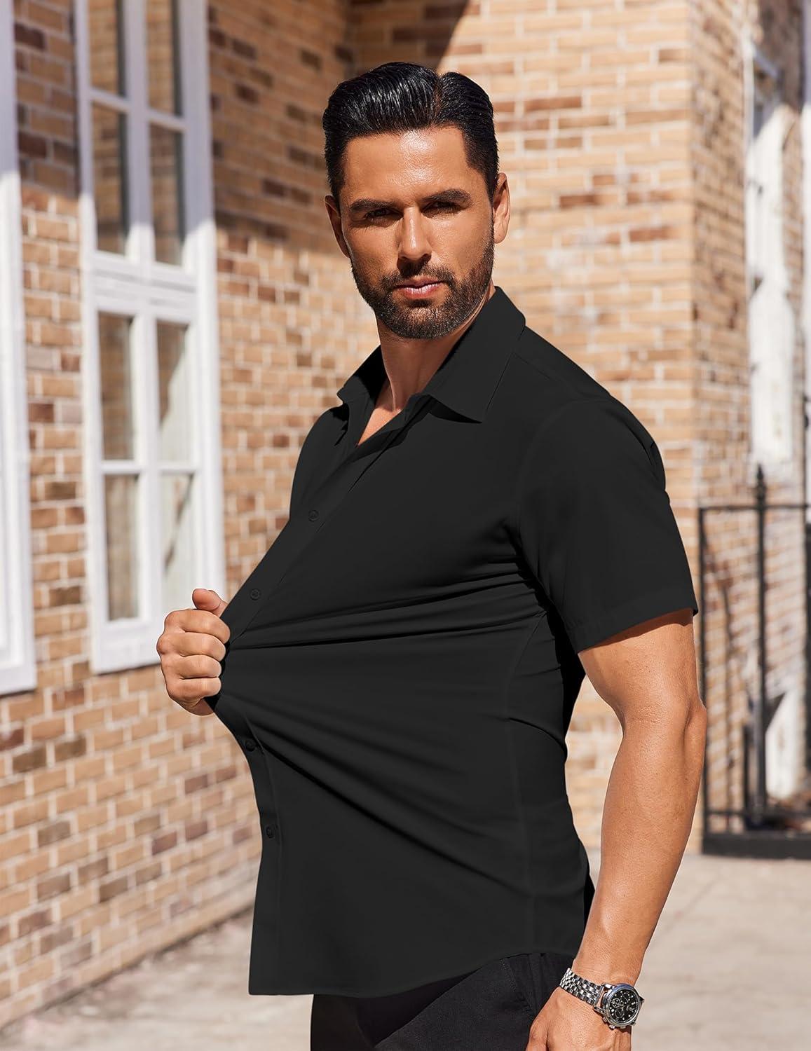 COOFANDY Mens Short Sleeve Dress Shirts Stretch Wrinkle Free Button Down Shirt Casual Summer Top(Black)