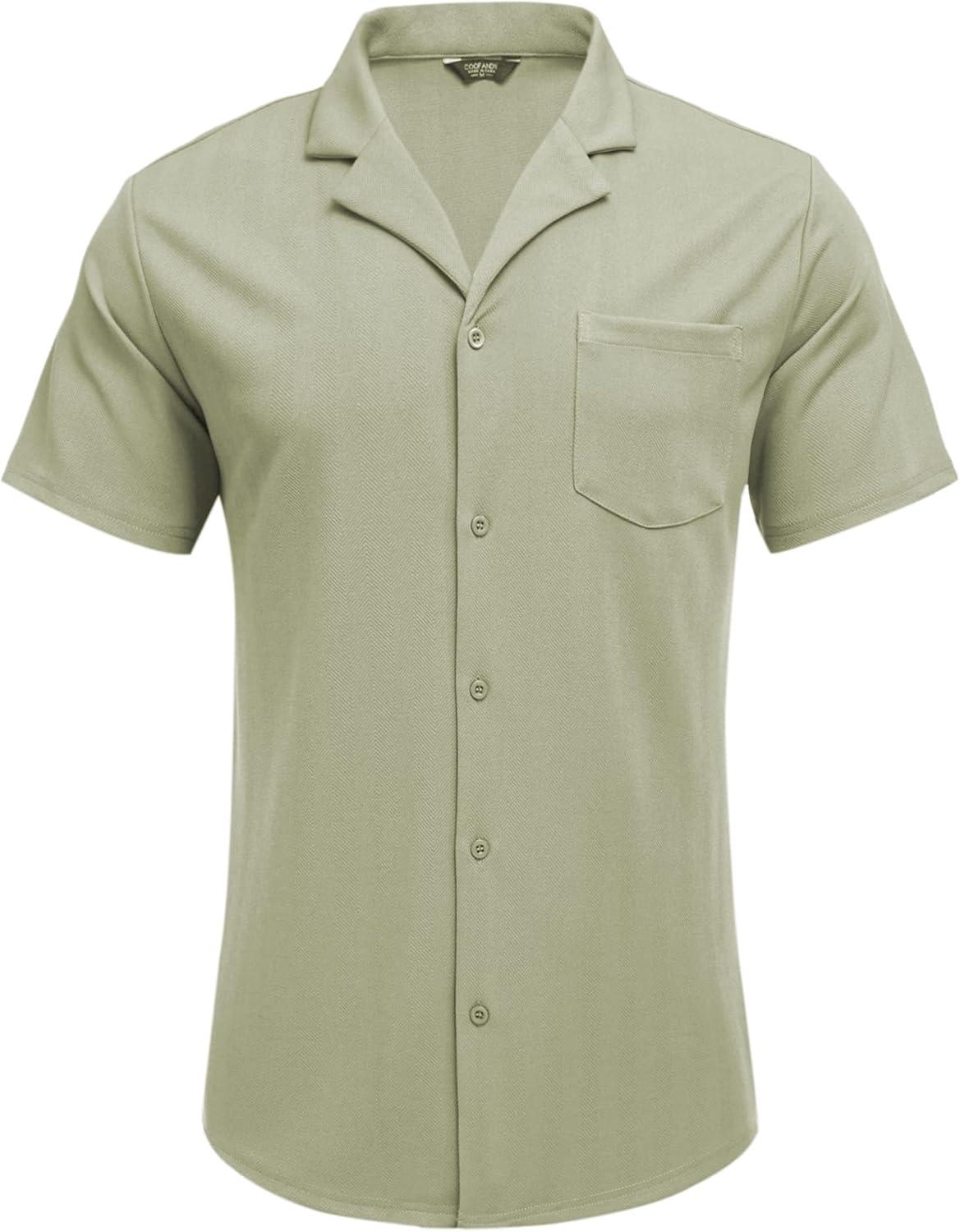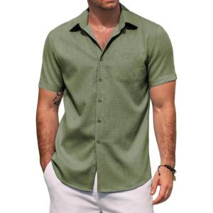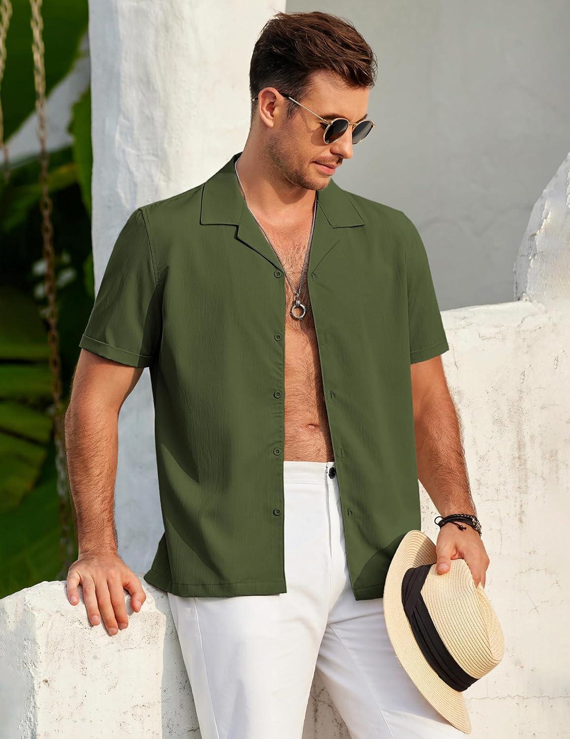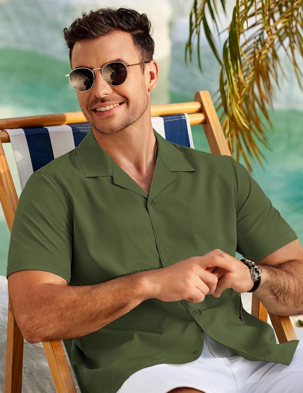 COOFANDY Mens 2025 Fashion Textured Shirts Short Sleeve Summer Beach Shirt Casual Button Down Shirts(Army Green)