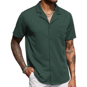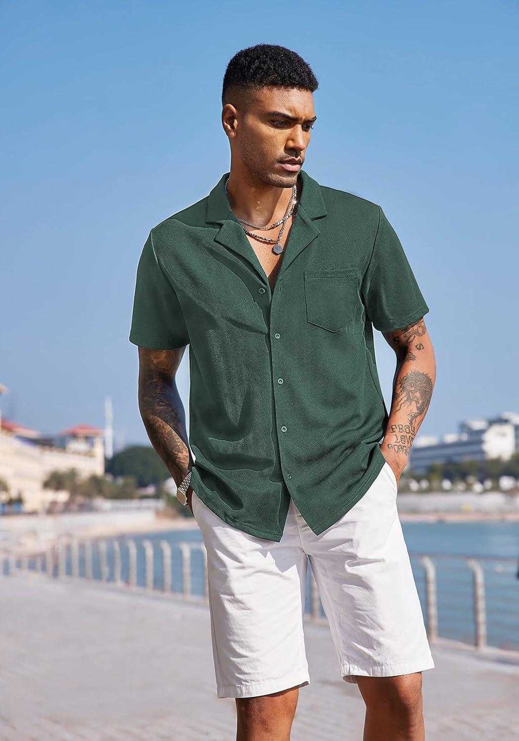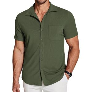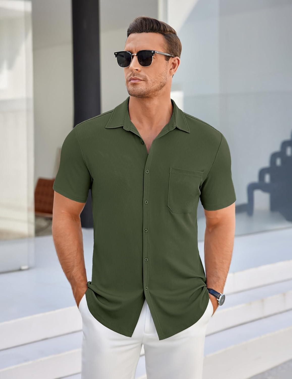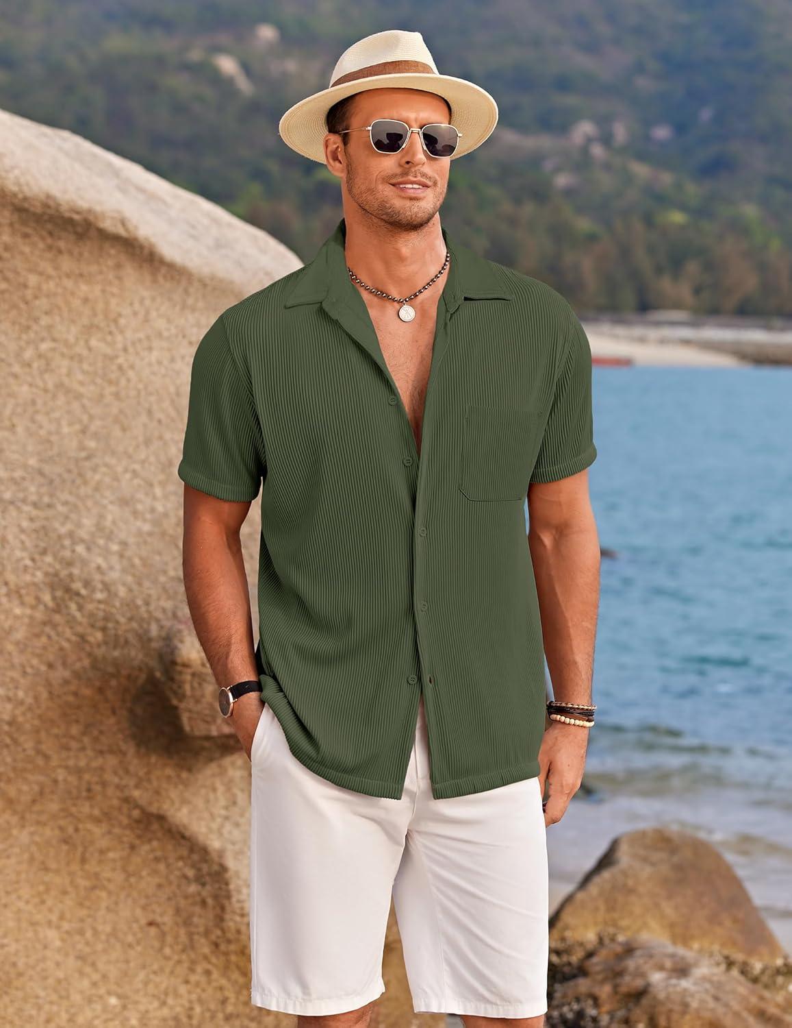 COOFANDY Mens 2025 Fashion Textured Shirts Short Sleeve Summer Beach Shirt Casual Button Down Shirts(Army Green)