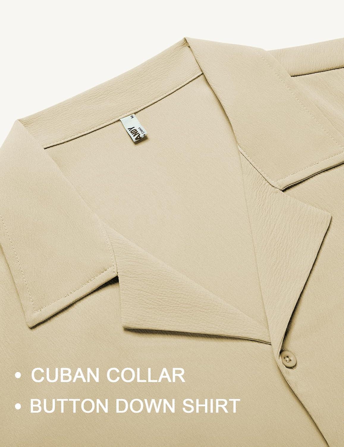 COOFANDY Men’s Wrinkle Free Untucked Cuban Shirt Business Casual Button Down Shirts Short Sleeve Shirt(Khaki)