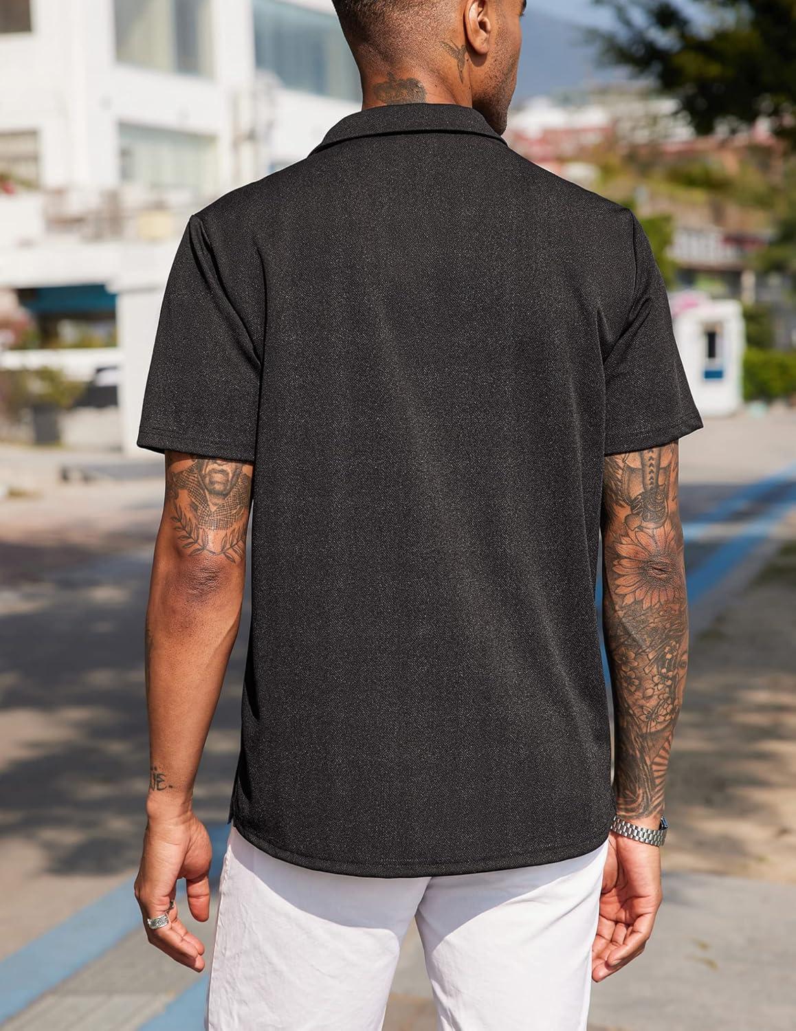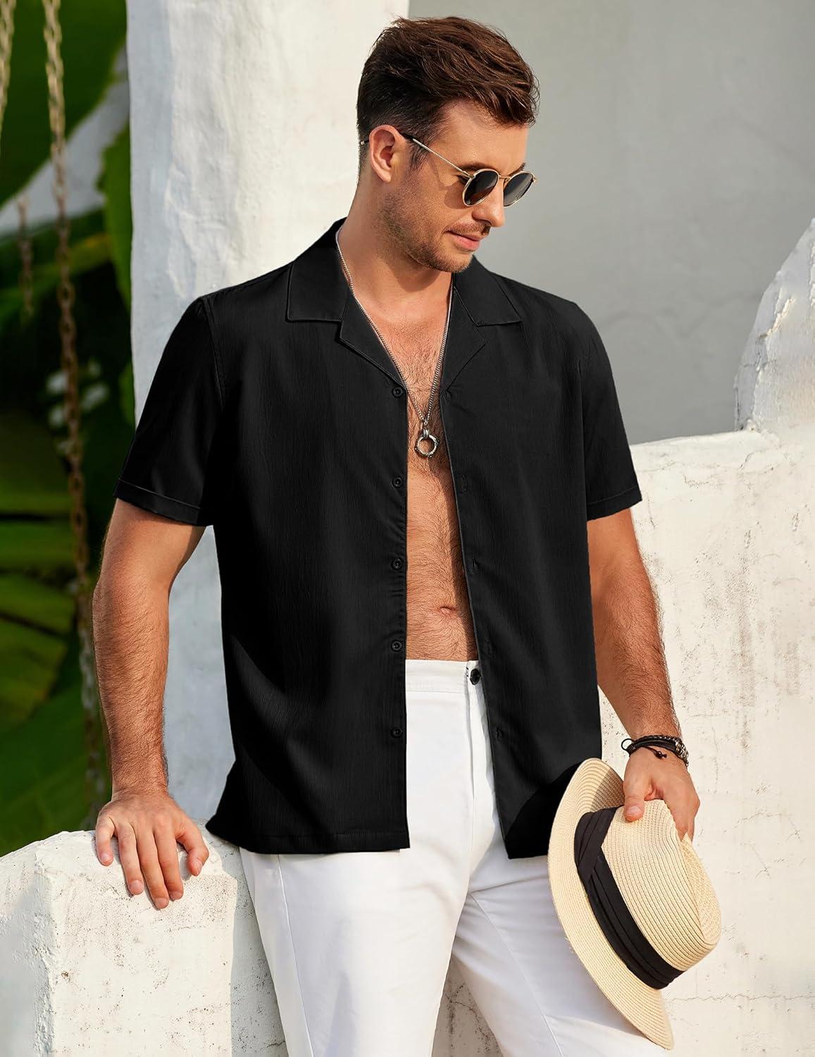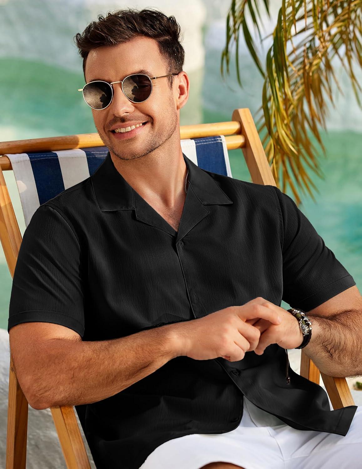 COOFANDY Mens 2025 Fashion Textured Shirts Short Sleeve Summer Beach Shirt Casual Button Down Shirts(Black)