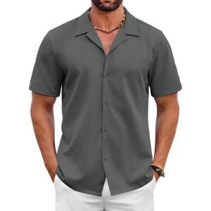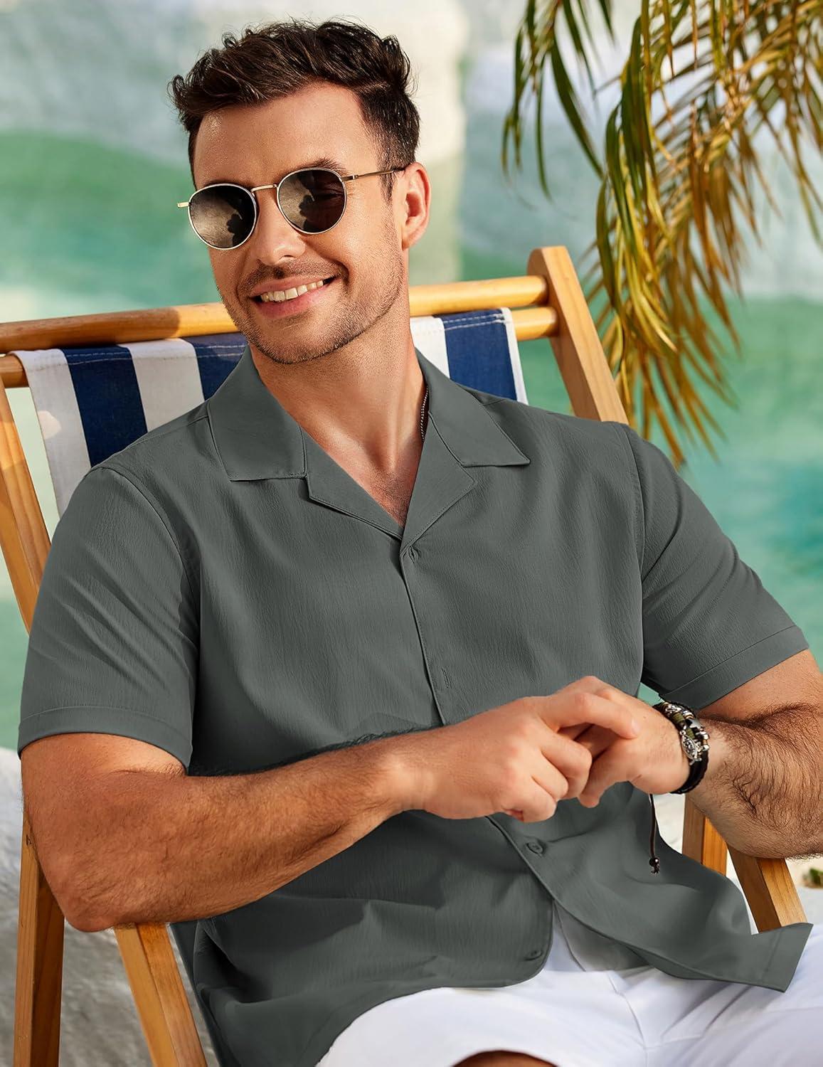COOFANDY Mens 2025 Fashion Textured Shirts Short Sleeve Summer Beach Shirt Casual Button Down Shirts(Dark Grey)