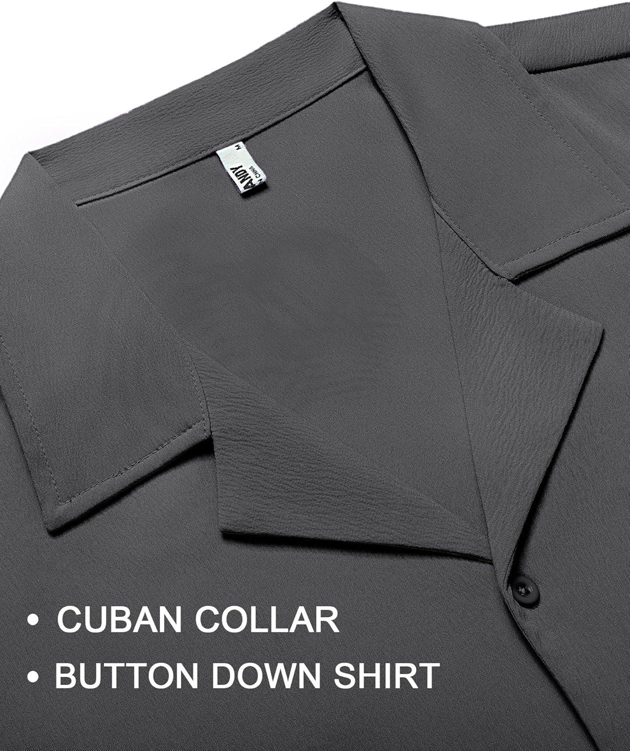 COOFANDY Men’s Wrinkle Free Untucked Cuban Shirt Business Casual Button Down Shirts Short Sleeve Shirt(Dark Grey)