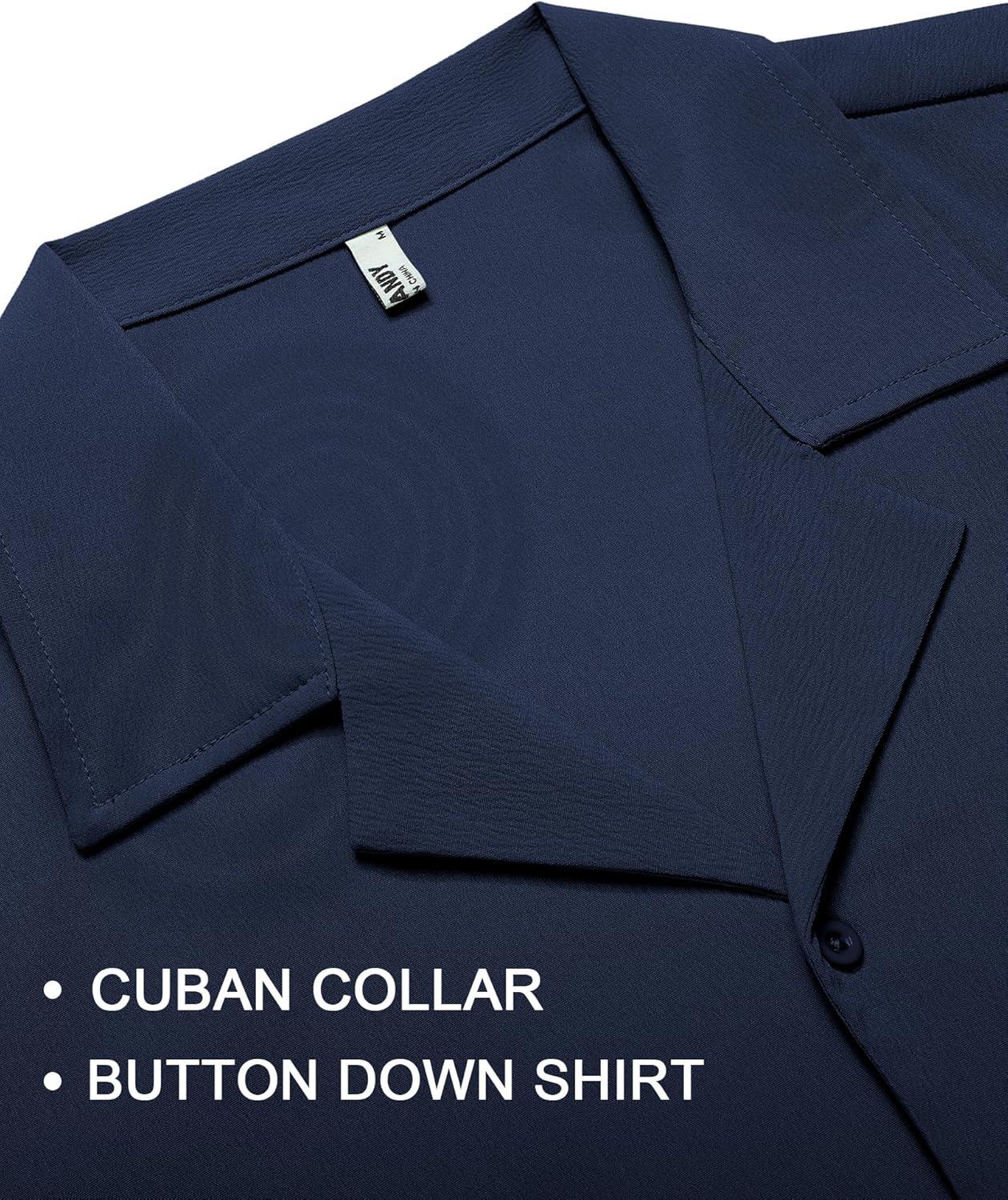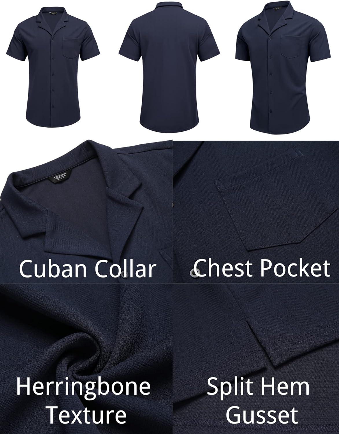 COOFANDY Men’s Wrinkle Free Untucked Cuban Shirt Business Casual Button Down Shirts Short Sleeve Shirt(Navy Blue)