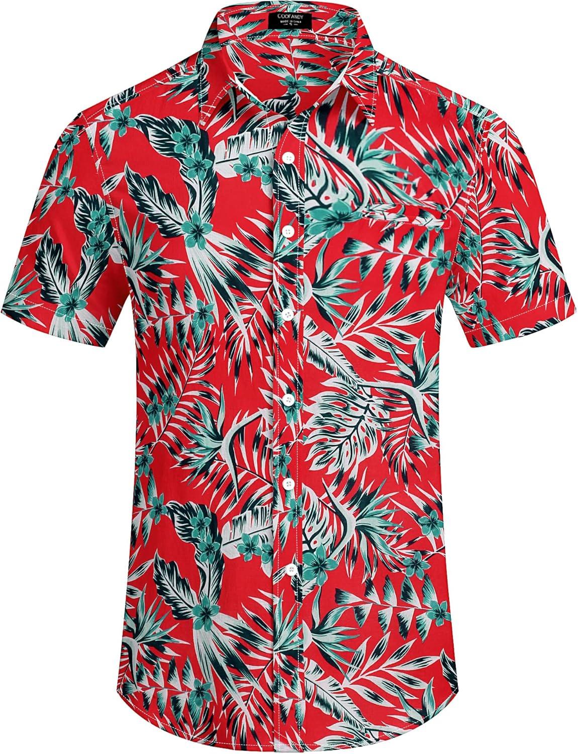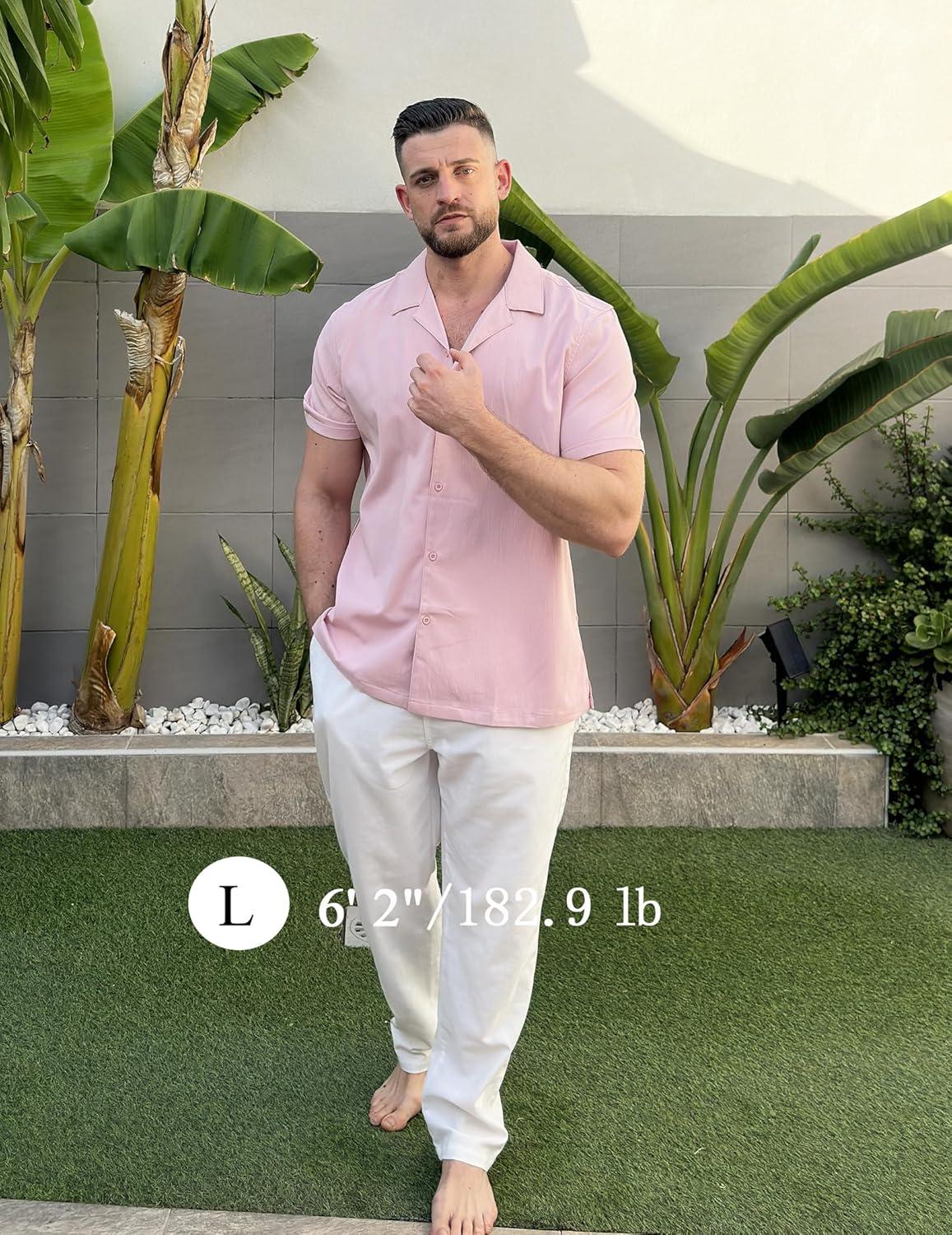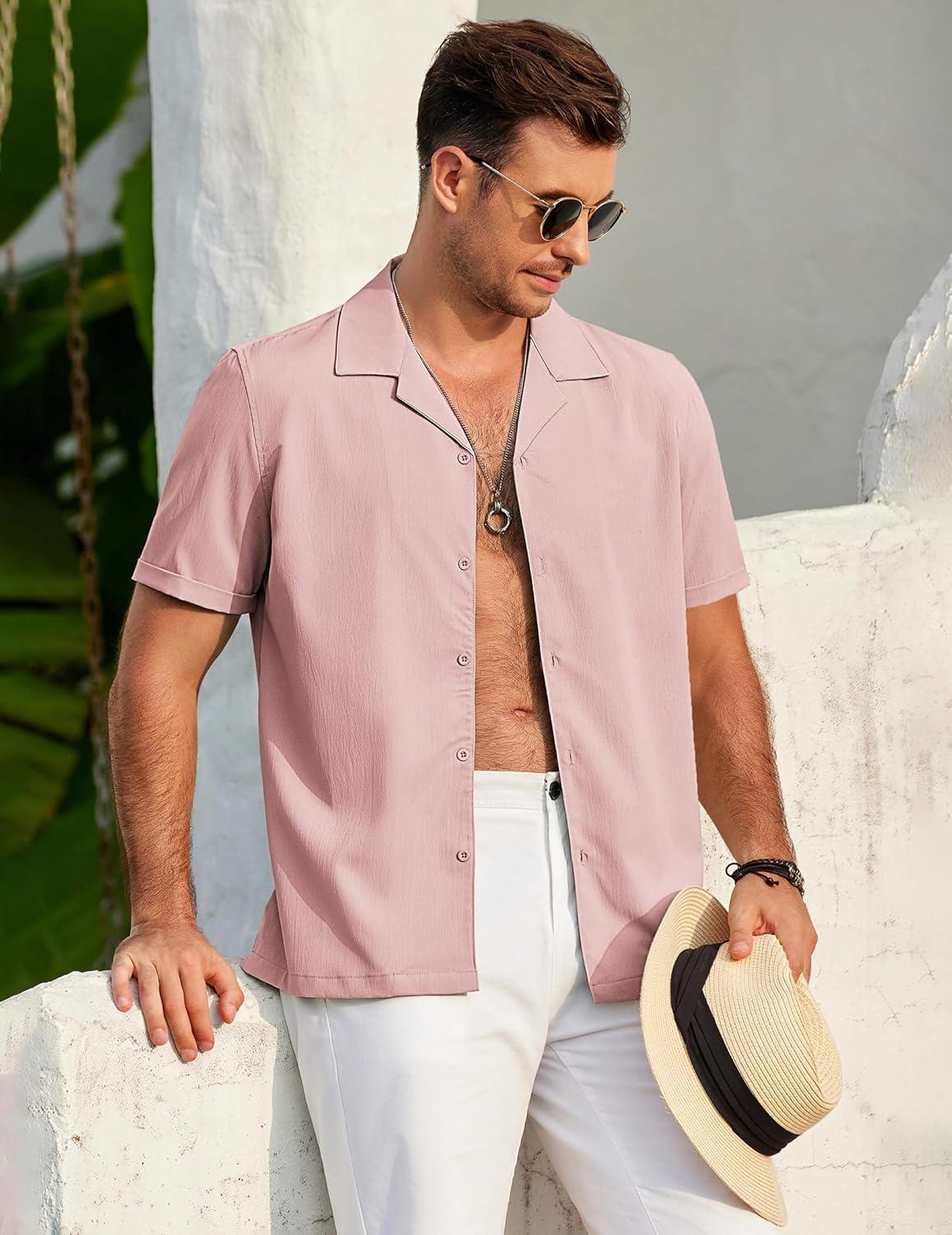 COOFANDY Button Down Shirt for Men Short Sleeve Casual Shirt Summer Beach Vacation Shirt with Pocket(Pink)
