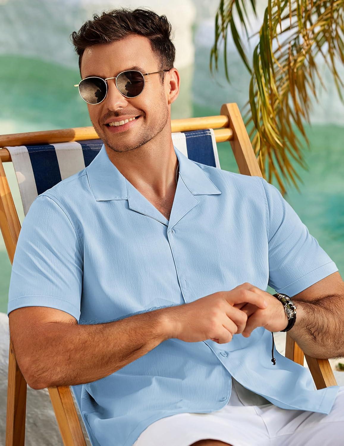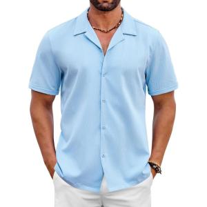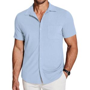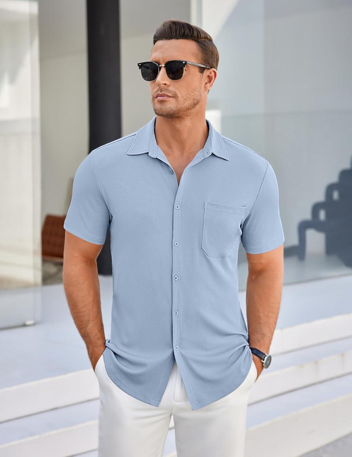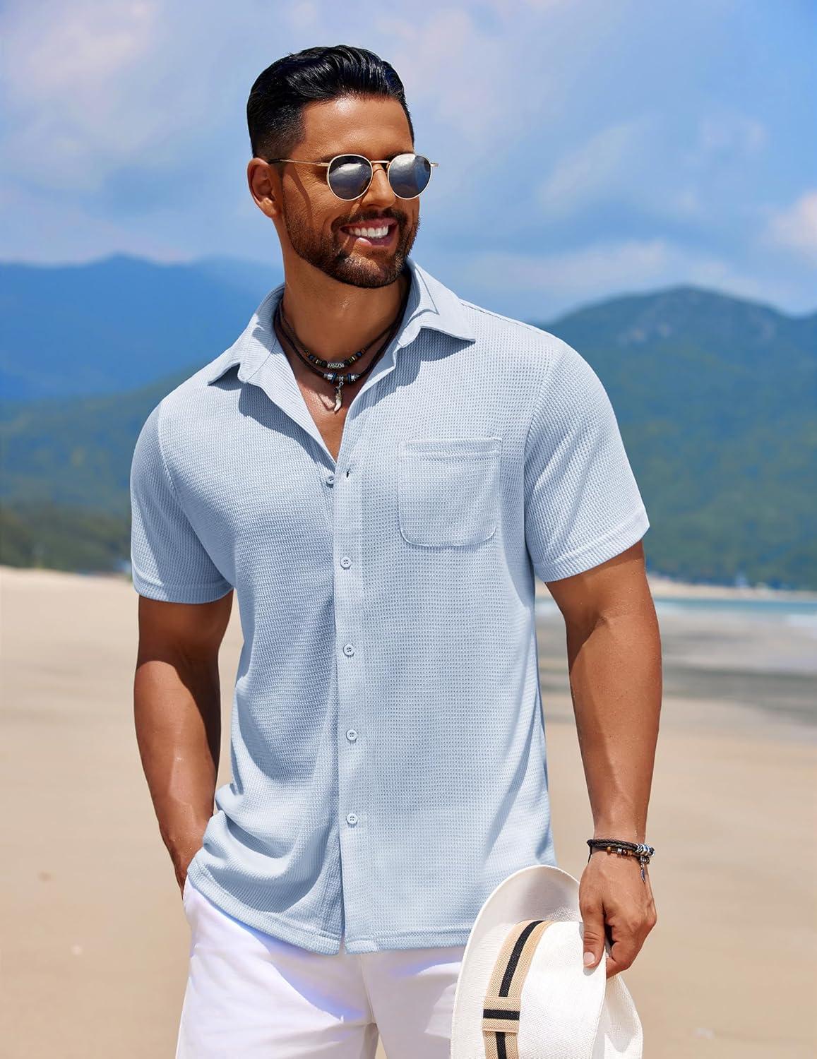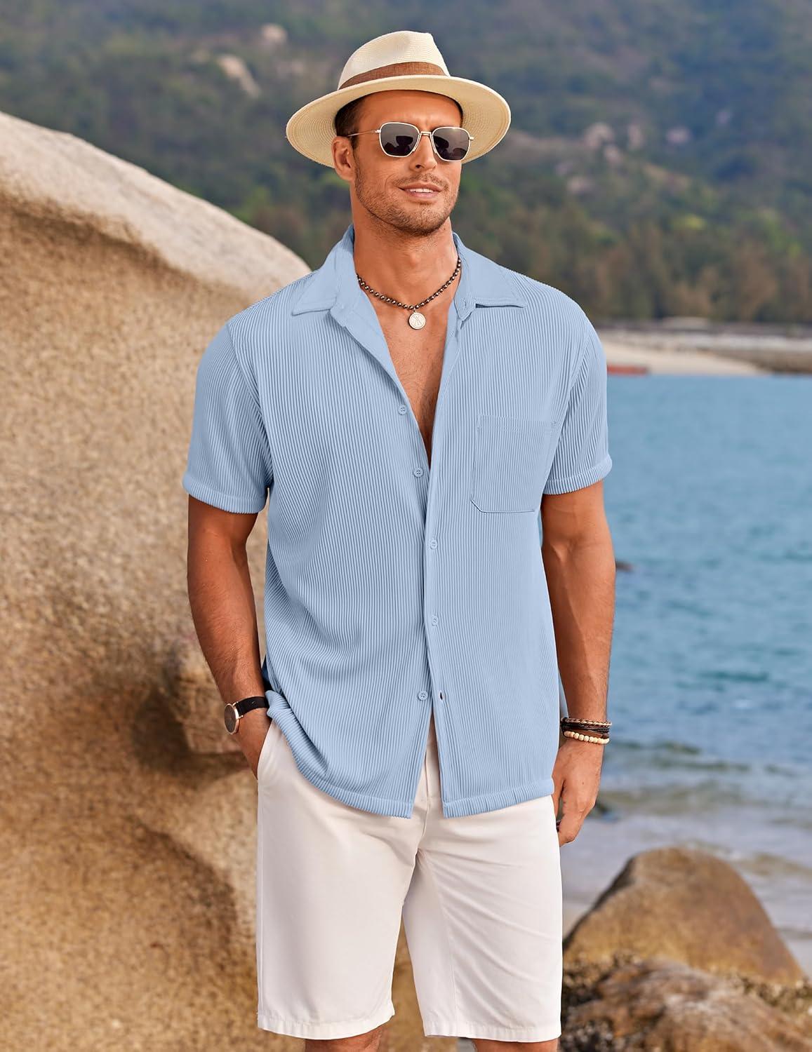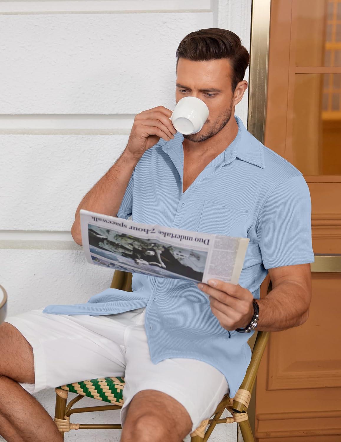COOFANDY Mens 2025 Fashion Textured Shirts Short Sleeve Summer Beach Shirt Casual Button Down Shirts(Sky Blue)