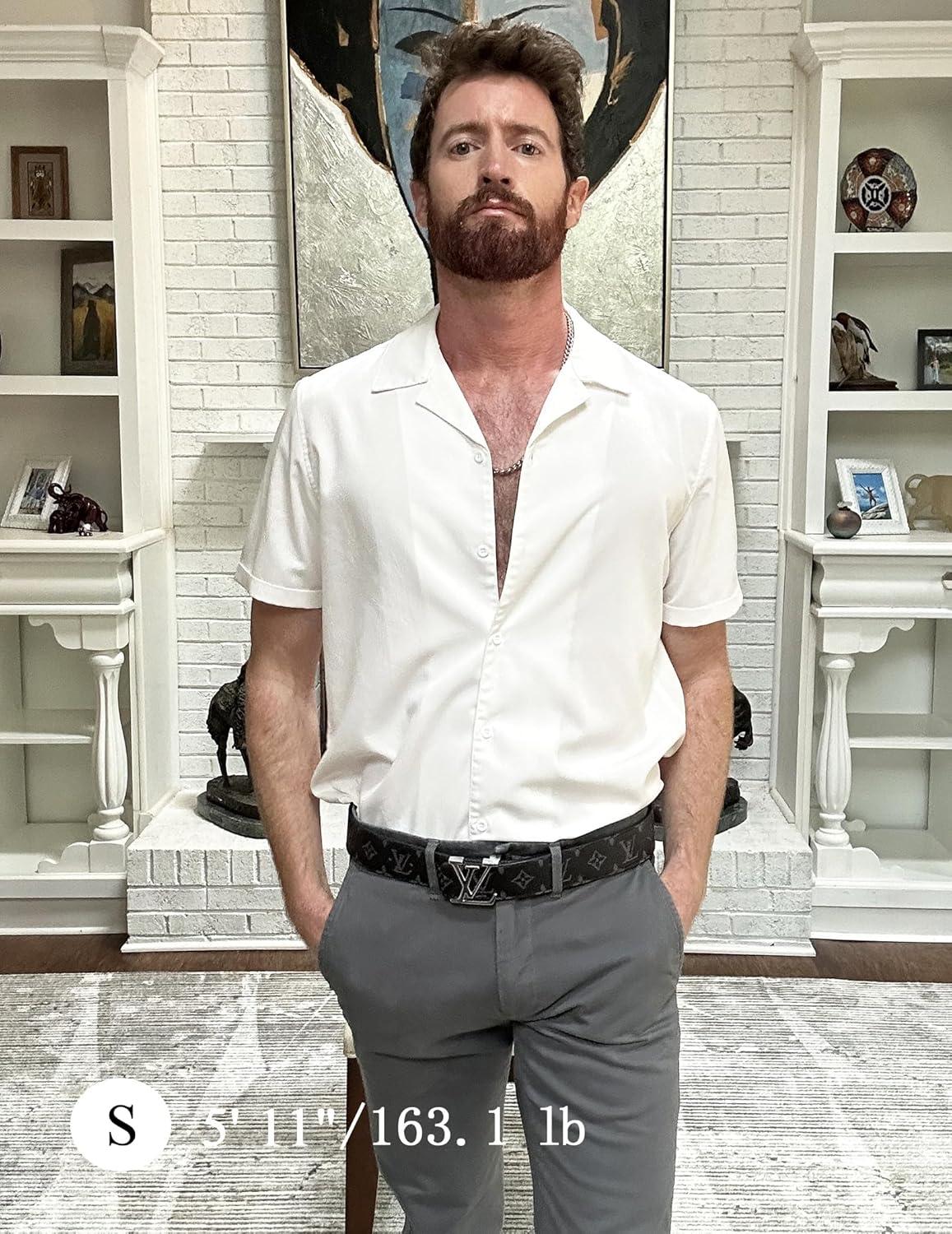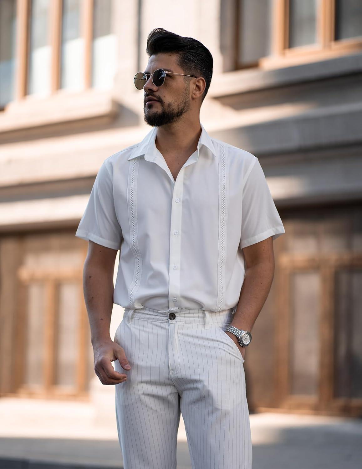 COOFANDY Men’s Cuban Guayabera Shirts Casual Short Sleeve Button Down Shirt Summer Beach Vacation Shirt(White)