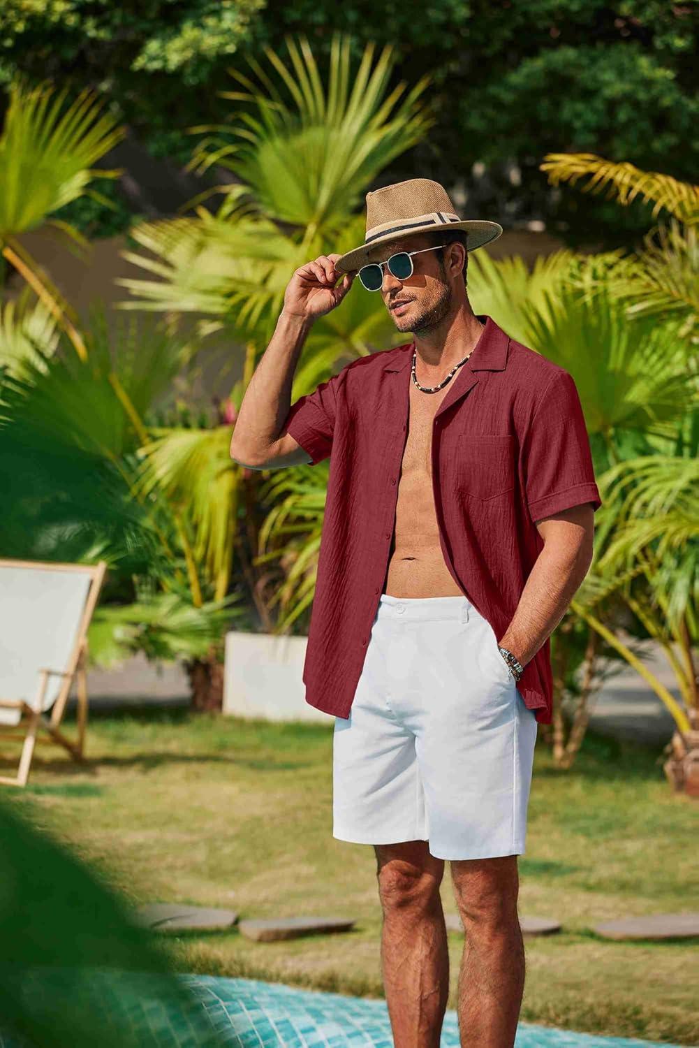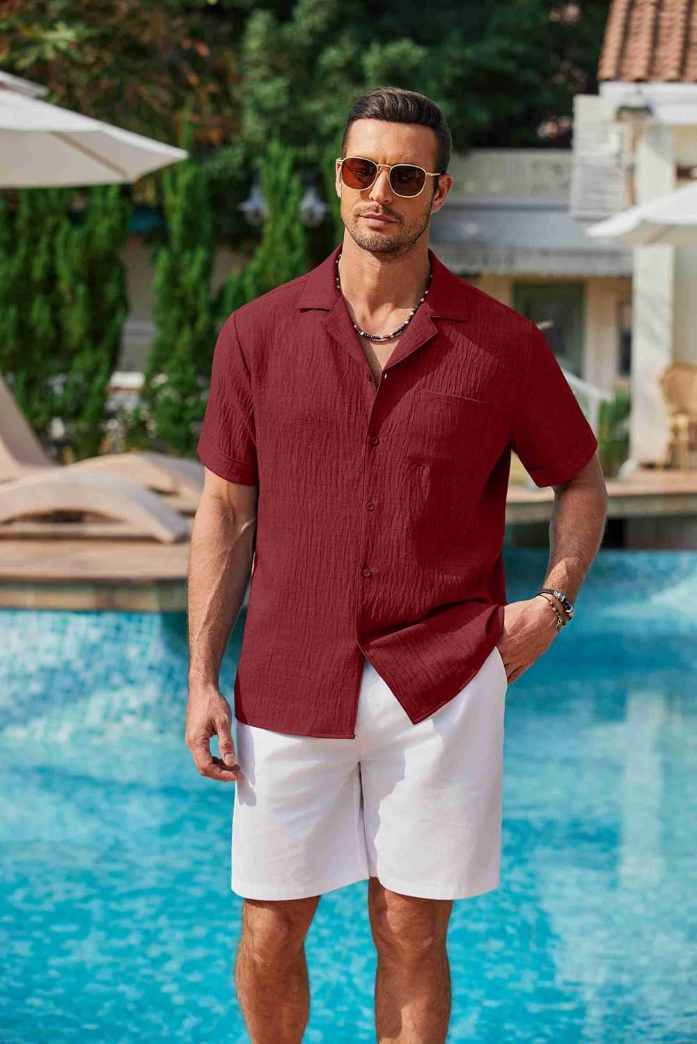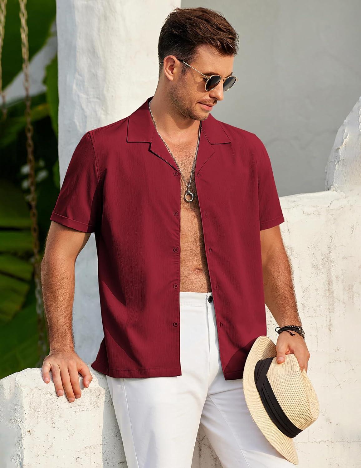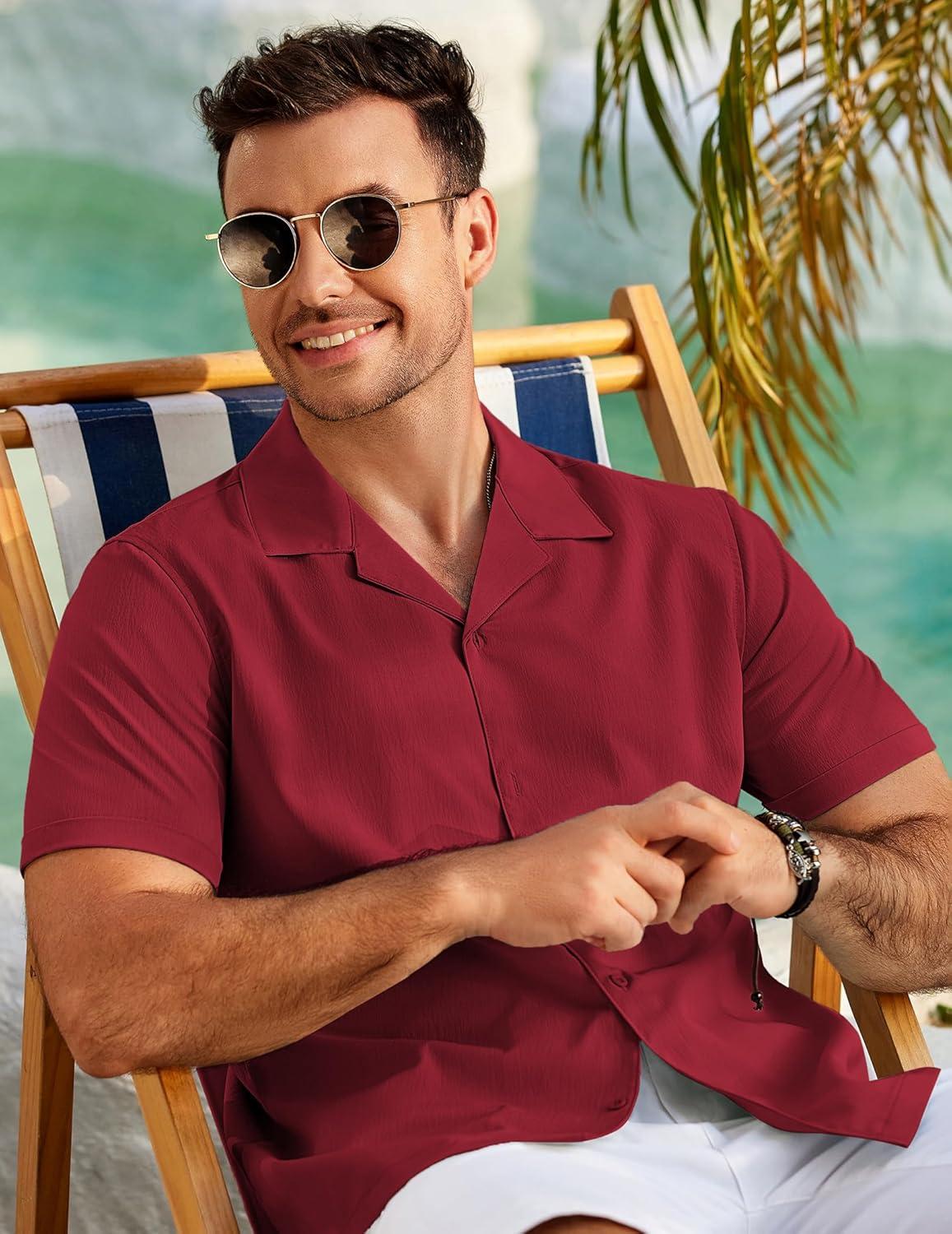 COOFANDY Mens 2025 Fashion Textured Shirts Short Sleeve Summer Beach Shirt Casual Button Down Shirts(Wine Red)