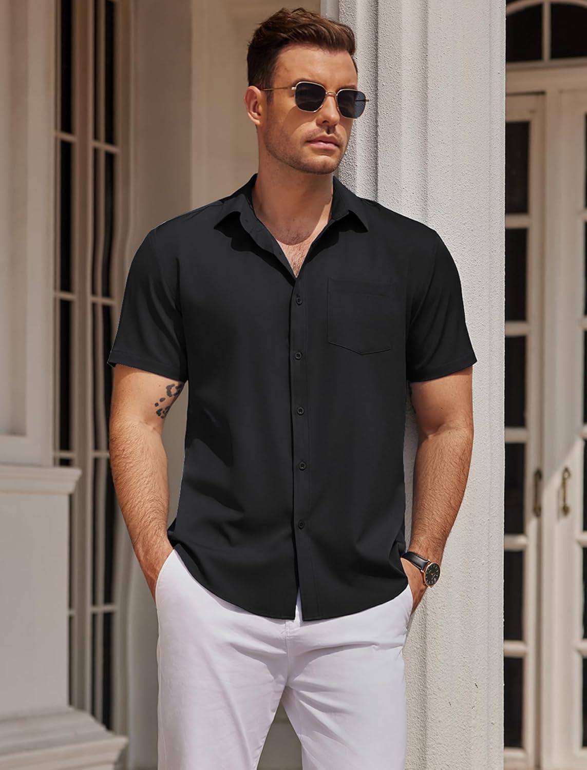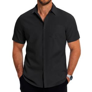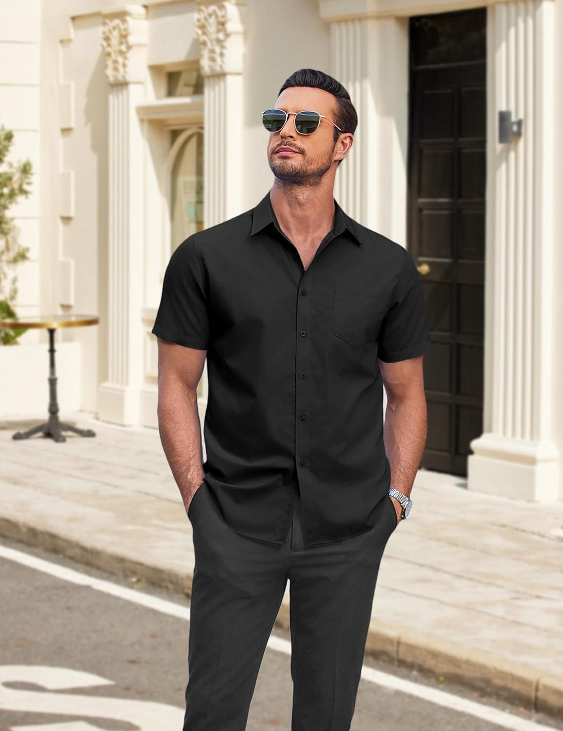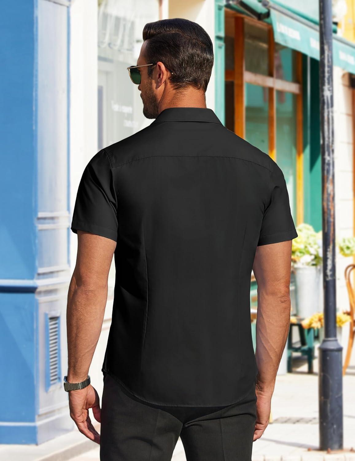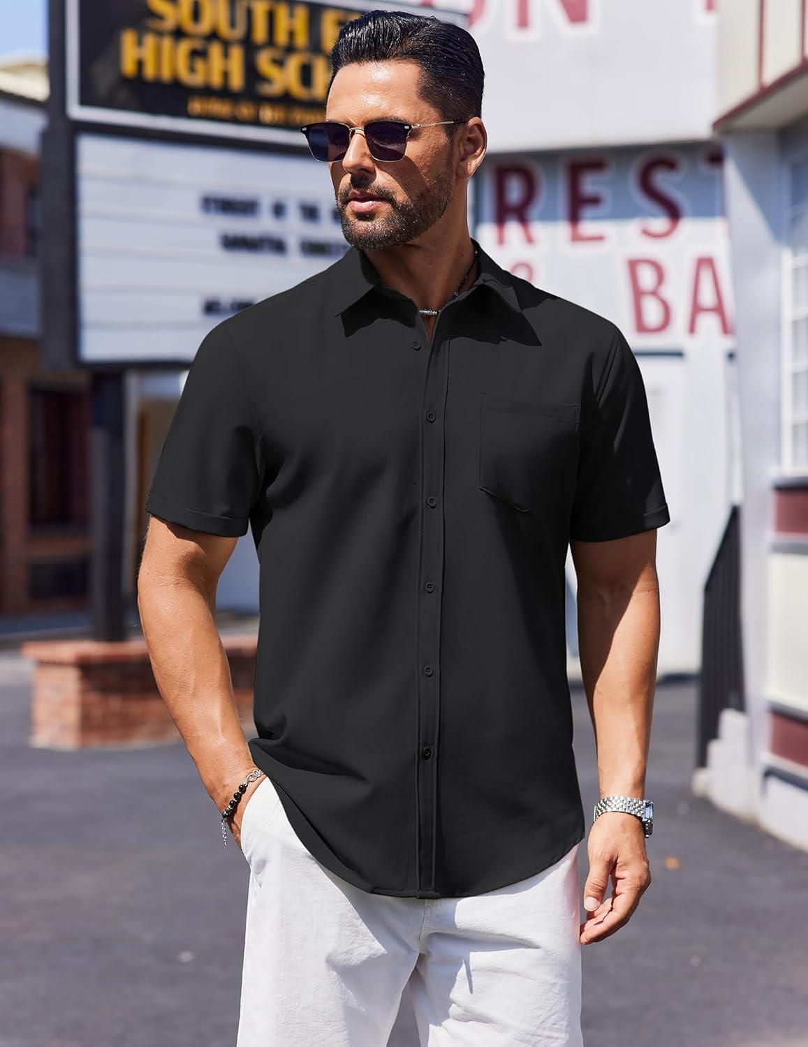 COOFANDY Men’s Dress Shirt Short Sleeve Button Down Shirts with Pocket(01- Black)