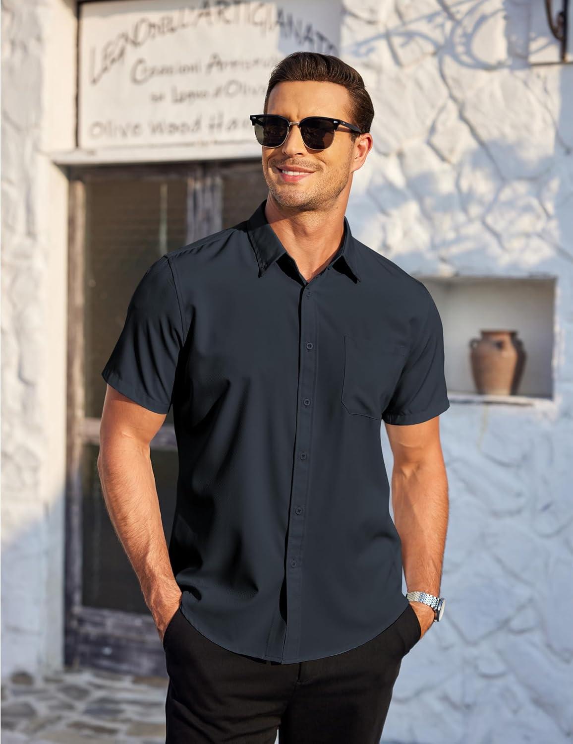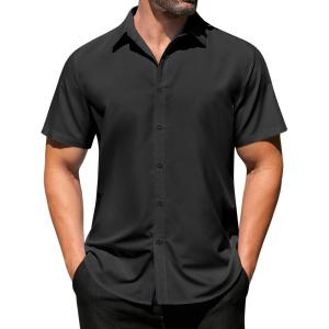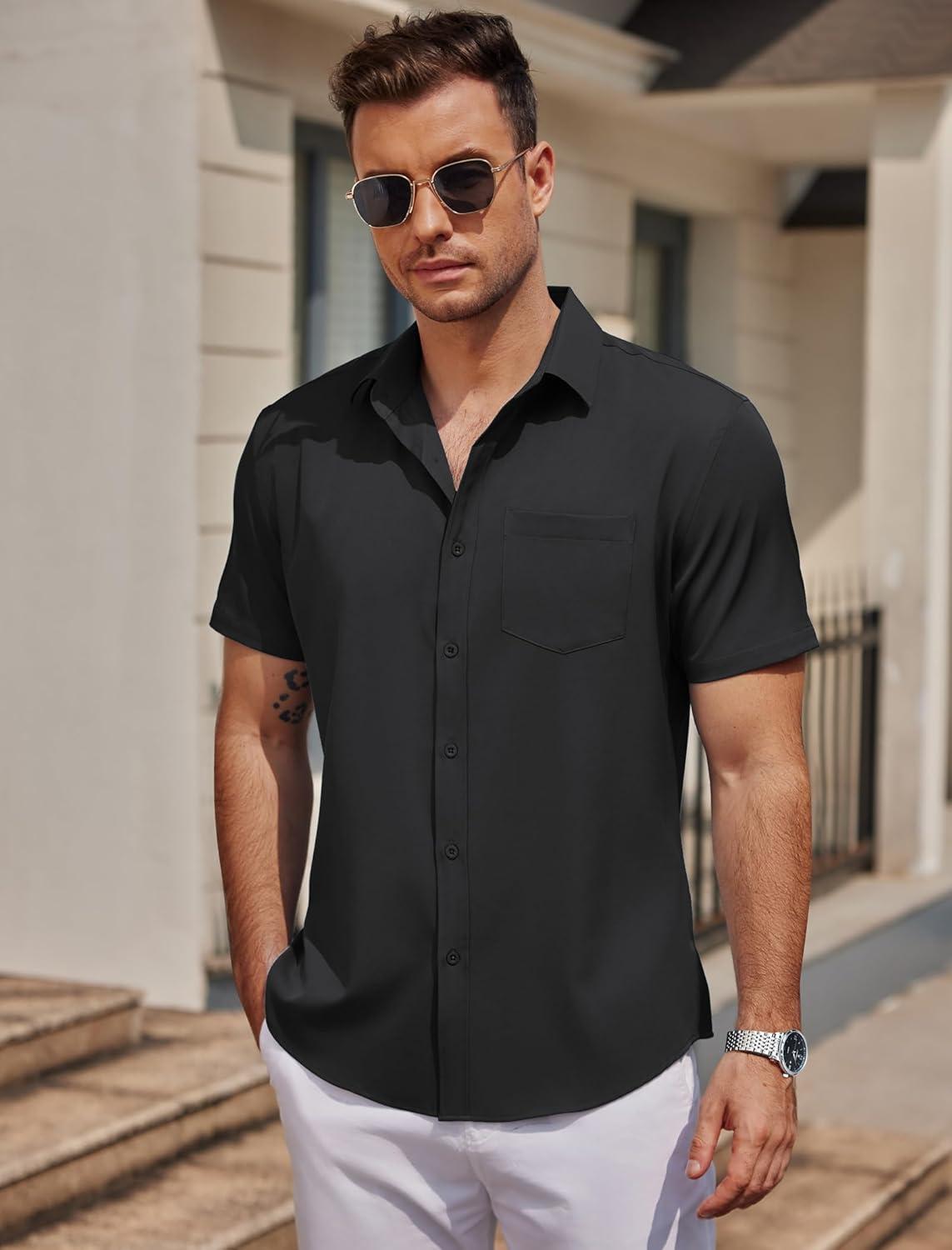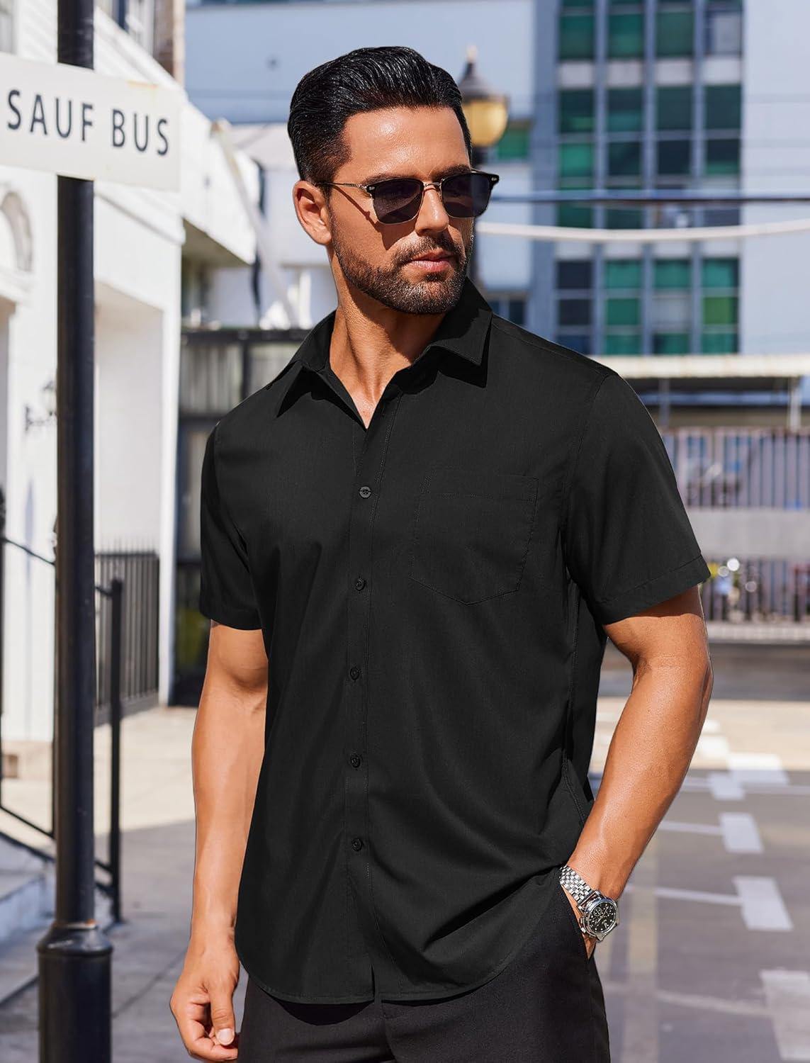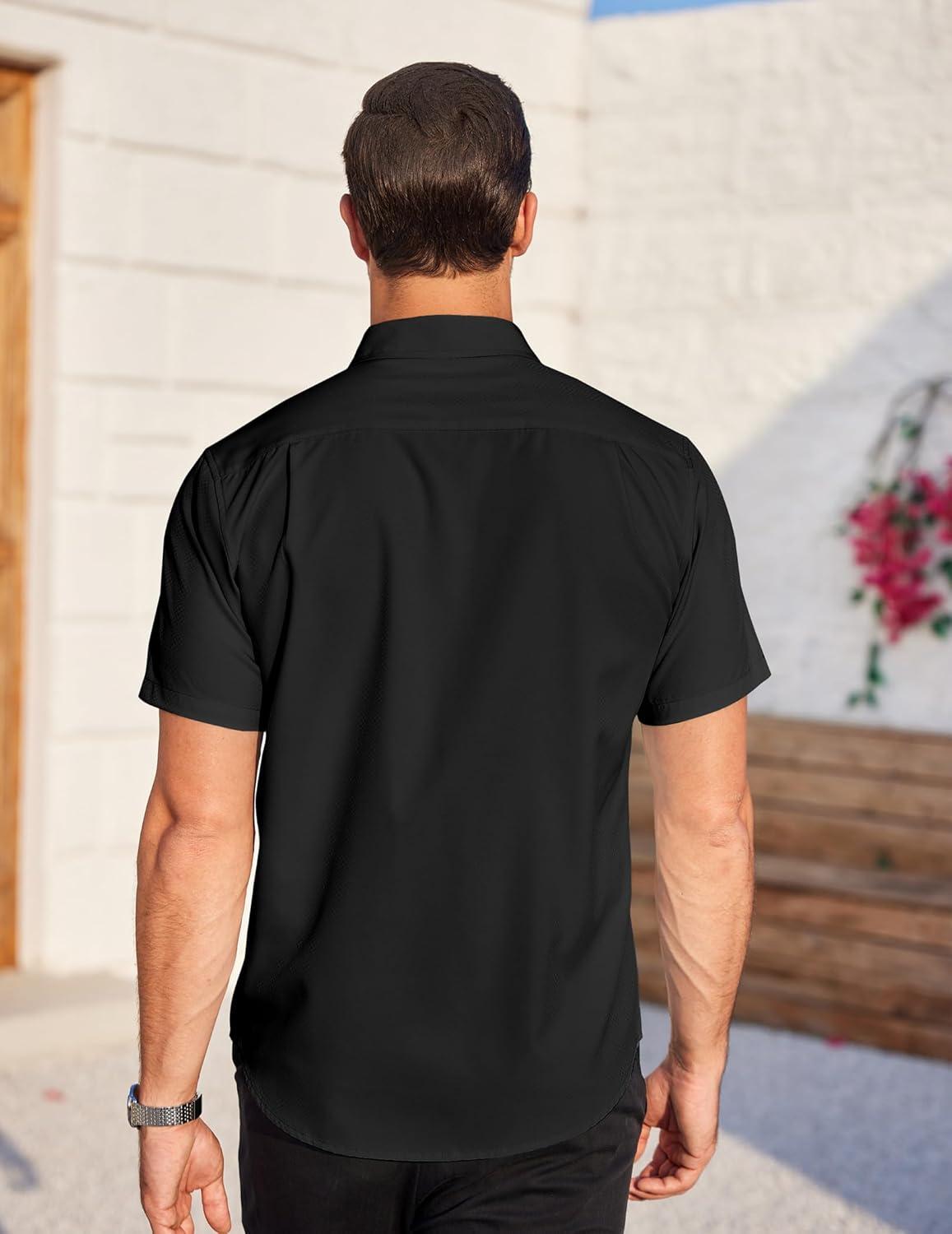 COOFANDY Mens Casual Button Down Shirts Short Sleeve Business Shirts Lightweight Wrinkle Free Dress Shirts(A-black)