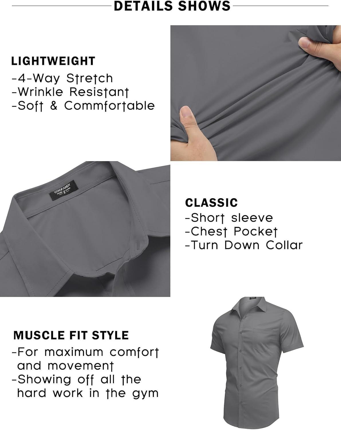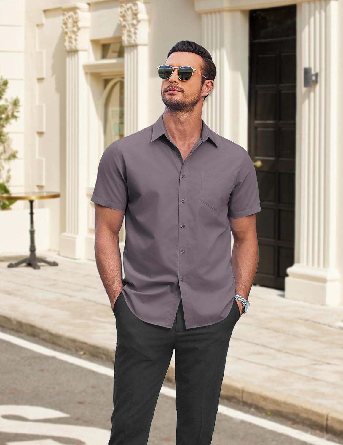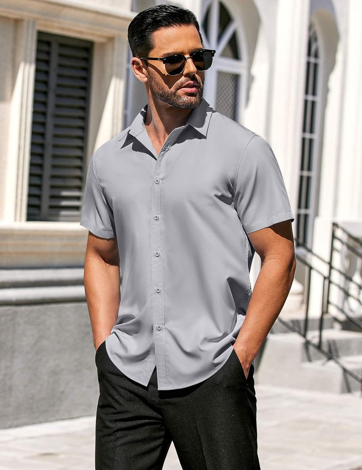 COOFANDY Mens Casual Button Down Shirts Short Sleeve Business Shirts Lightweight Wrinkle Free Dress Shirts(Light Gray)