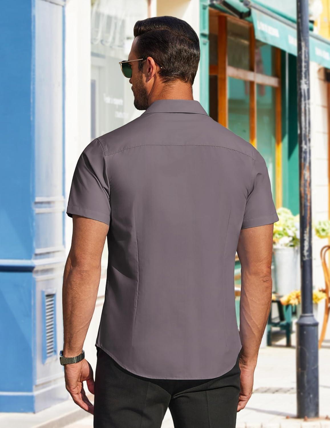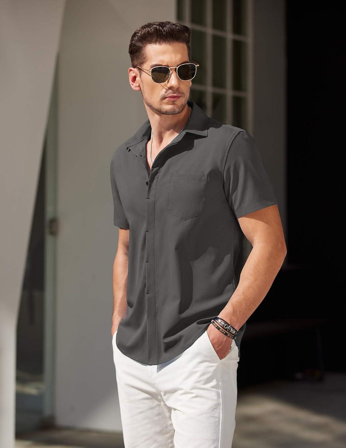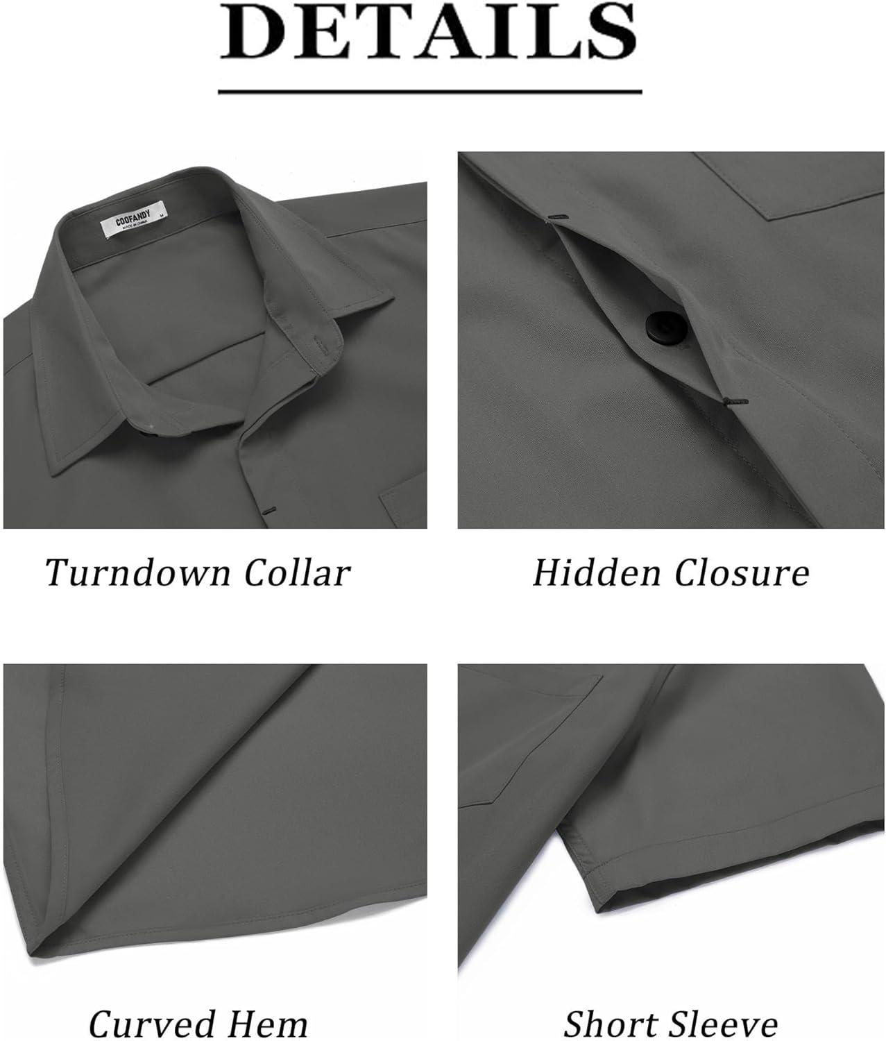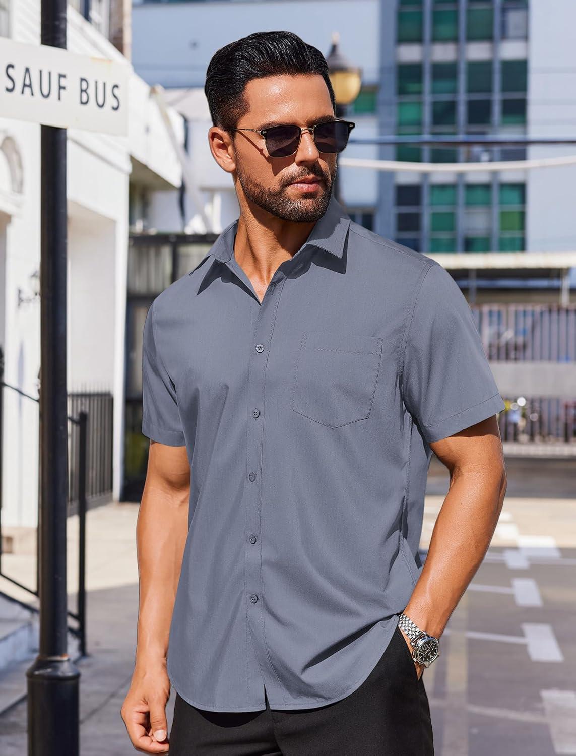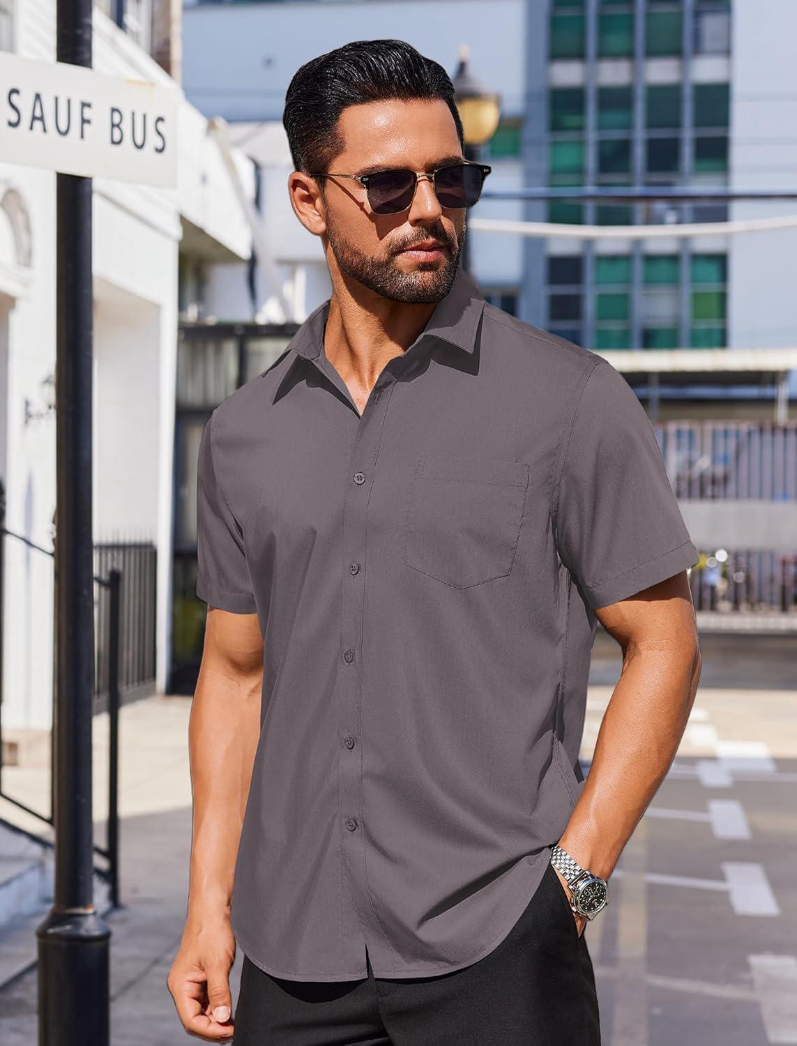 COOFANDY Men’s Dress Shirt Short Sleeve Button Down Shirts with Pocket(Dark Grey)