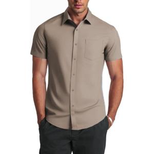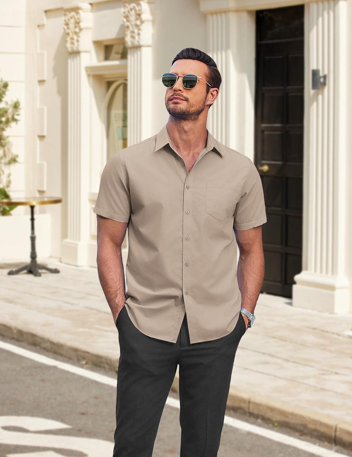 COOFANDY Men’s Dress Shirt Short Sleeve Button Down Shirts with Pocket(Khaki)