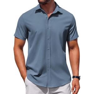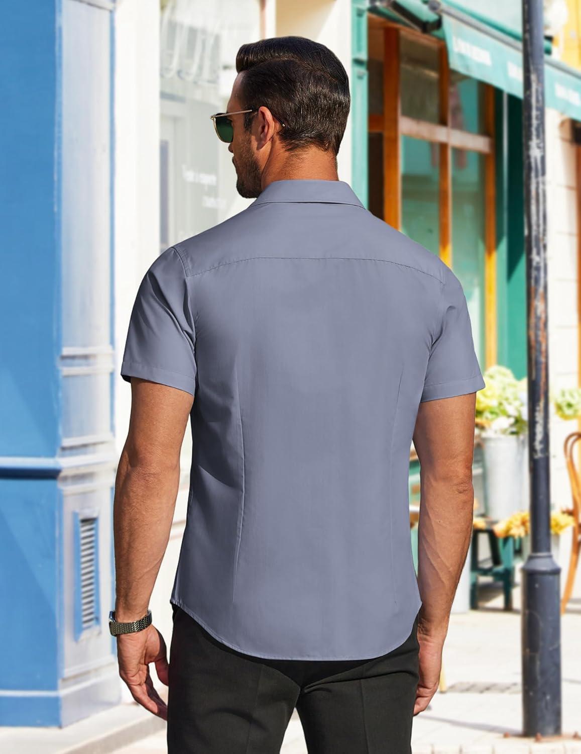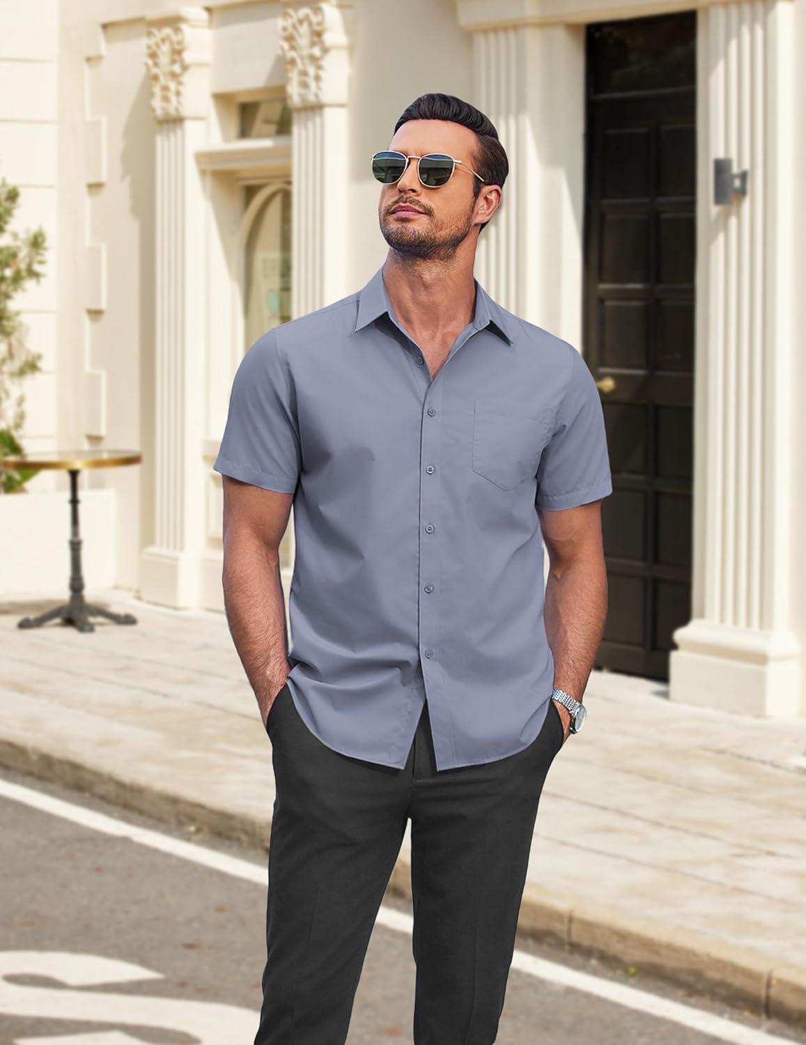 COOFANDY Men’s Dress Shirt Short Sleeve Button Down Shirts with Pocket(Grey Blue)
